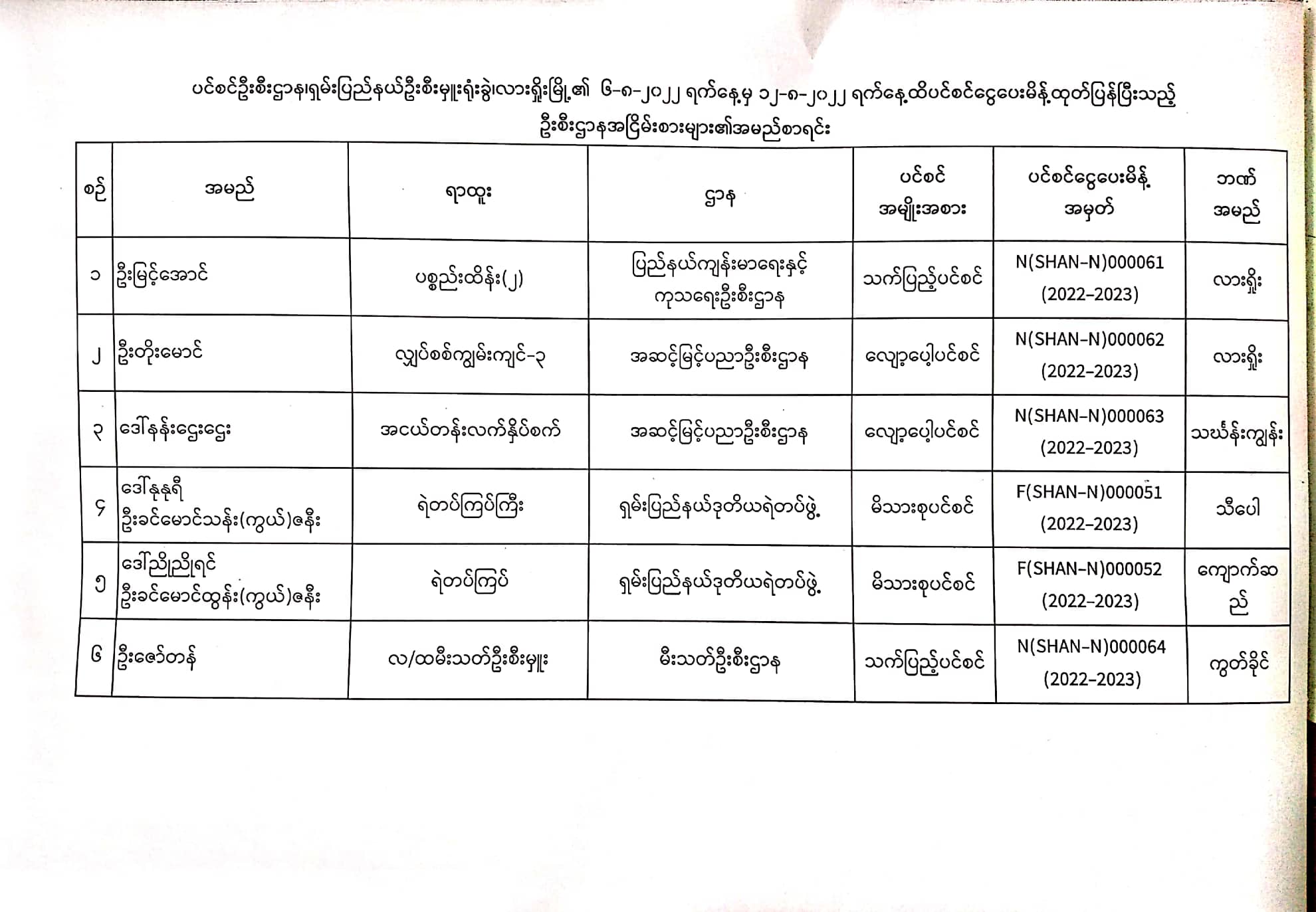 ပင်စင်ဦးစီးဌာန၊ရှမ်းပြည်နယ်(လားရှိုးမြို့)၏ငွေပေးမိန့်ထုတ်ပြန်မှုစာရင်း(၆.၈.၂၀၂၂ မှ ၁၂.၈.၂၀၂၂) pdfinance_editor Thu, 08/11/2022 - 15:44