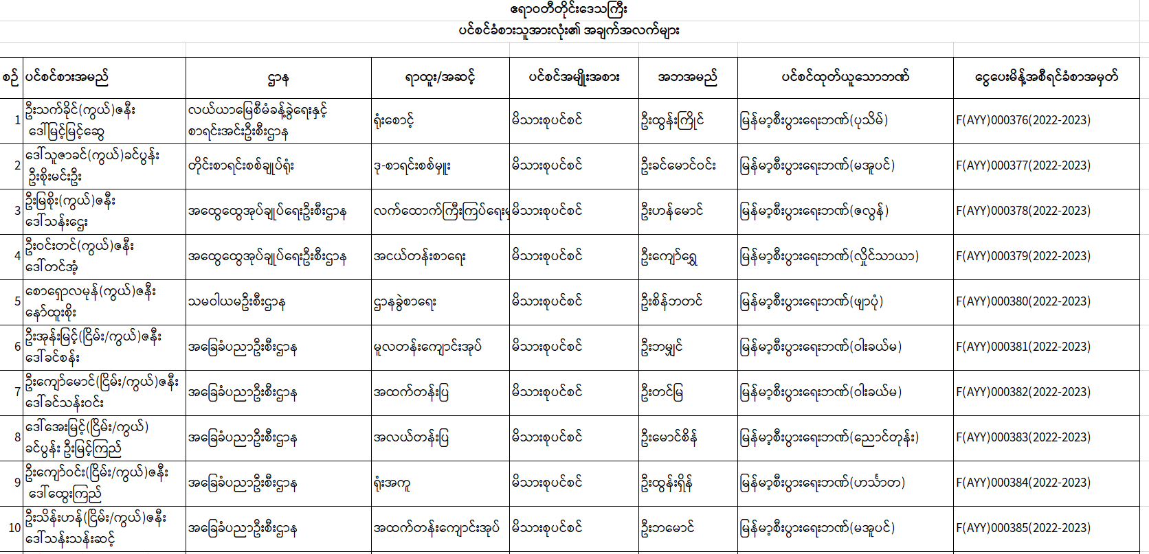 ပင်စင်ဦးစီးဌာန၊ ဧရာဝတီတိုင်းဒေသကြီးဦးစီးမှူးရုံး၏ ငွေပေးမိန့်ထုတ်ပြန်မှုစာရင်း (၂၀-၈-၂၀၂၂ မှ ၂၆-၈-၂၀၂၂) pdfinance_editor Fri, 08/26/2022 - 15:29