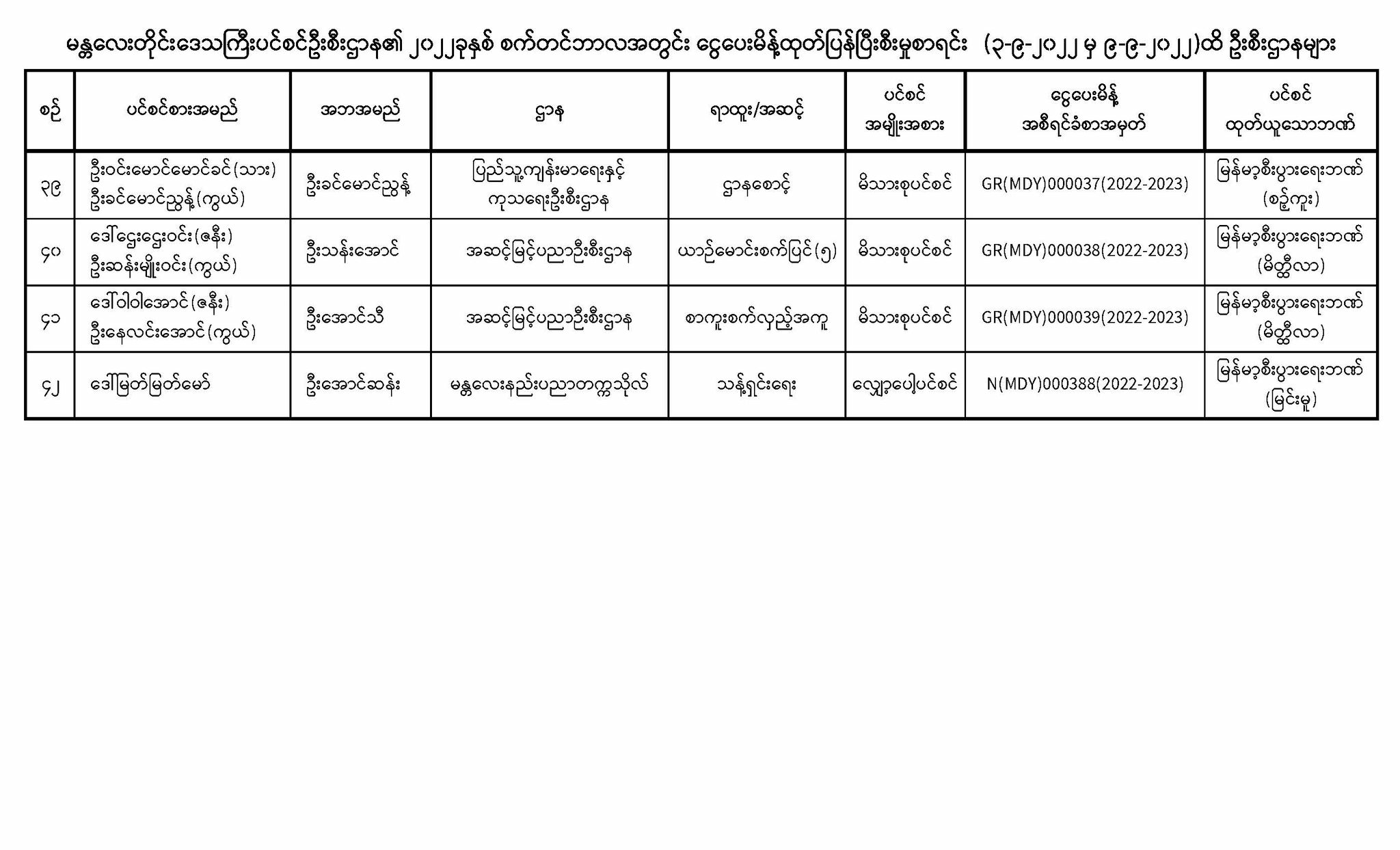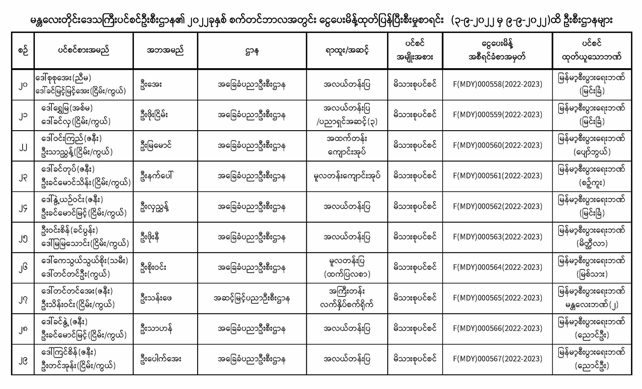 ပင်စင်ဦးစီးဌာန၊ မန္တလေးတိုင်းဒေသကြီး၏ ငွေပေးမိန့်ထုတ်ပြန်မှုစာရင်း (၃-၉-၂၀၂၂ မှ ၉-၉-၂၀၂၂) pdfinance_editor Tue, 09/13/2022 - 10:06