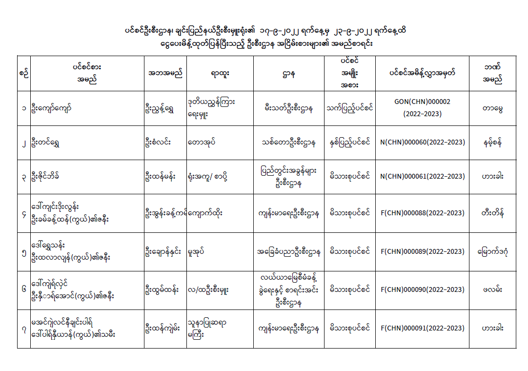 ပင်စင်ဦးစီးဌာန၊ ချင်းပြည်နယ်၏ ငွေပေးမိန့်ထုတ်ပြန်မှုစာရင်း (၁၇-၉-၂၀၂၂ မှ ၂၃-၉-၂၀၂၂) pdfinance_editor Mon, 10/03/2022 - 11:46