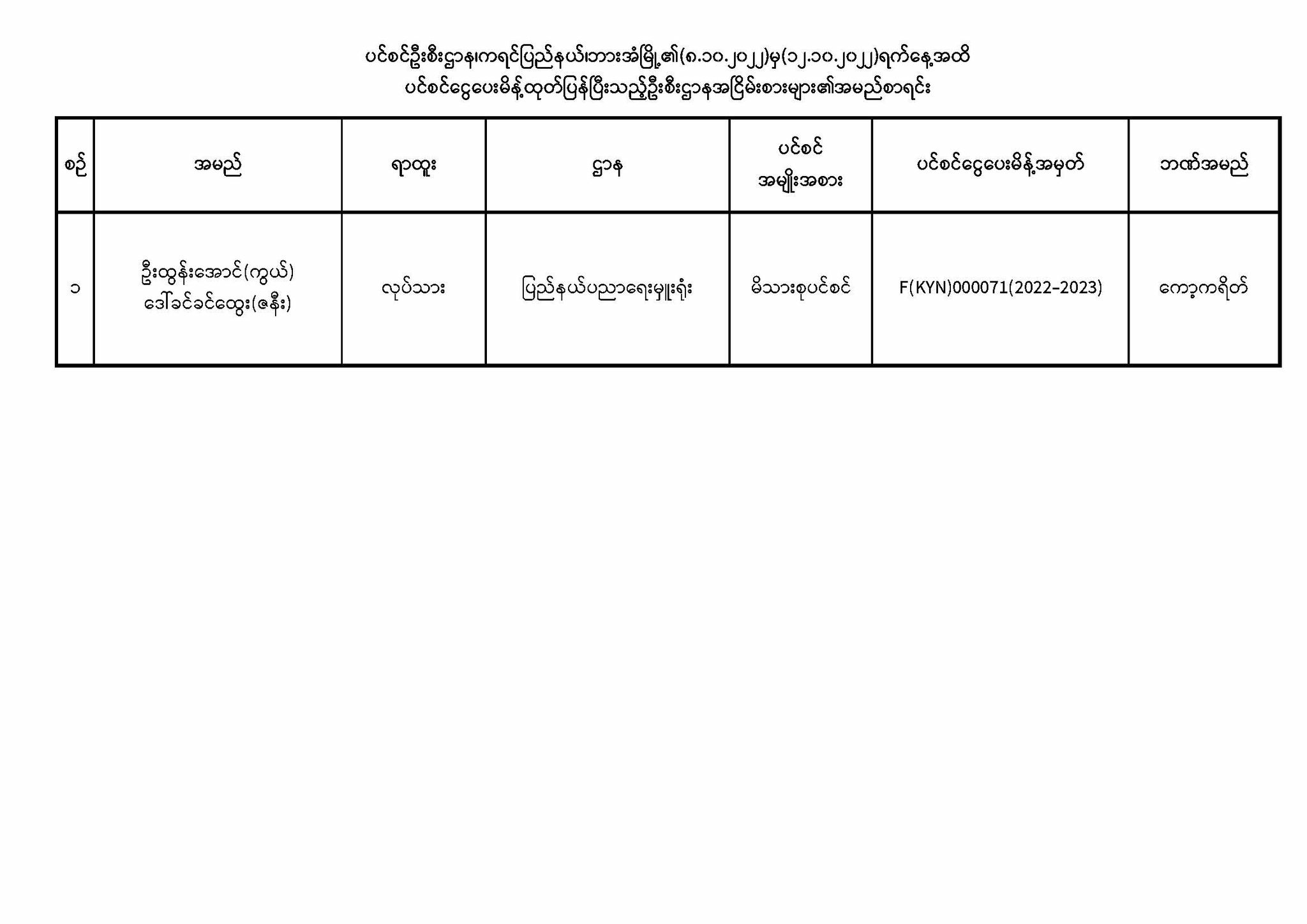 ပင်စင်ဦးစီးဌာန၊ ကရင်ပြည်နယ်ဦးစီးမှူးရုံး၏ ငွေပေးမိန့်ထုတ်ပြန်မှုစာရင်း (၈-၁၀-၂၀၂၂ မှ ၁၂-၁၀-၂၀၂၂) pdfinance_editor Fri, 10/14/2022 - 15:27