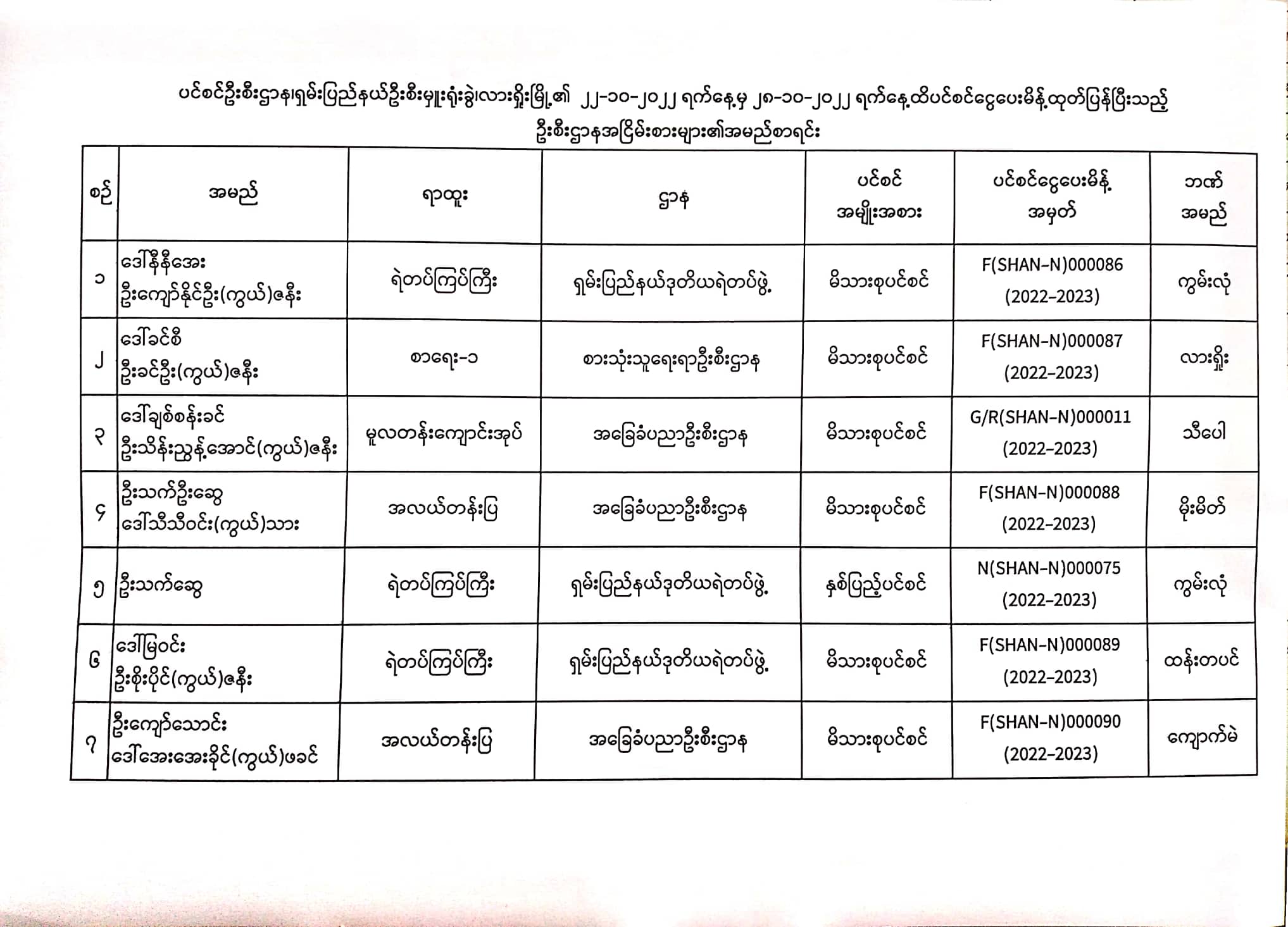 ပင်စင်ဦးစီးဌာန၊ရှမ်းပြည်နယ်(လားရှိုးမြို့)၏ငွေပေးမိန့်ထုတ်ပြန်မှုစာရင်း(၂၂-၁၀-၂၀၂၂ မှ ၂၈-၁၀-၂၀၂၂) pdfinance_editor Fri, 10/28/2022 - 11:05