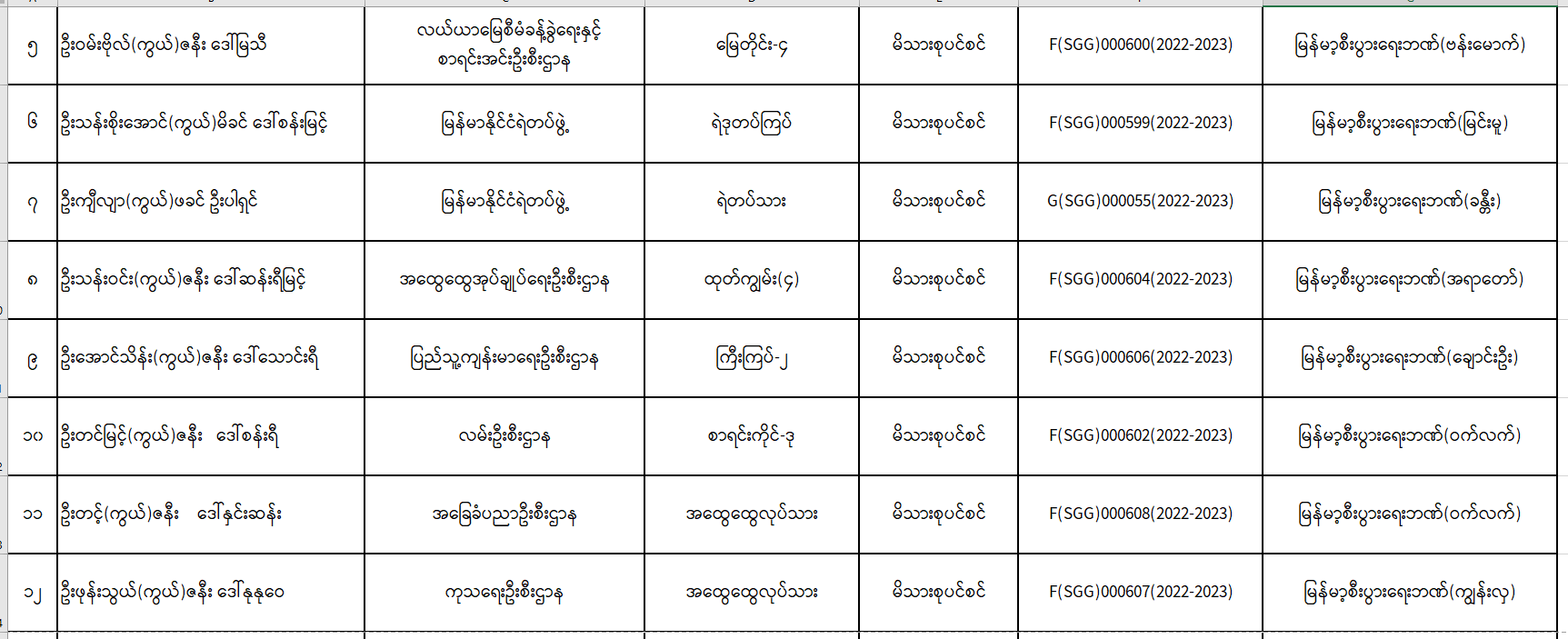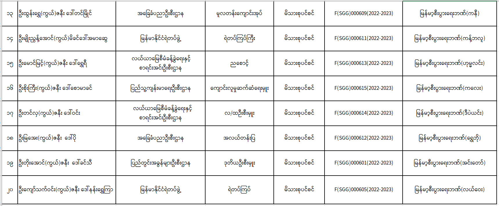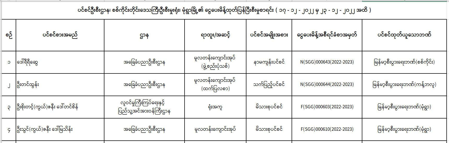 ပင်စင်ဦးစီးဌာန၊ စစ်ကိုင်းတိုင်းဒေသကြီးဦးစီးမှုးရုံး၊ မုံရွာမြို့၏ ငွေပေးမိန့်ထုတ်ပြန်ပြီးစီးမှုစာရင်း ( ၁၇ - ၁၂ - ၂၀၂၂ မှ ၂၃ - ၁၂ - ၂၀၂၂ အထိ )