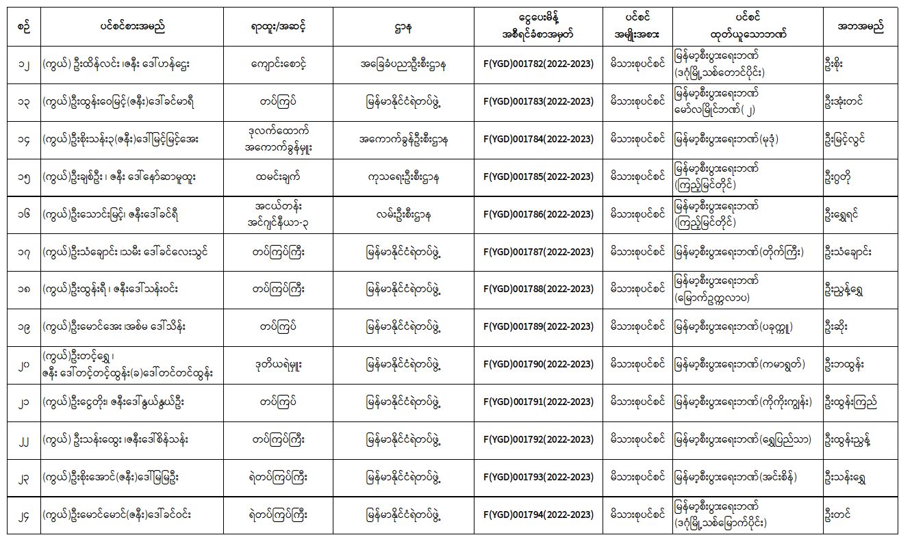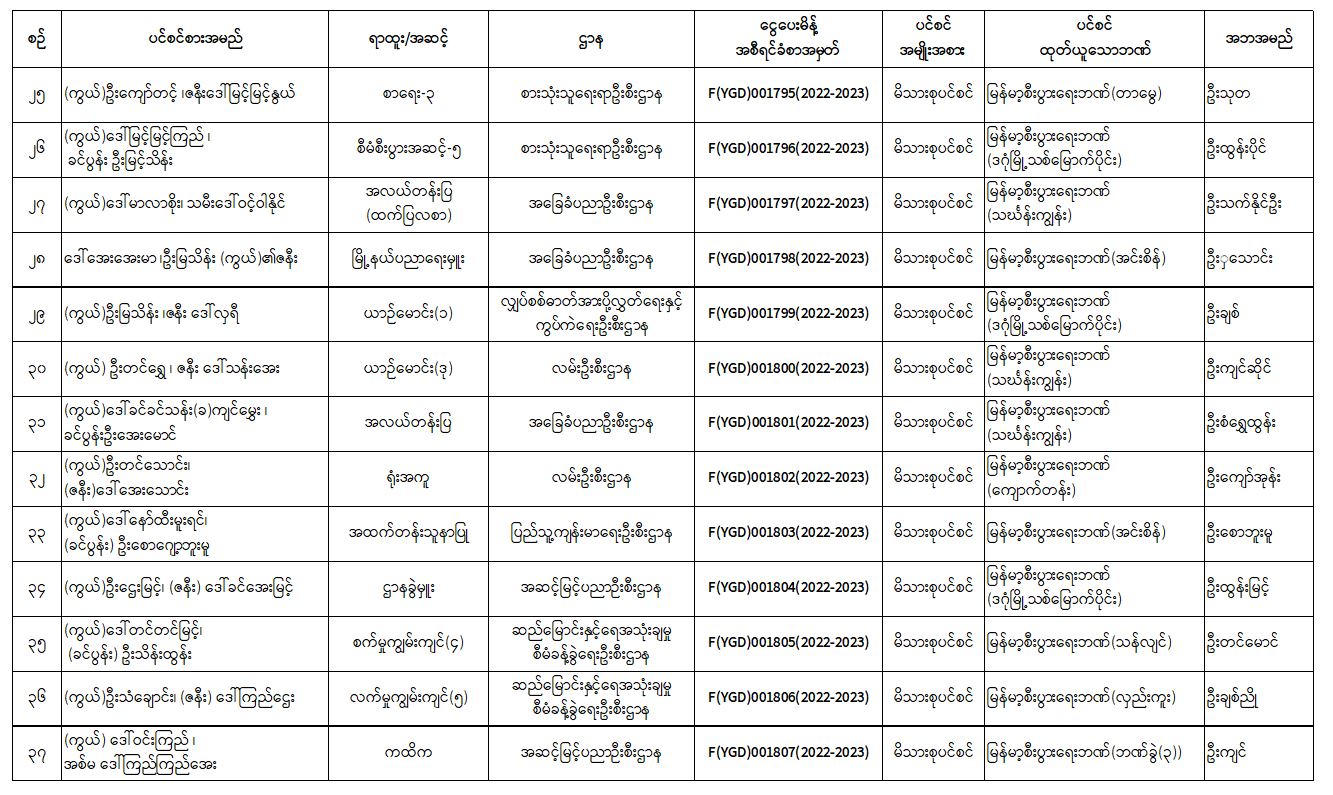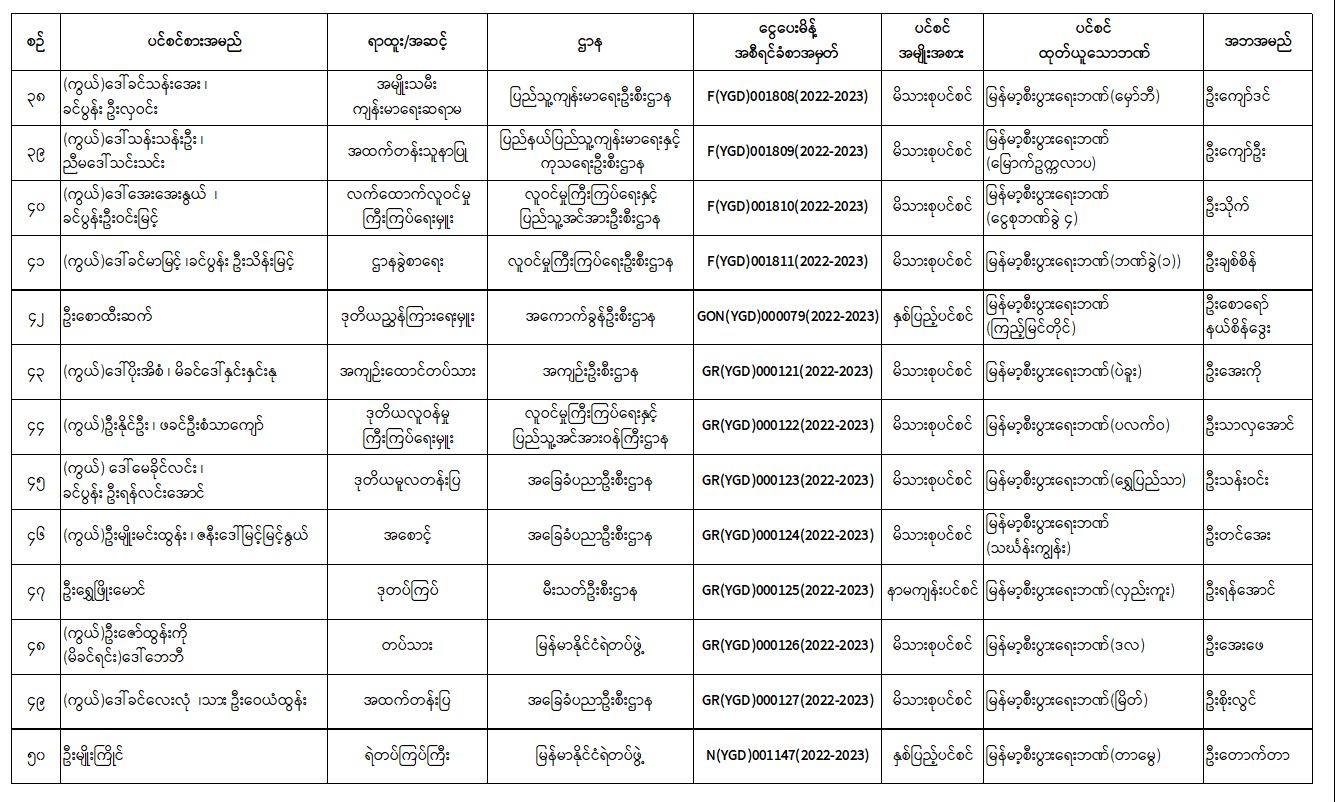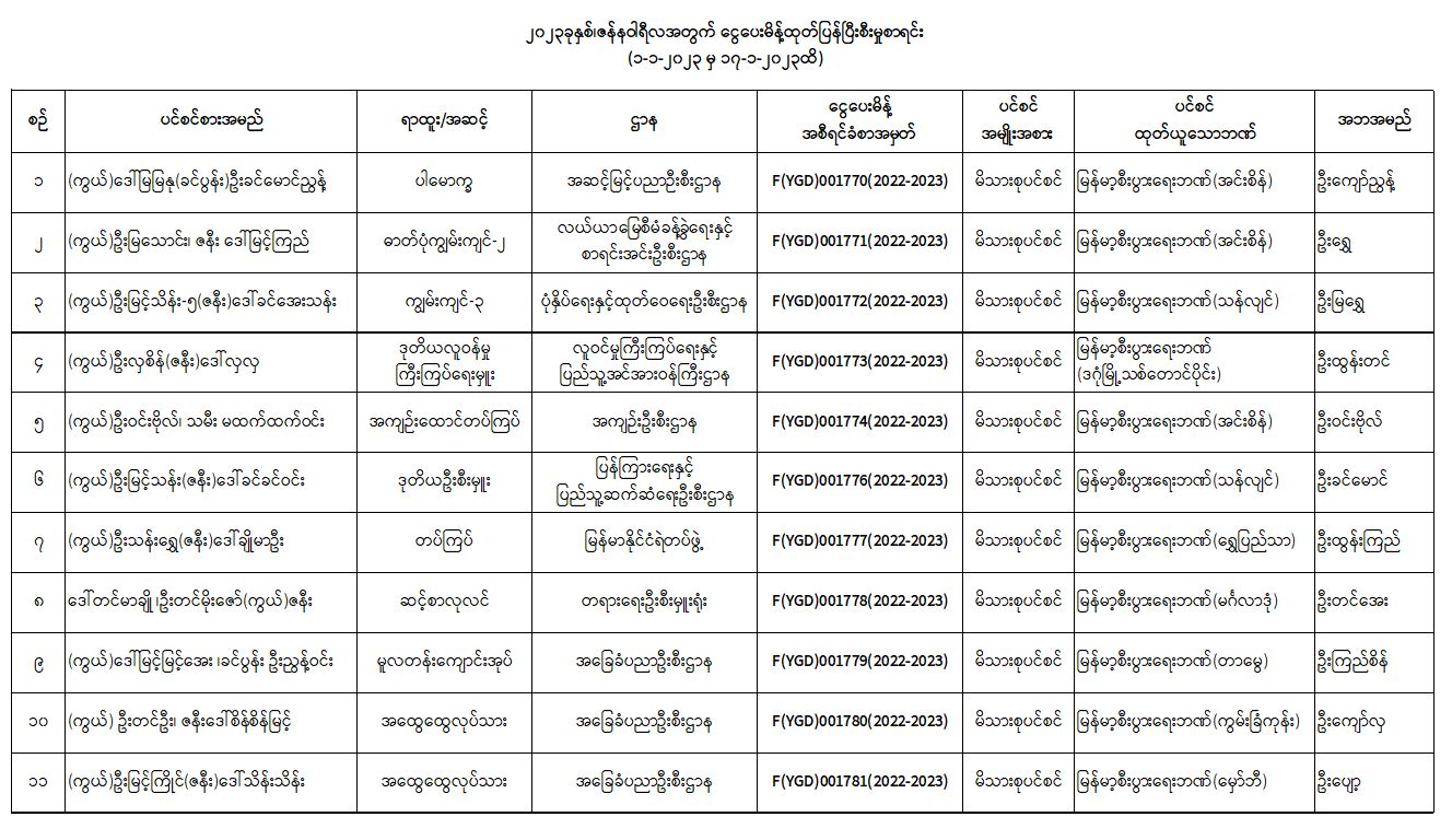ပင်စင်ဦးစီးဌာန၊ ရန်ကုန်တိုင်းဒေသကြီးဦးစီးမှူးရုံး၏ ငွေပေးမိန့်ထုတ်ပြန်မှုစာရင်း (၁-၁-၂၀၂၃ မှ ၁၇-၁-၂၀၂၃)