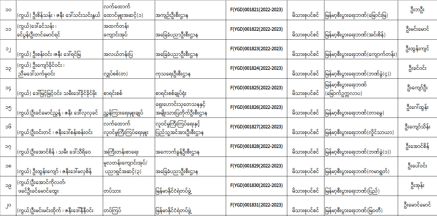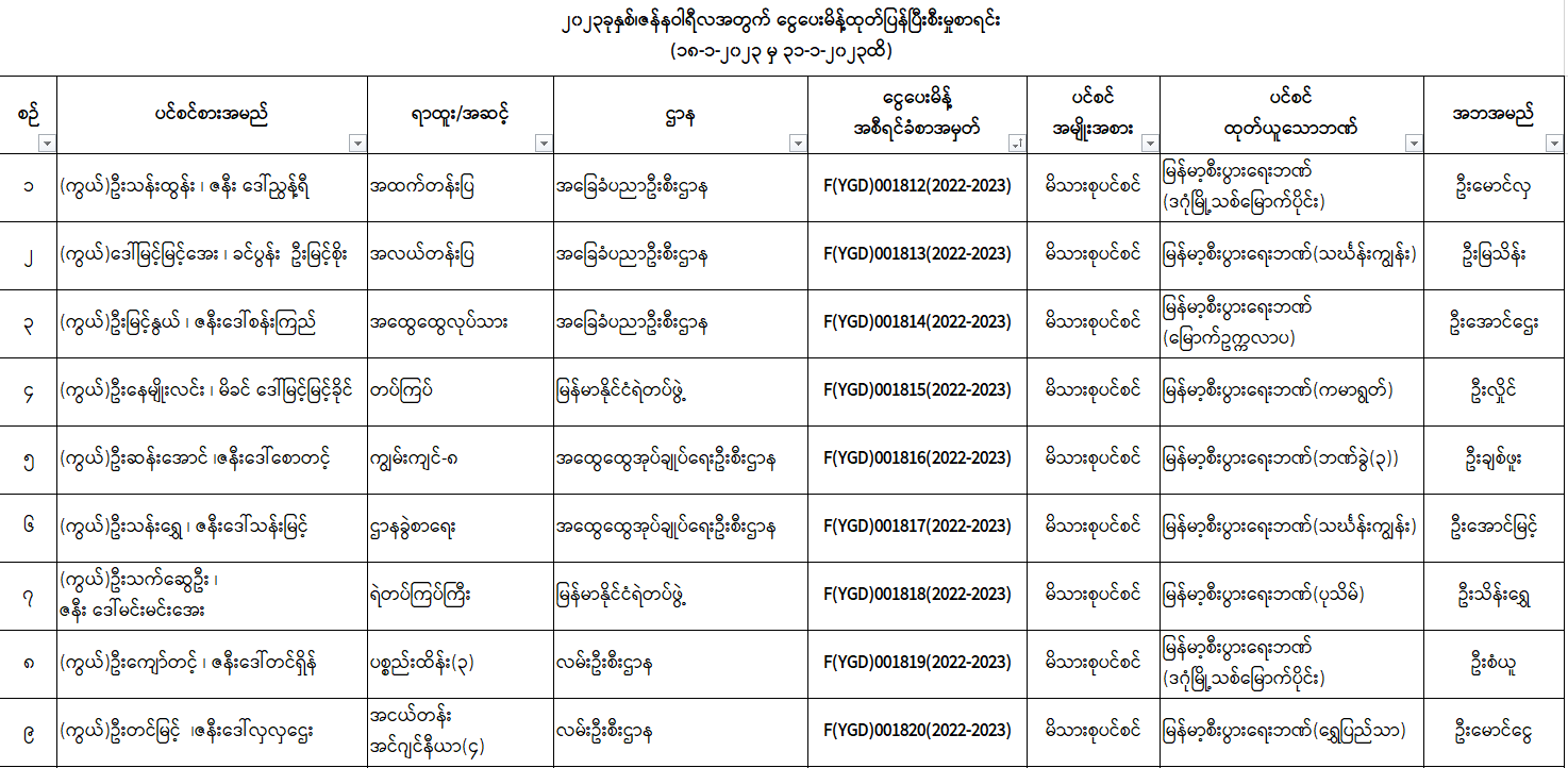 ပင်စင်ဦးစီးဌာန၊ရန်ကုန်တိုင်းဒေသကြီး၏ငွေပေးမိန့်ထုတ်ပြန်မှုစာရင်း(၁၈-၁-၂၀၂၃ မှ ၃၁-၁-၂၀၂၃ထိ) pdfinance_editor Fri, 02/03/2023 - 11:40