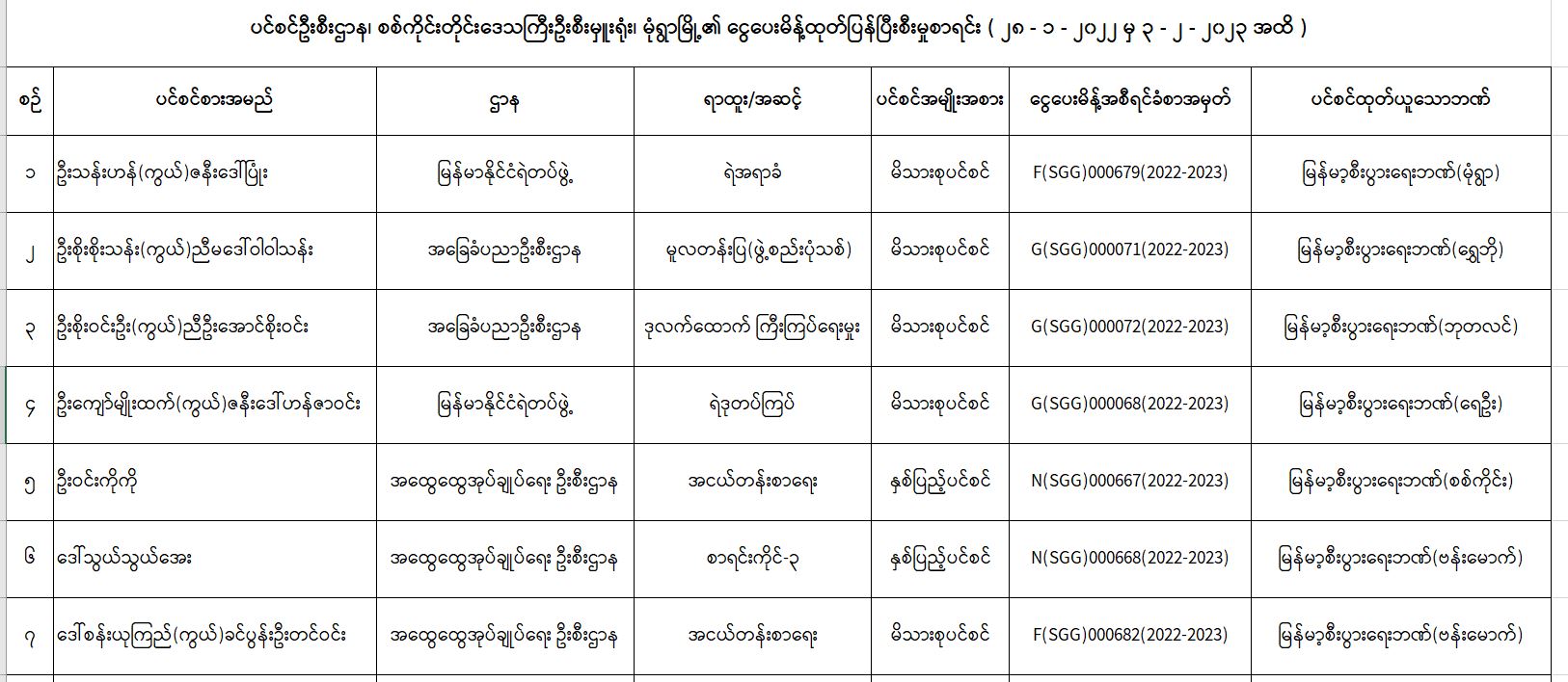 ပင်စင်ဦးစီးဌာန၊ စစ်ကိုင်းတိုင်းဒေသကြီးဦးစီးမှူးရုံး၏ ငွေပေးမိန့်ထုတ်ပြန်မှုစာရင်း (၂၈-၁-၂၀၂၃ မှ ၃-၂-၂၀၂၃) pdfinance_editor Mon, 03/13/2023 - 14:35