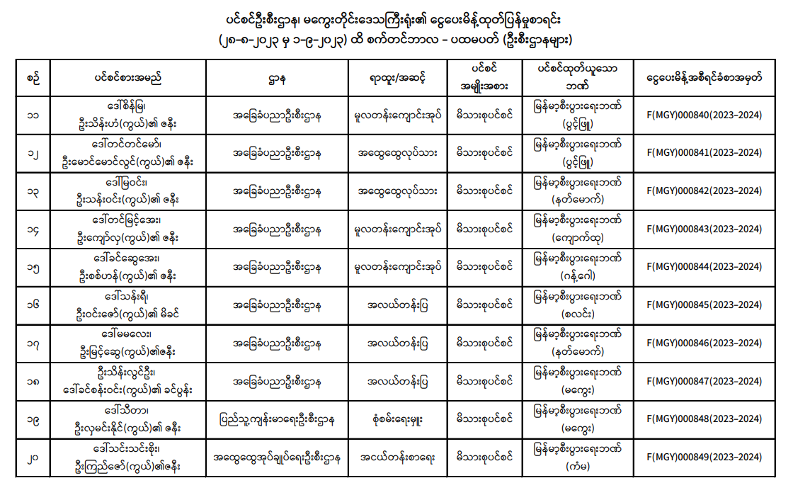 ပင်စင်ဦးစီးဌာန၊ မကွေးတိုင်းဒေသကြီးဦးစီးမှူးရုံး၏ ငွေပေးမိန့်ထုတ်ပြန်မှုစာရင်း (၂၈-၈-၂၀၂၃ မှ ၁-၉-၂၀၂၃) pdfinance_editor Mon, 09/04/2023 - 13:08
