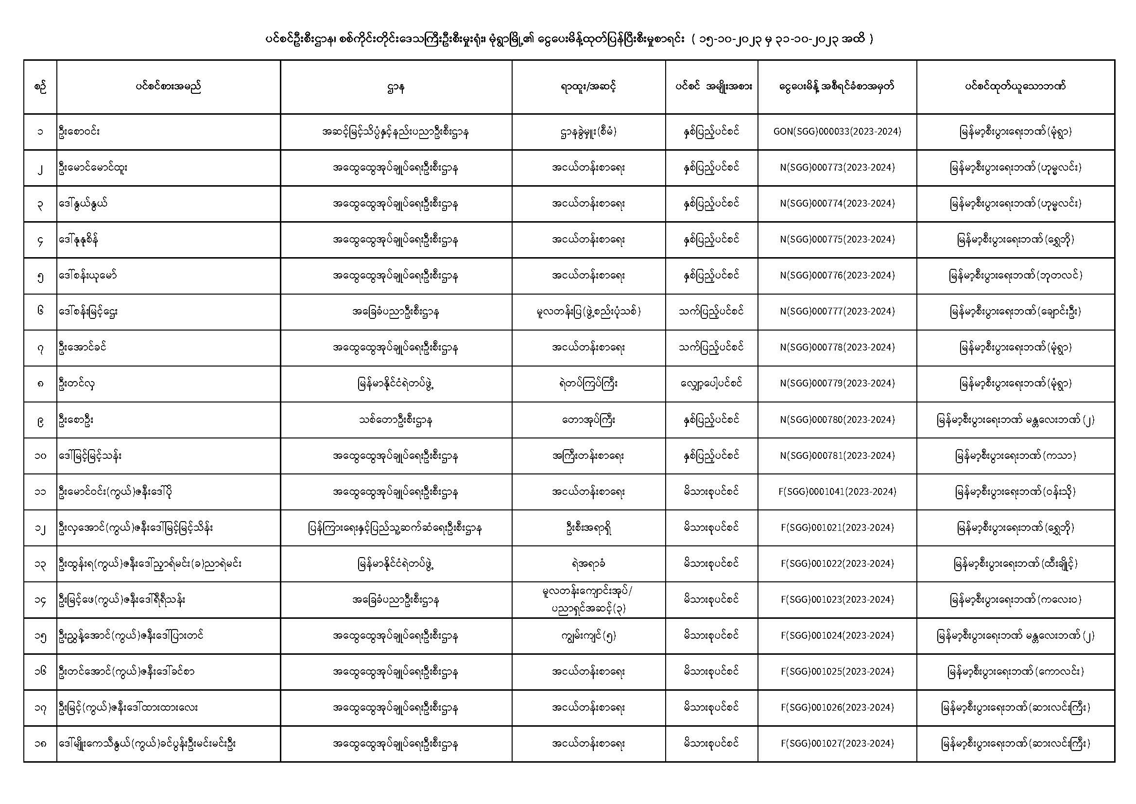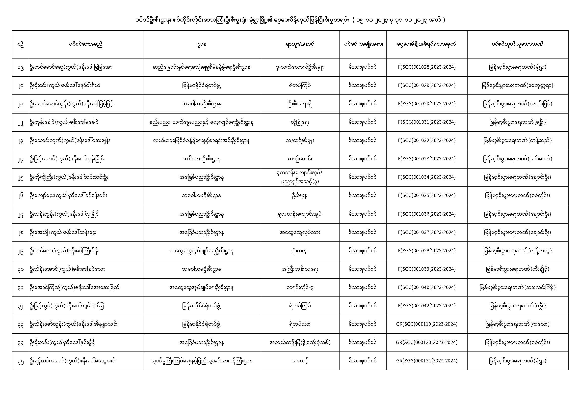 ပင်စင်ဦးစီးဌာန၊ စစ်ကိုင်းတိုင်းဒေသကြီးဦးစီးမှူးရုံး၏ ငွေပေးမိန့်ထုတ်ပြန်မှုစာရင်း (၁၅-၁၀-၂၀၂၃ မှ ၃၁-၁၀-၂၀၂၃) pdfinance_editor Thu, 11/02/2023 - 12:00