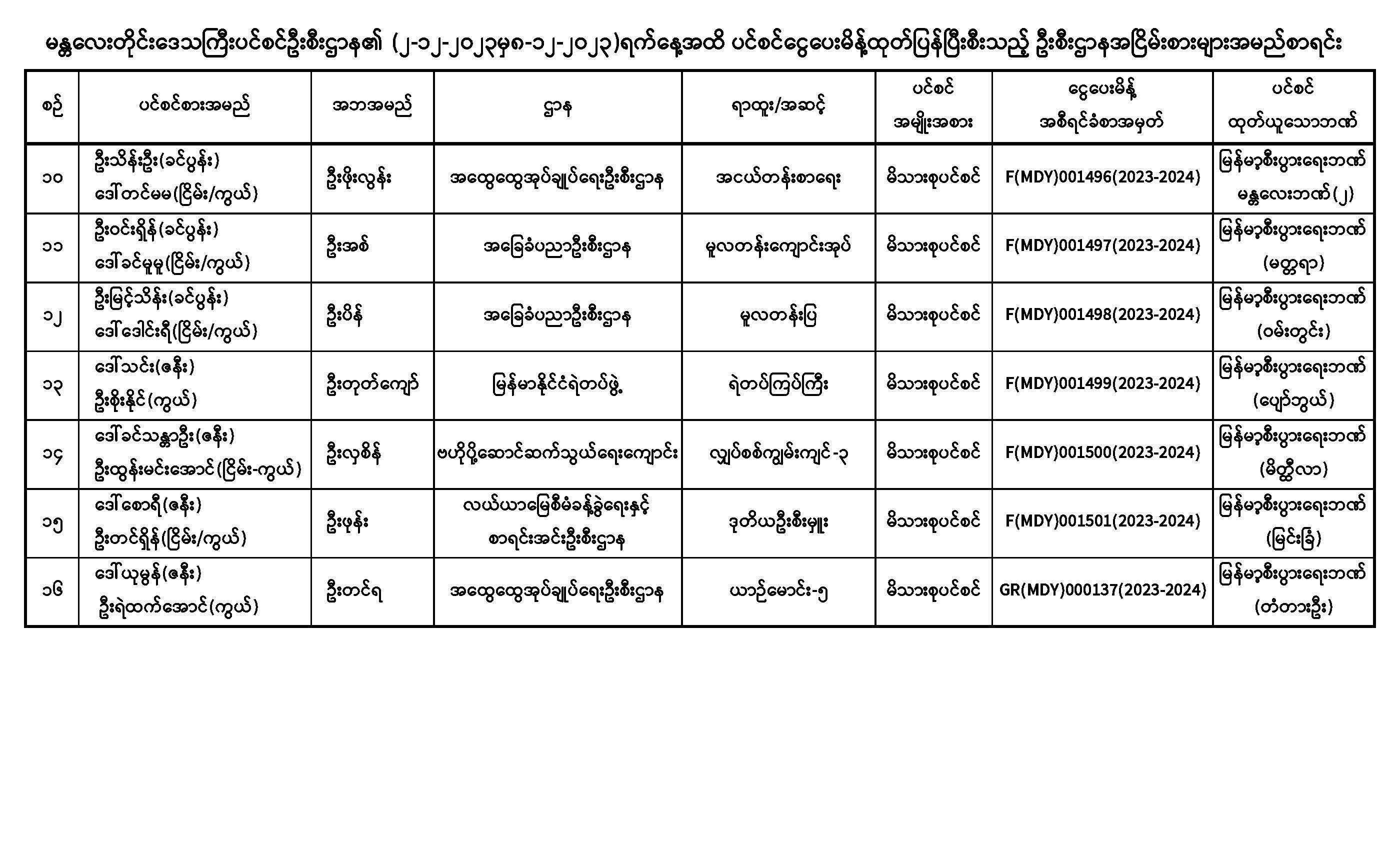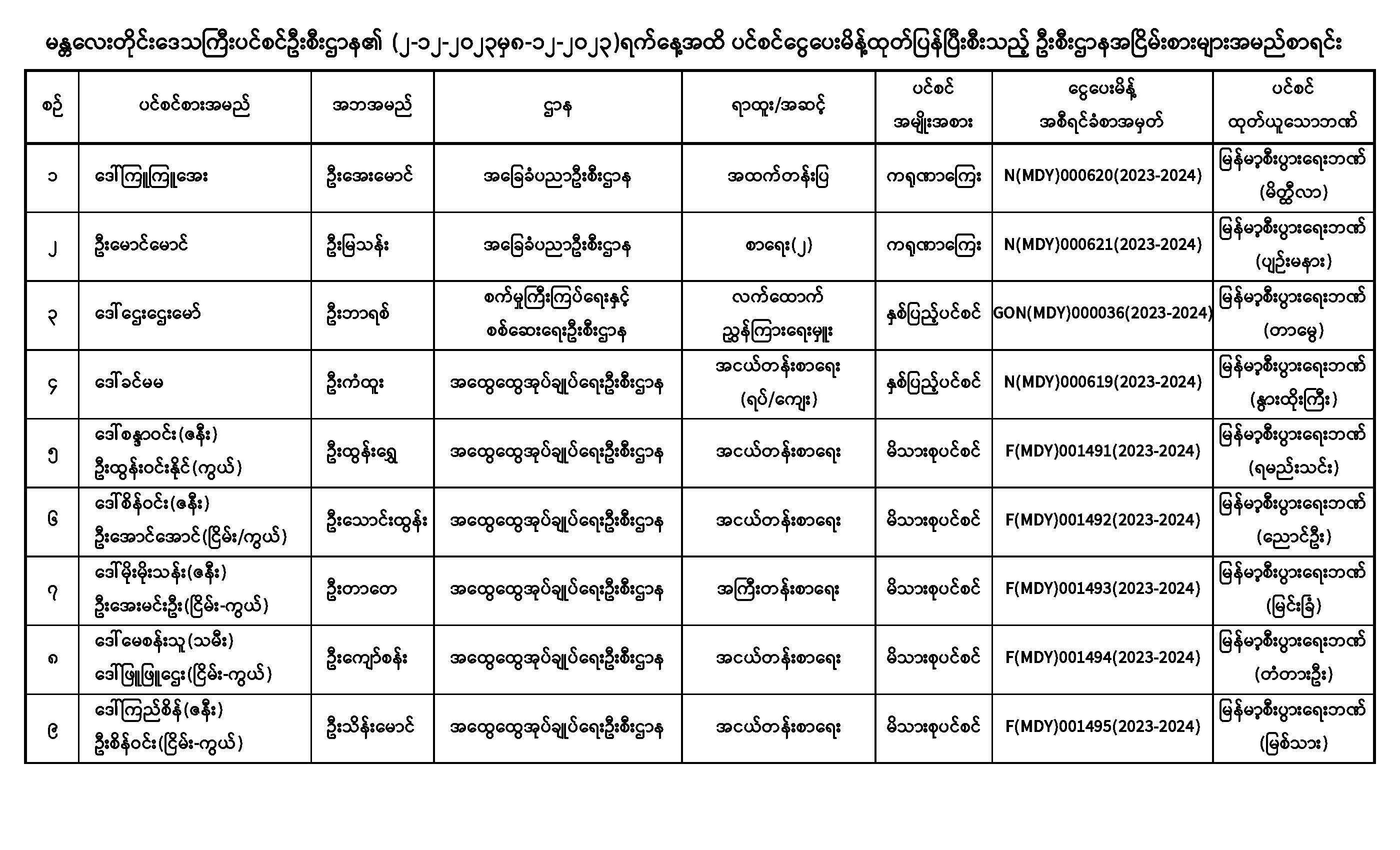 ပင်စင်ဦးစီးဌာန၊ မန္တလေးတိုင်းဒေသကြီးဦးစီးမှူးရုံး၏ ငွေပေးမိန့်ထုတ်ပြန်မှုစာရင်း (၂-၁၂-၂၀၂၃ မှ ၈-၁၂-၂၀၂၃)