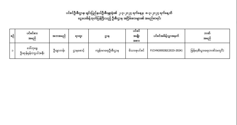 ပင်စင်ဦးစီးဌာန၊ ချင်းပြည်နယ်ဦးစီးမှူးရုံး၏ ငွေပေးမိန့်ထုတ်ပြန်မှုစာရင်း (၂-၃-၂၀၂၄ မှ ၈-၃-၂၀၂၄) pdfinance_editor Fri, 03/08/2024 - 10:20
