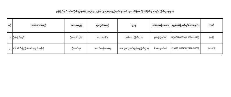 ပင်စင်ဦးစီးဌာန၊ မွန်ပြည်နယ်ဦးစီးမှူးရုံး၏ ငွေပေးမိန့်ထုတ်ပြန်မှုစာရင်း (၂၃-၃-၂၀၂၄ မှ ၂၉-၃-၂၀၂၄) pdfinance_editor Mon, 04/01/2024 - 15:00