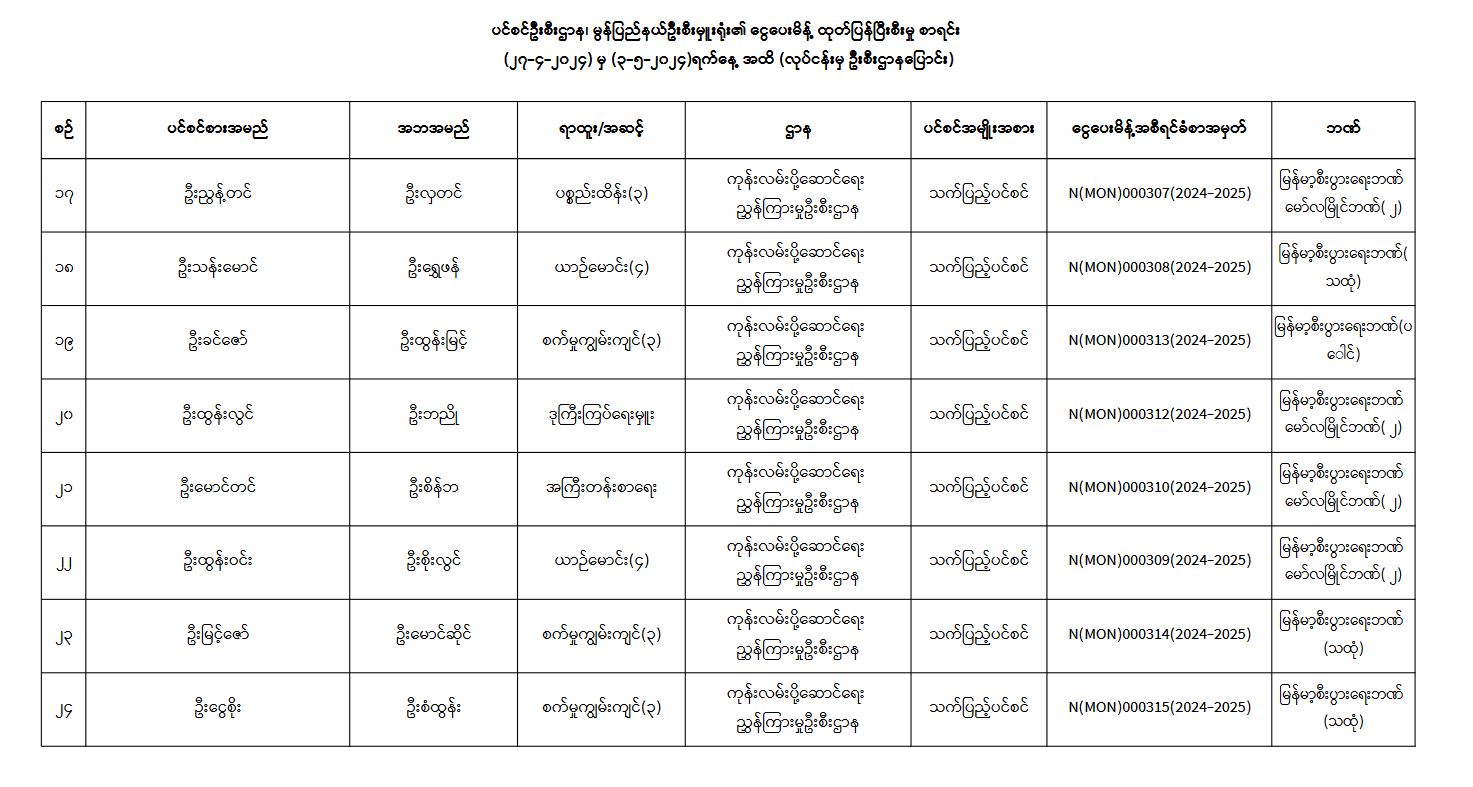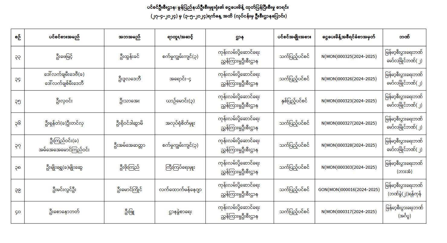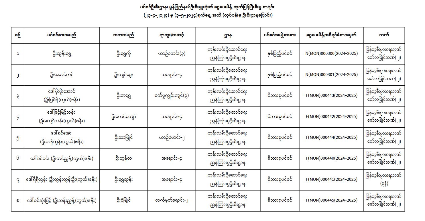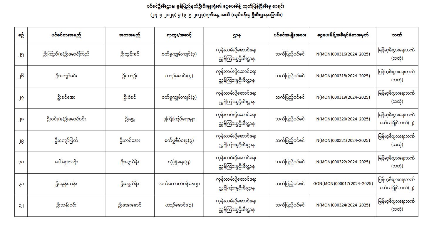 ပင်စင်ဦးစီးဌာန၊ မွန်ပြည်နယ်ဦးစီးမှူးရုံး၏ ငွေပေးမိန့်ထုတ်ပြန်မှုစာရင်းနှင့် လုပ်ငန်းမှဦးစီးပြောင်း ငွေပေးမိန့်ထုတ်ပြန်မှုစာရင်း (၂၇-၄-၂၀၂၄ မှ ၃-၅-၂၀၂၄) pdfinance_editor Tue, 05/07/2024 - 11:06