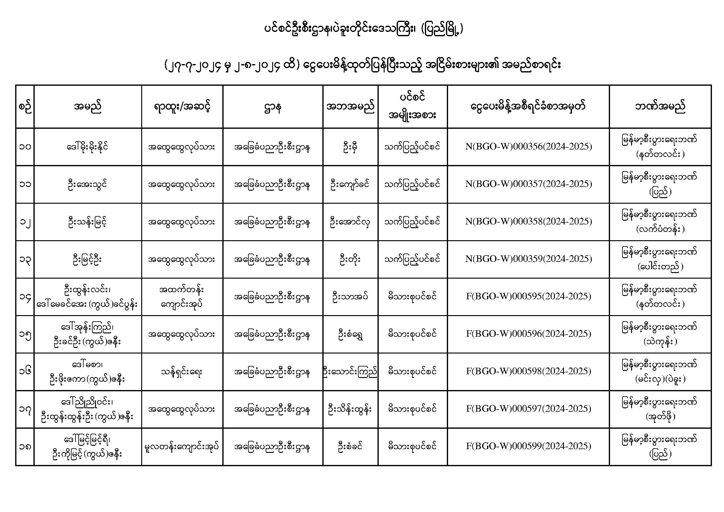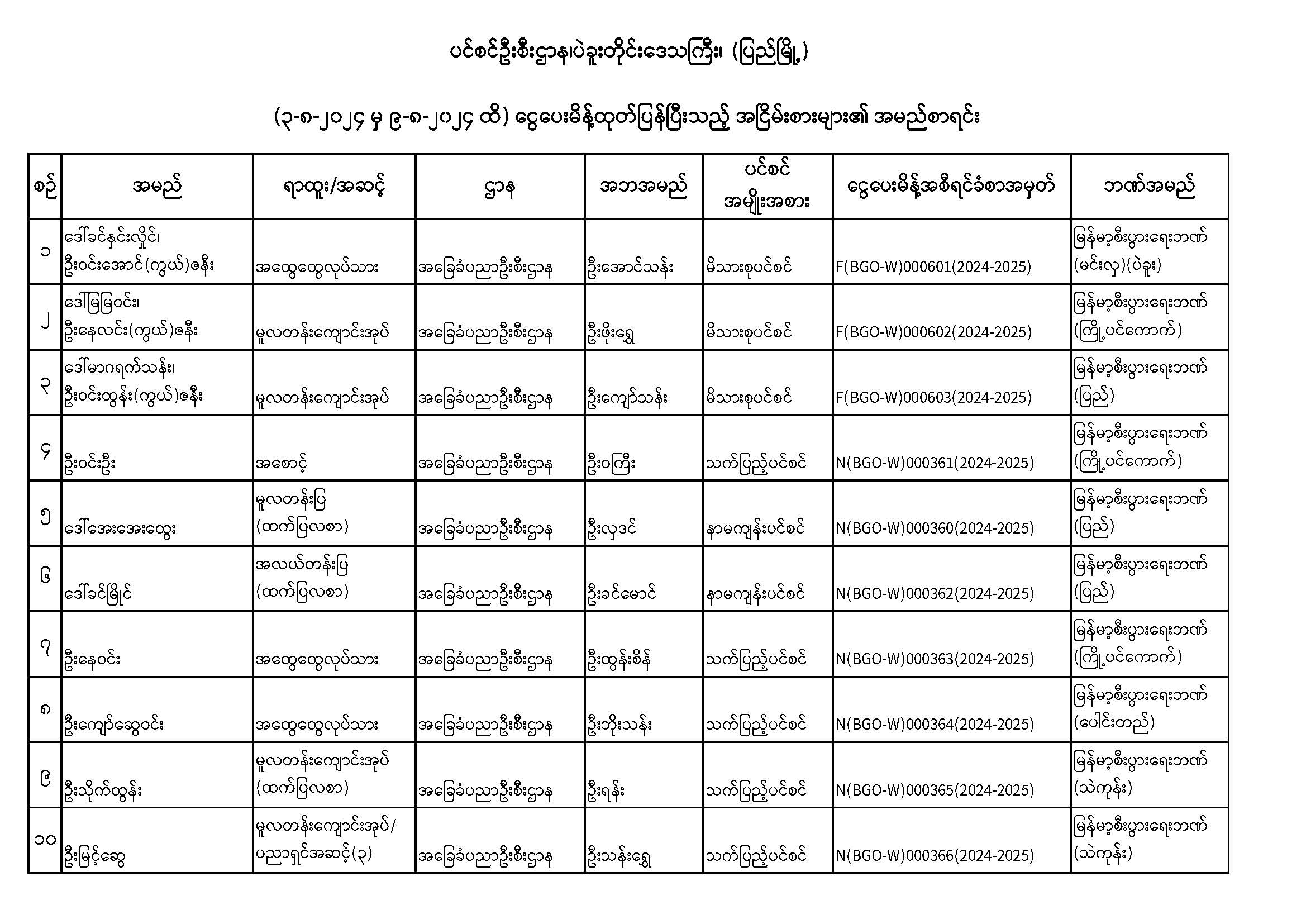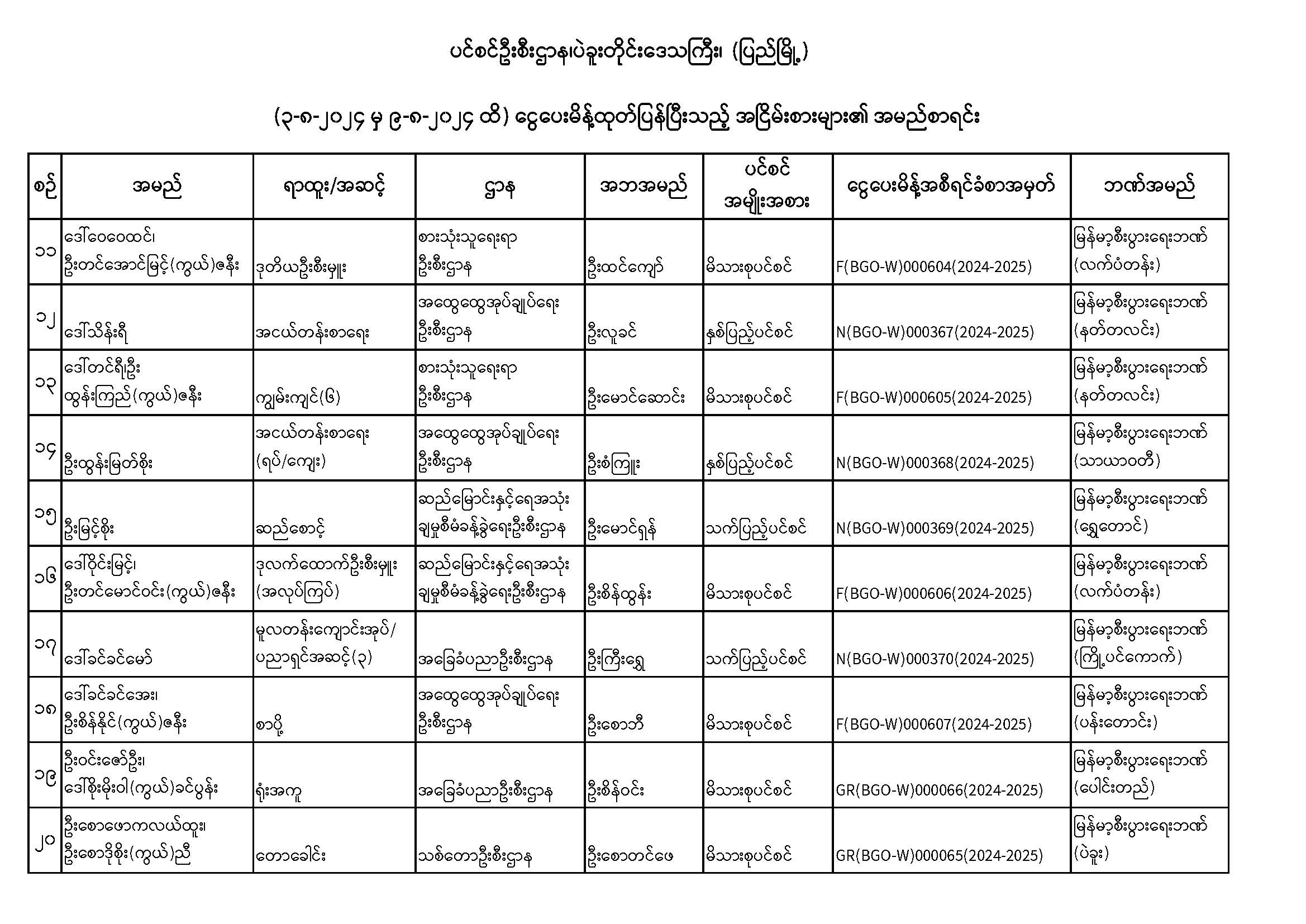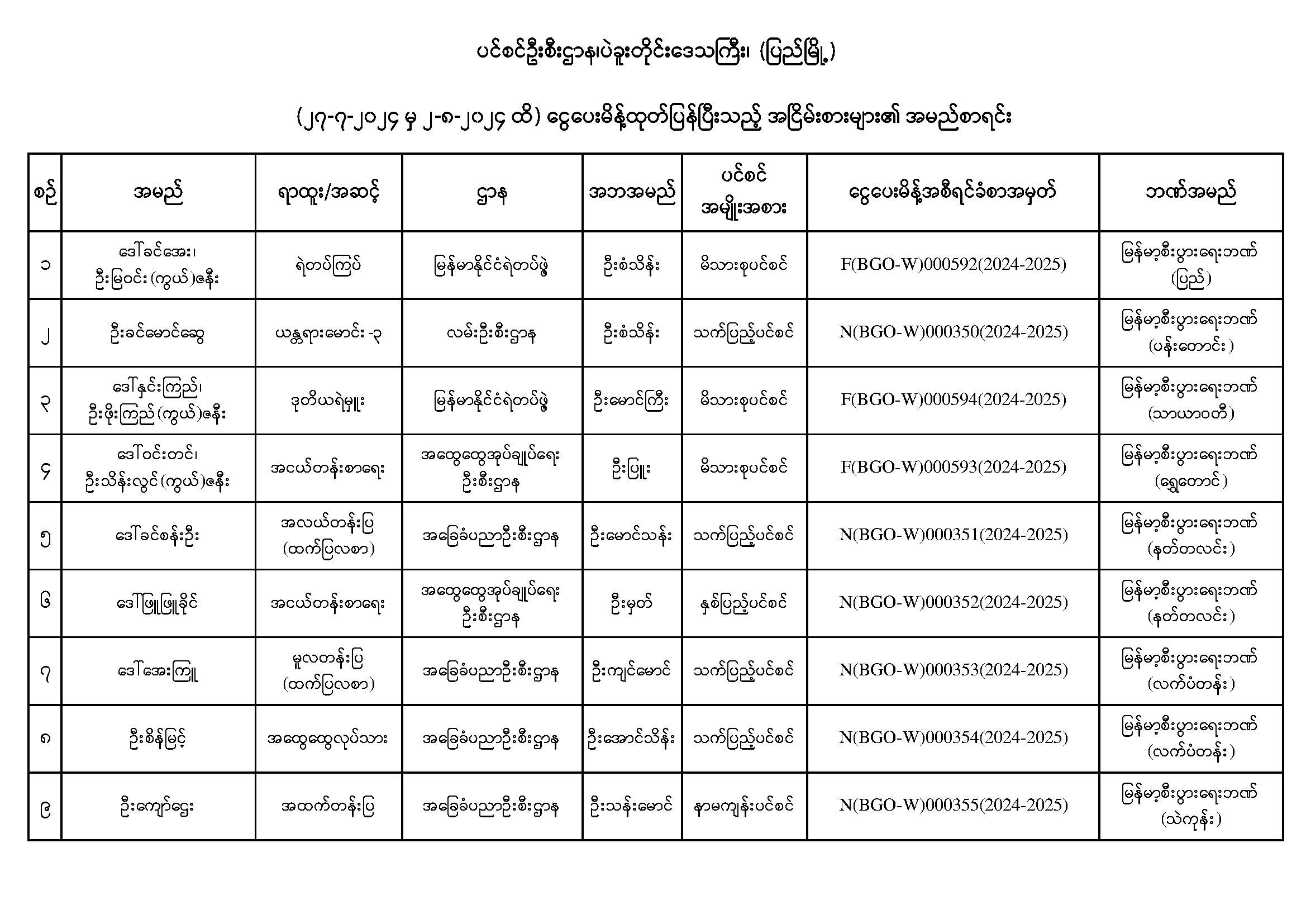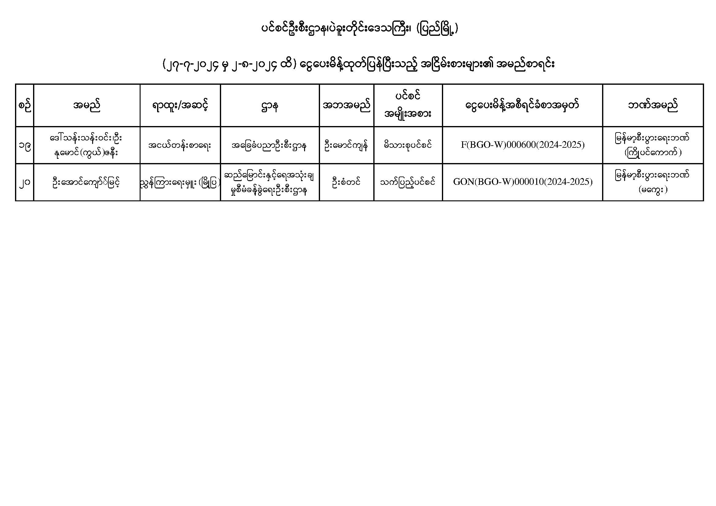 ပင်စင်ဦးစီးဌာန ၊ ပဲခူးတိုင်းဒေသကြီး (ပြည်) ၏ ငွေပေးမိန့်ထုတ်ပြန်မှုစာရင်း (၂၇-၇-၂၀၂၄ မှ ၉-၈-၂၀၂၄) pdfinance_editor Wed, 08/21/2024 - 12:17