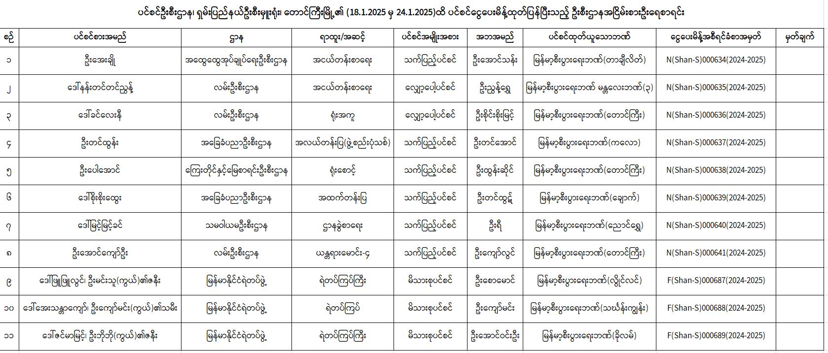 ပင်စင်ဦးစီးဌာန၊ ရှမ်းပြည်နယ်ဦးစီးမှူးရုံး၏ ငွေပေးမိန့်ထုတ်ပြန်မှုစာရင်း (၁၈-၁-၂၀၂၅ မှ ၂၄-၁-၂၀၂၅) pdfinance_editor Thu, 01/30/2025 - 16:32