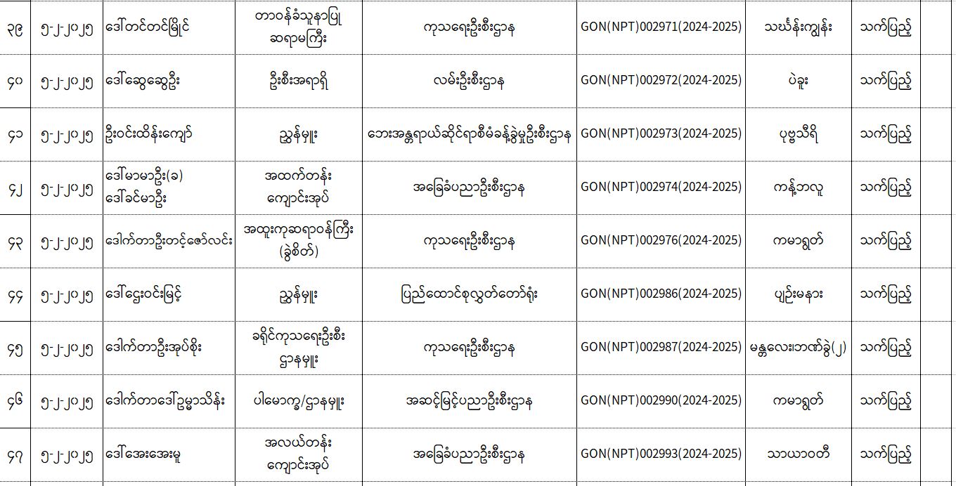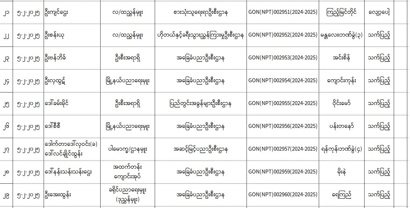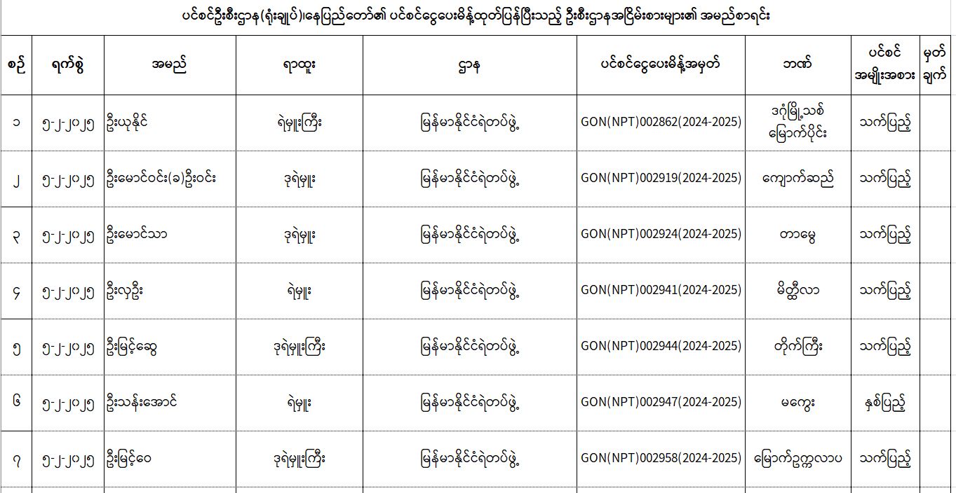 ပင်စင်ဦးစီးဌာန၊ နေပြည်တော်၏ ငွေပေးမိန့်ထုတ်ပြန်မှုစာရင်း (၅-၂-၂၀၂၅) pdfinance_editor Fri, 02/07/2025 - 13:36