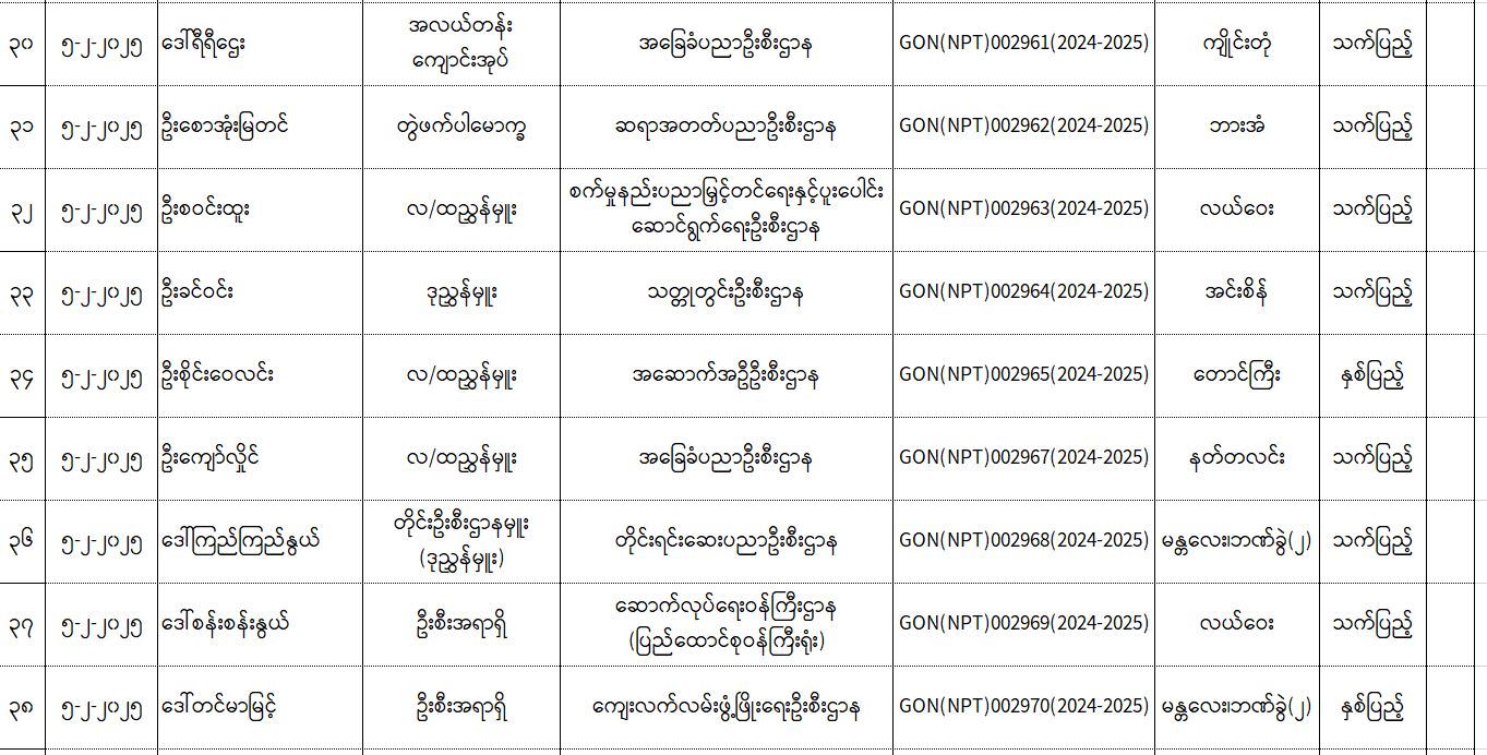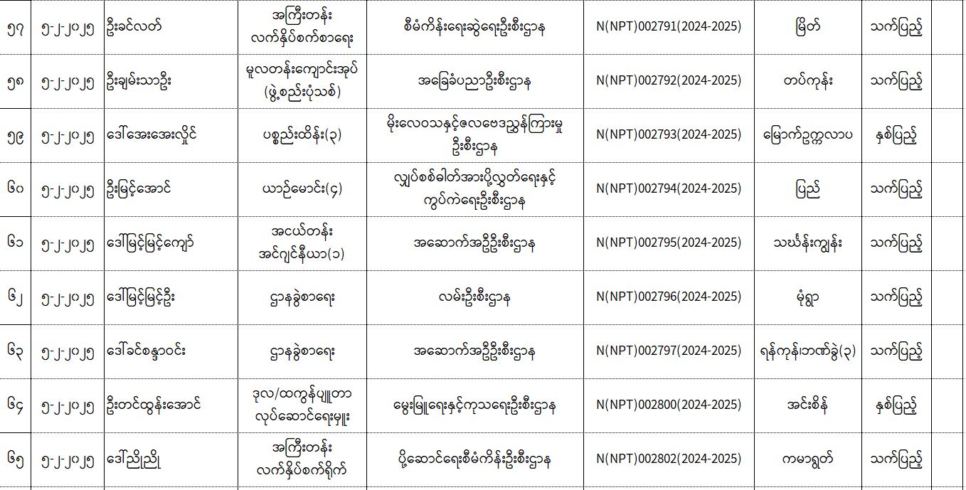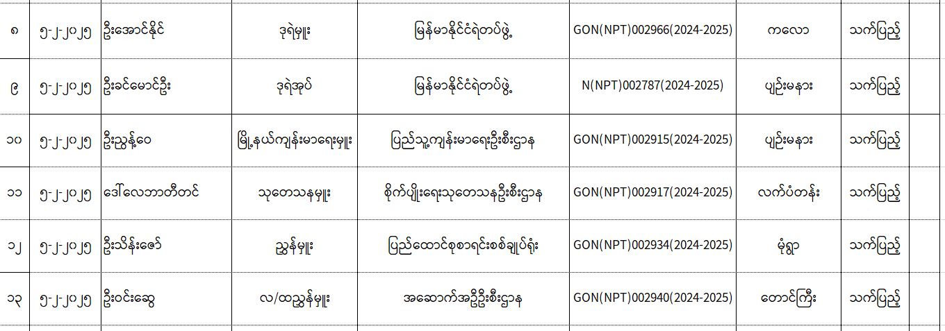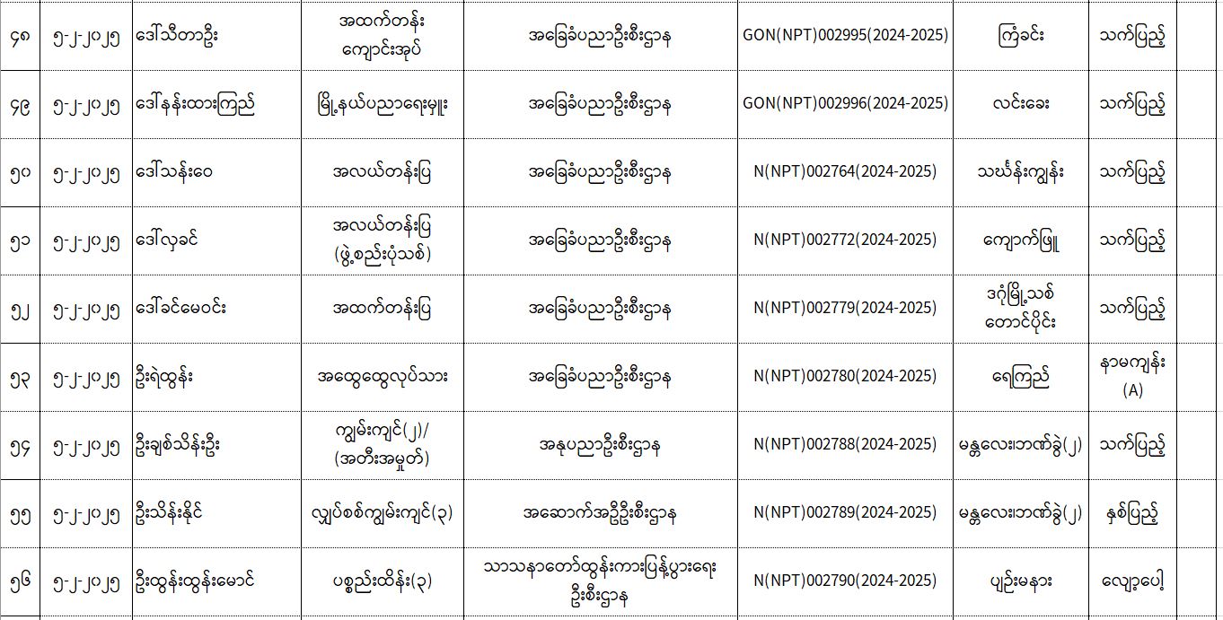 ပင်စင်ဦးစီးဌာန၊ နေပြည်တော်၏ ငွေပေးမိန့်ထုတ်ပြန်မှုစာရင်း (၅-၂-၂၀၂၅) pdfinance_editor Fri, 02/07/2025 - 13:36