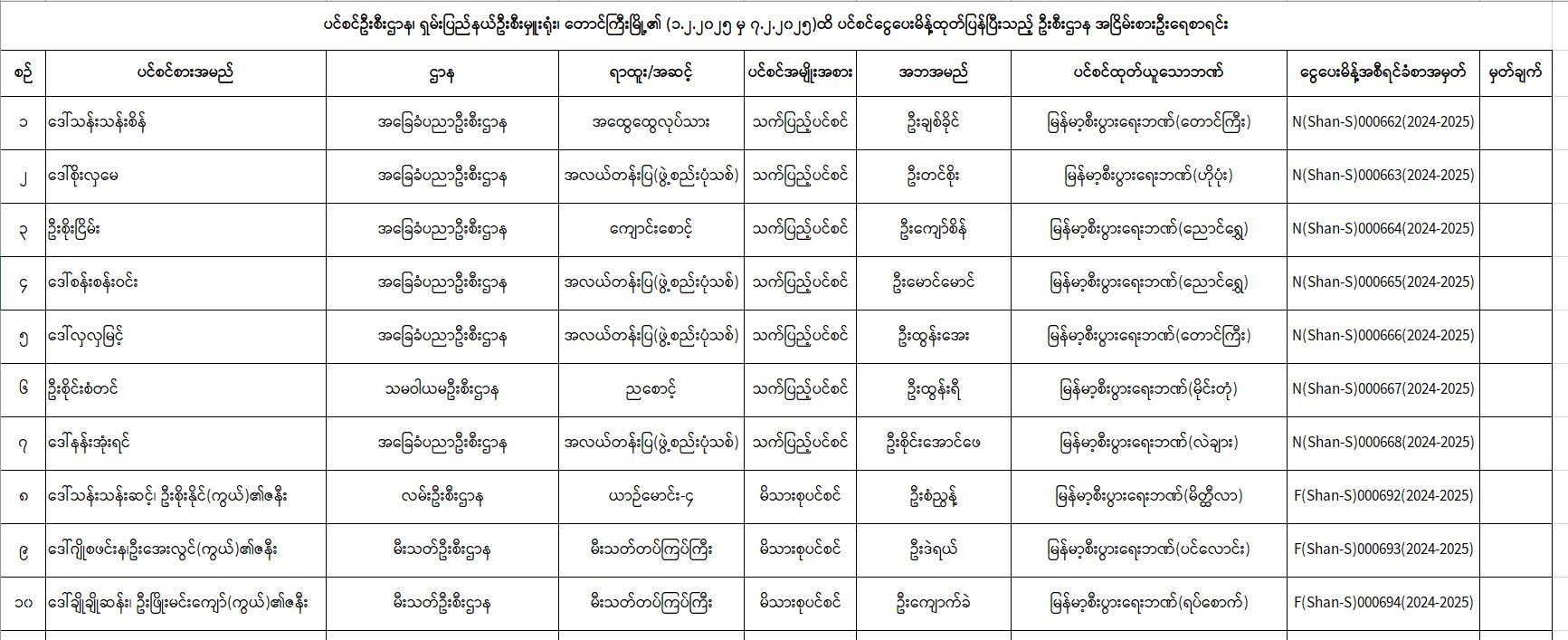 ပင်စင်ဦးစီးဌာန၊ ရှမ်းပြည်နယ်ဦးစီးမှူးရုံး၏ ငွေပေးမိန့်ထုတ်ပြန်မှုစာရင်း (၁-၂-၂၀၂၅ မှ ၇-၂-၂၀၂၅) pdfinance_editor Fri, 02/07/2025 - 13:42