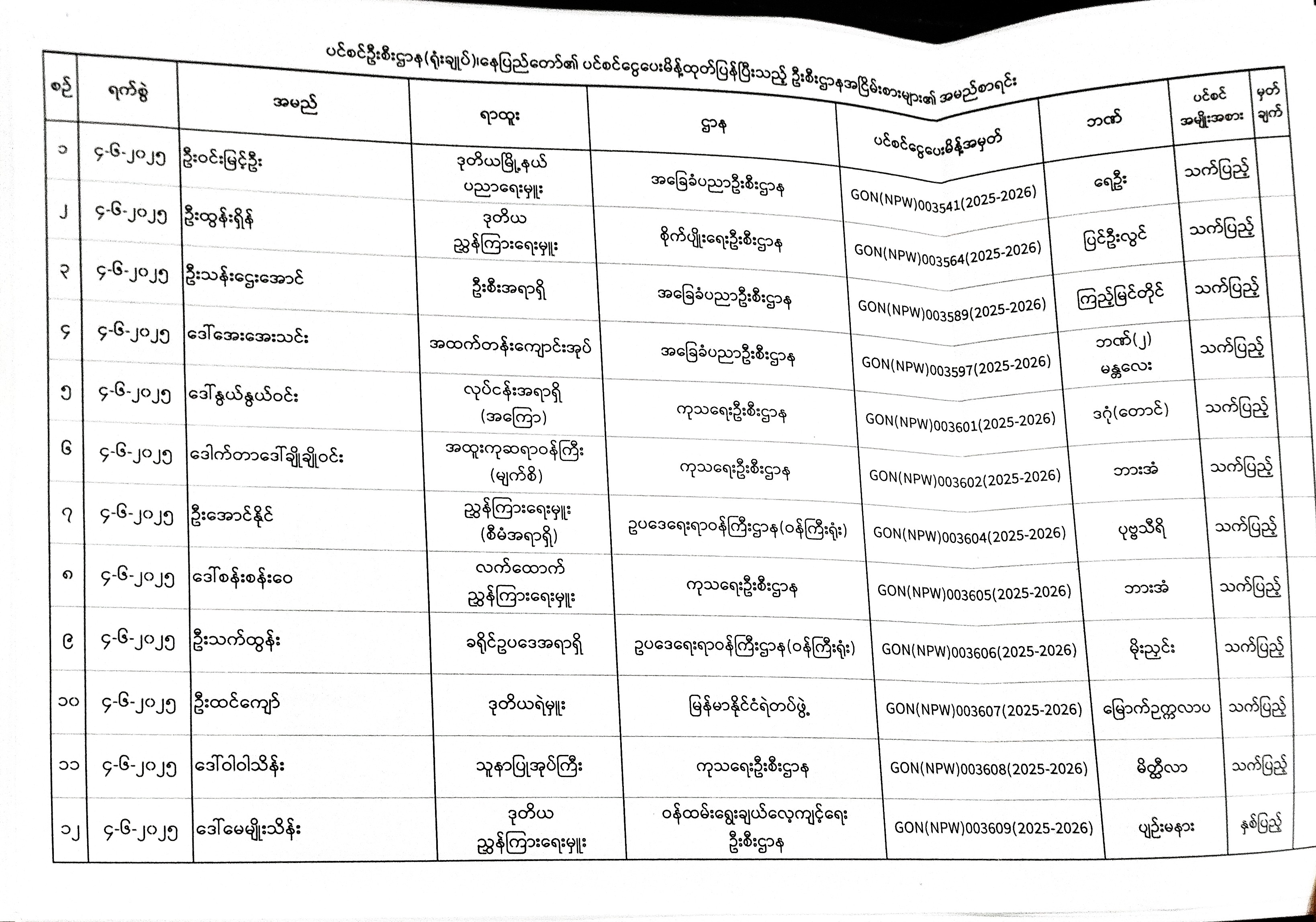 ပင်စင်ဦးစီးဌာန၊ နေပြည်တော်၏ ငွေပေးမိန့်ထုတ်ပြန်မှုစာရင်း (၉-၆၂၀၂၅) pdfinance_editor Fri, 06/13/2025 - 13:33