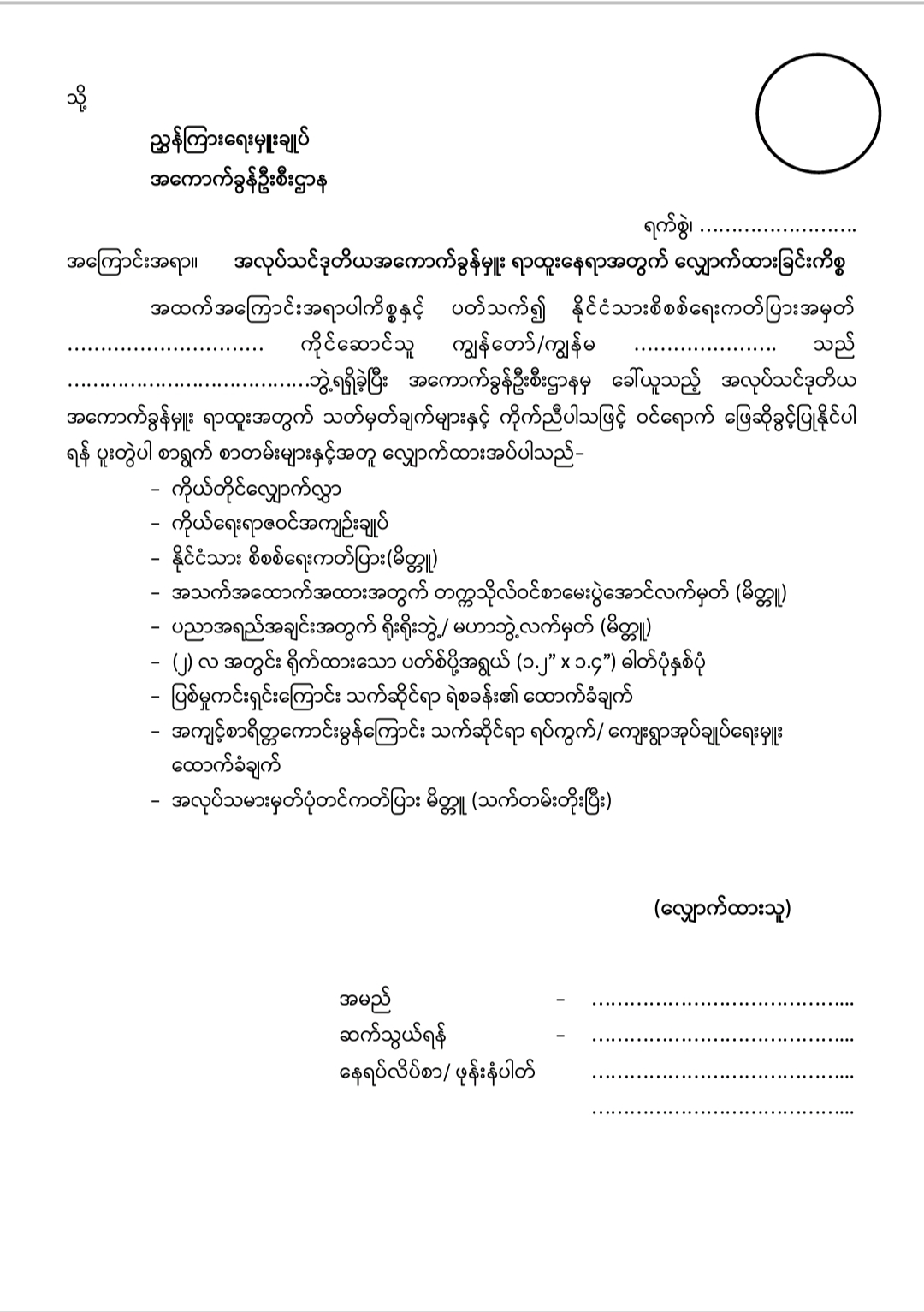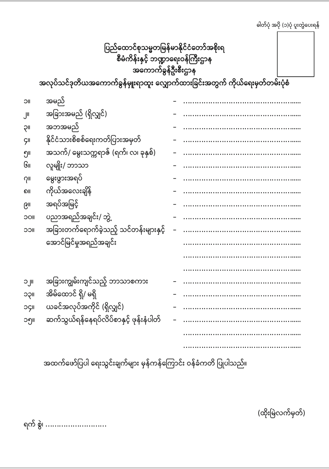 အလုပ်သင်ဒုတိယအကောက်ခွန်မှူးရာထူး အလုပ်လျှောက်လွှာပုံစံ
