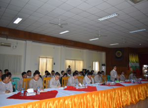 ရန်ကုန်မြို့၊ ပြည်တွင်းအခွန်များဦးစီးဌာန၊ အောင်ဘာလေသိန်းဆုဌာနခွဲ၊ အစည်းအဝေးခန်းမတွင် မြို့နယ်အခွန်ဦးစီးဌာနမှူးလုပ်ငန်းကျွမ်းကျင်မှု သင်တန်းအမှတ်စဉ် (၆၈) သင်တန်းဖွင့်ပွဲအခမ်းအနားကို ယနေ့ ၄-၃-၂၀၁၉ ရက်နေ့ နံနက် ၉:၀၀ နာရီအချိန်၌ ကျင်းပပြုလုပ်ခဲ့ပါသည်။အဆိုပါ အခမ်းအနားတွင် ပြည်တွင်းအခွန်များဦးစီးဌာန၊ ညွှန်ကြားရေးမှူးချုပ် ဦးမင်းထွဋ် တက်ရောက်၍ သင်တန်းဖွင့်ပွဲအမှာစကားပြောကြားခဲ့ပါသည်။