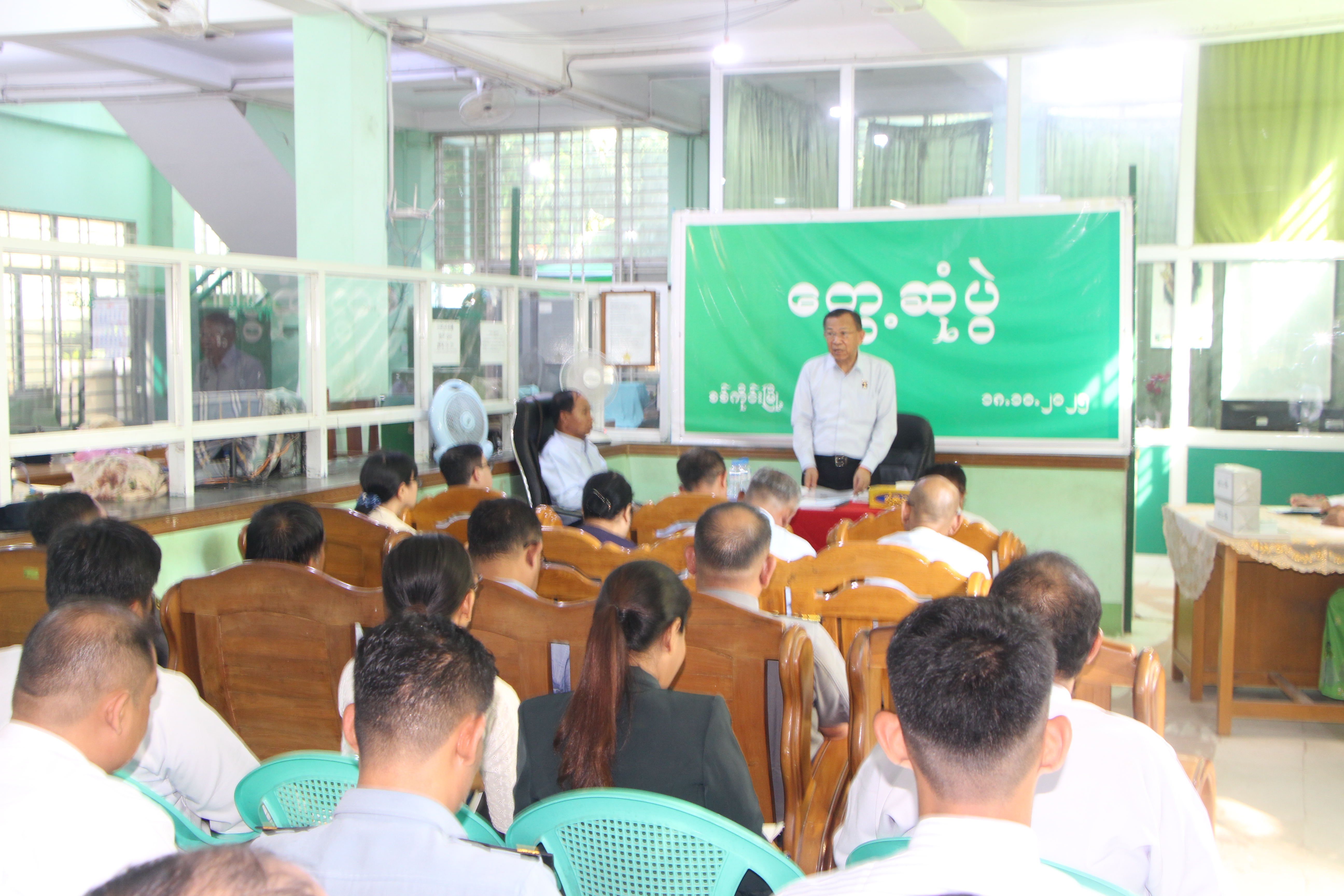 ဦးစွာ ပြည်ထောင်စုဝန်ကြီးသည် စစ်ကိုင်းမြို့ရှိ မြန်မာ့စီးပွားရေးဘဏ်၊ ခရိုင်ဘဏ်ခွဲတွင် ဘဏ္ဍာရေးနှင့်အခွန်ဝန်ကြီးဌာနအောက်ရှိ မြန်မာ့စီးပွားရေး၊ ပြည်တွင်းအခွန်များဦးစီးဌာန၊ မြန်မာ့အာမခံလုပ်ငန်းနှင့် မြန်မာ့လယ်ယာဖွံ့ဖြိုးရေးဘဏ်တို့မှ ဝန်ထမ်းများနှင့်တွေ့ဆုံ၍ အမှာစကားပြောကြားရာတွင် မြန်မာ့စီးပွားရေးဘဏ်သည်  ခေတ်အဆက်ဆက်ကပင် ပြည်သူတို့အတွက် ဘဏ်လုပ်ငန်းဆိုင်ရာဝန်ဆောင်မှုများကို ဖြည့်ဆည်းဆောင်ရွက်ပေးခဲ့သည့် နိုင်ငံပိုင်ဘဏ်ကြီးဖြစ်၍ ပြည်သူတို့ယုံကြည်မှုကို ရရှိနေသည့် နိုင်ငံပိုင်ဘဏ်ကြီး တစ်ခုဖြစ်ကြောင်း၊  ထို့အတူ မြန်မာ့လယ်ယာဖွံ့ဖြိုးရေးဘဏ်သည်လည်း  တောင်သူလယ်သမားကြီးများအတွက် စိုက်ပျိုးစရိတ်ချေးငွေများကို စဉ်ဆက်မပြတ်ထုတ်ချေးပေးနေသည့် ဘဏ်တစ်ခုဖြစ်ကြောင်း၊ ထိုနည်းတူစွာပင် မြန်မာ့အာမခံလုပ်ငန်းသည်လည်း ရင်းနှီးမြှုပ်နှံမှုများအတွက် စိတ်ချရသည့် အာမခံထားရှိမှုများကို ယုံကြည်စိတ်ချစွာ ပံ့ပိုးဆောင်ရွက်ပေးနေသည့်ဌာနတစ်ခုဖြစ်ကြောင်း၊ ပြည်တွင်းအခွန်များဦးစီးဌာနသည် နိုင်ငံတော်အတွက် ရသင့်ရထိုက်သည့်အခွန်ရငွေများ ပြည့်ပြည့်ဝဝရရှိအောင် ပံ့ပိုးဆောင်ရွက်ပေးနေသည့်ဌာနဖြစ်ကြောင်း၊  သို့ဖြစ်ရာ ဘဏ္ဍာရေးနှင့်အခွန်ဝန်ကြီးဌာန သည် ငွေရေးကြေးနှင့် အခွန်ဆိုင်ရာကိစ္စရပ်များနှင့်စပ်လျဉ်း၍ ပြည်သူကိုဝန်ဆောင်မှုပေးနေသော ပြည်သူ့ဝန်ဆောင်မှုလုပ်ငန်းများကို ဆောင် ရွက်ပေးနေသည့်ဝန်ကြီး ဌာနတစ်ခုဖြစ်ကြောင်း၊  စစ်ကိုင်းတိုင်းဒေသကြီးသည် ငလျင်ဒဏ်ကို အများဆုံးထိခိုက်ခံခဲ့ရ သည့်ဒေသကြီးဖြစ်၍ ဝန်ထမ်းများအနေဖြင့် ရုံးဌာနများ ထိခိုက်ပျက်စီးခဲ့ရာ ရုံးပြန်လည်ပြုပြင် တည်ဆောင်မှုလုပ်ငန်းများကြားမှပင် ရုံးလုပ်ငန်းများကို အရှိန်အဟုန်မပျက်ကြိုးစား ဆောင်ရွက် ပေးခဲ့ကြ၍ အသိအမှတ်ပြုပါကြောင်း၊ ယင်းလုပ်ငန်းတိုးတက်မှုအရှိန်ကို ဆက်လက်ထိန်းသိမ်း၍ လျာထားချက်များ ပြည့်မီကျော်လွန်အောင် ကြိုးပမ်းဆောင်ရွက်ပေးကြရန် တိုက်တွန်းကြောင်း၊ ငလျင်ဒဏ်ကြောင့်ပျက်စီးခဲ့သော ရုံး/အဆောက်အအုံများကိုလည်း အမြန်ဆုံး အရည်အသွေးပြည့်ဝစွာဖြင့် ပြန်လည်ပြင်ဆင်ကြရန်နှင့် ရုံးလုပ်ငန်းများ အရှိန်အဟုန်မပျက်ဆောင်ရွက်သွားကြရန် ဖြစ်ကြောင်း ပြောကြားခဲ့သည်။