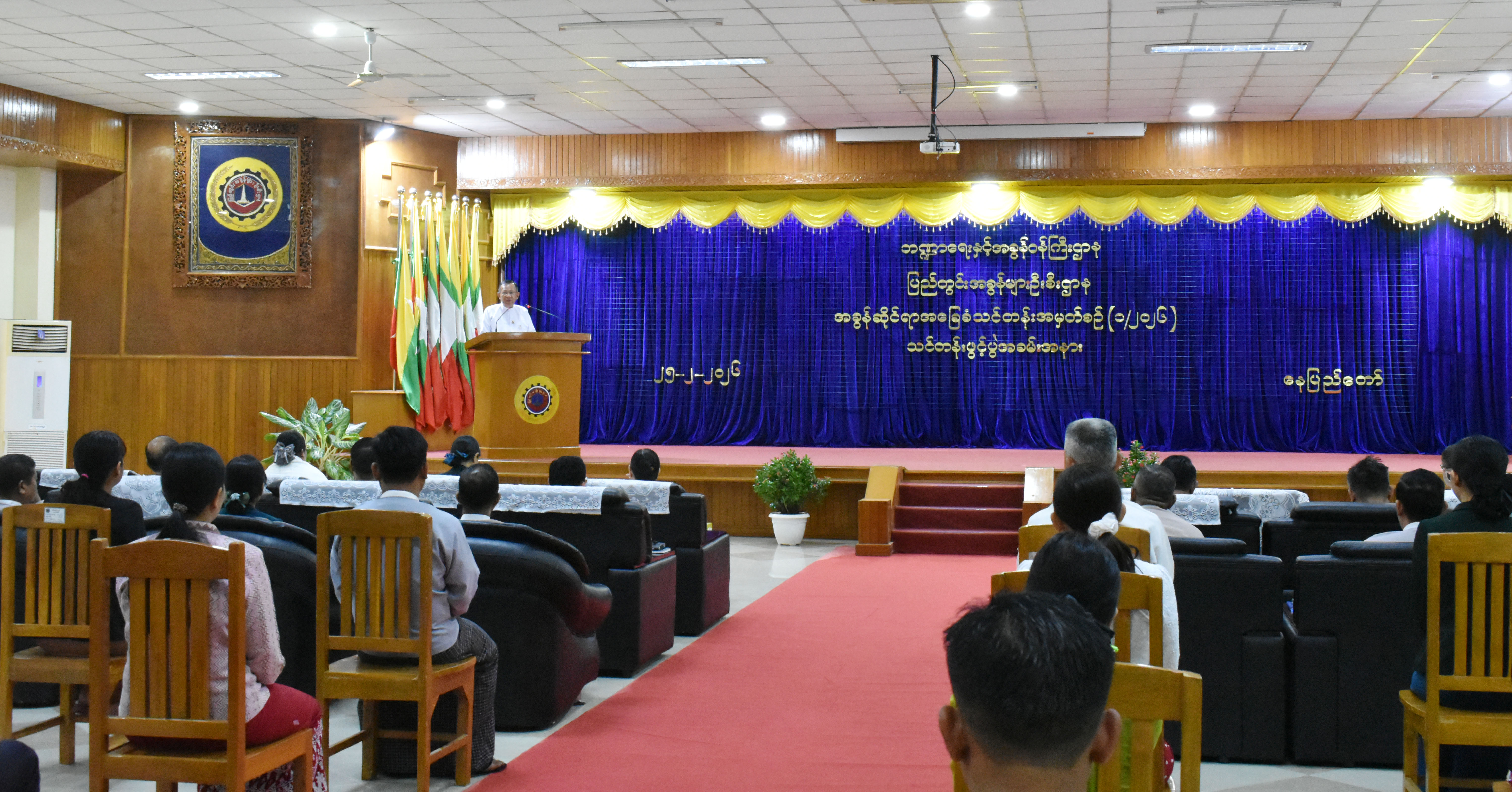 အခမ်းအနားတွင် ပြည်ထောင်စုဝန်ကြီးက ယနေ့ခေတ်တွင် အခွန်စနစ်ကို ပိုမို ကောင်းမွန်အောင် ခေတ်မီနည်းပညာများနှင့်ပြုပြင်ပြောင်းလဲမှုများ ပြုလုပ်လျက်ရှိကြ ကြောင်း၊ အခွန်နှင့်စပ်လျဉ်းသည့်လုပ်ငန်းစဉ်များ အောင်မြင်စေရေးအတွက် ဆက်စပ်နေ သည့် အခြားအစိုးရဌာနများမှ ဝန်ထမ်းများ၏ အခွန်ဆိုင်ရာသိမြင်နားလည်မှုနှင့် ပူးပေါင်း ဆောင်ရွက်မှုသည် မရှိမဖြစ်လိုအပ်သဖြင့် ယခုကဲ့သို့ သင်တန်းကို သီးသန့်စီစဉ်ဖွင့်လှစ် ပေးခြင်းဖြစ်ကြောင်း၊ သင်တန်းသား/သင်တန်းသူများအနေဖြင့် မိမိတို့ဌာနအသီးသီးတွင် လုပ်ငန်းများ ဆောင်ရွက်ကြသည့်အခါ ပိုမိုနီးကပ်စွာပူးပေါင်းဆောင်ရွက်ခြင်းဖြင့် နိုင်ငံ အတွက် ရသင့်ရထိုက်သော အခွန်ဘဏ္ဍာငွေများ ကောက်ခံရာတွင် ပိုမိုအားကောင်းလာမည် ဖြစ်ကြောင်း၊ ပြည်တွင်း/ပြည်ပရင်းနှီးမြှုပ်နှံသူများအတွက် ရှင်းလင်းသည့် အခွန်ပတ်ဝန်း ကျင်ကောင်းတစ်ခုဖန်တီးပေးနိုင်ရန် နိုင်ငံသားတိုင်း အခွန်ဆိုင်ရာအခွင့်အရေးနှင့် တာဝန်များကို သိရှိနားလည်စေရန် အားလုံးဝိုင်းဝန်းပူးပေါင်းဆောင်ရွက်သွားကြရန် လိုအပ်ကြောင်း မှာကြားသည်။