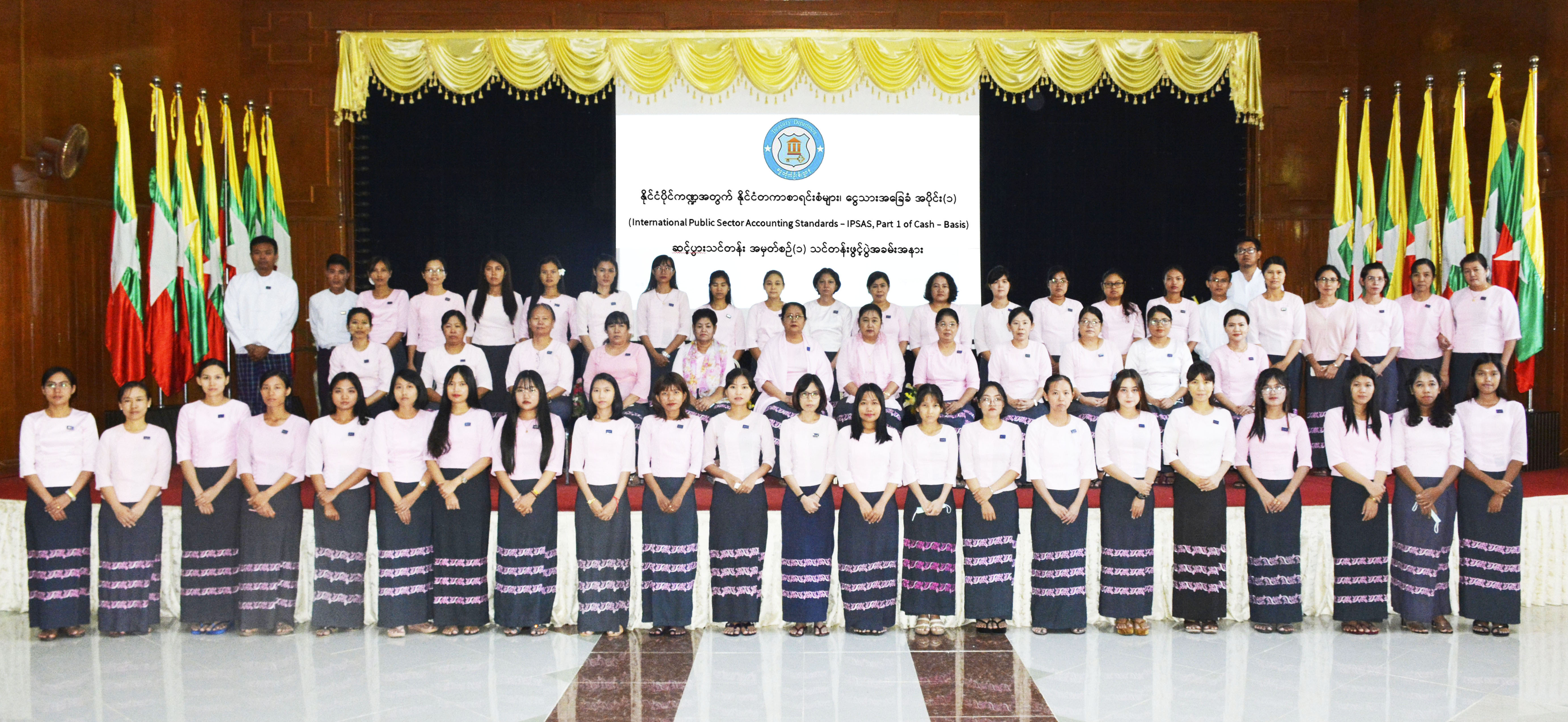နိုင်ငံပိုင်ကဏ္ဍအတွက် နိုင်ငံတကာစာရင်းစံများ ငွေသားအခြေခံအပိုင်း (၁) (International Public Sector Accounting Standards – IPSAS, Part 1 of Cash - Basis )ဆင့်ပွားသင်တန်း အမှတ်စဉ် (၁) သင်တန်းဖွင့်ပွဲအခမ်းအနားကို ယနေ့ နေ့လယ် ၁:၃၀ တွင် နေပြည်တော်ရှိ စီမံကိန်းနှင့်ဘဏ္ဍာရေးဝန်ကြီးဌာန၊ စုပေါင်းခန်းမ၌ ကျင်းပသည်။