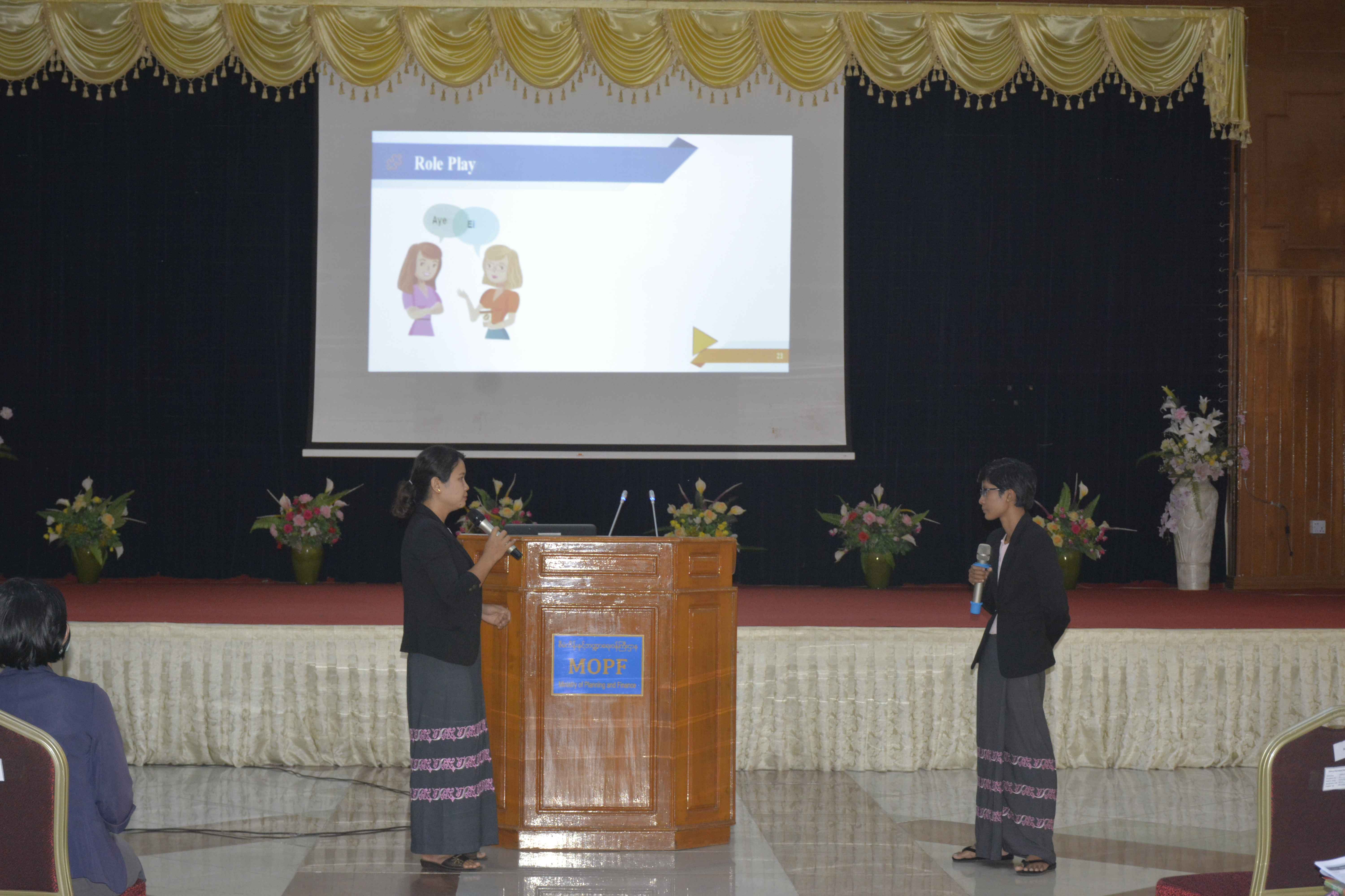 ဗီယက်နမ်နိုင်ငံ၊ ဒါနန်းမြို့၌ ၁၄−၁၁−၂၀၂၂ ရက်နေ့မှ ၂၃−၁၂−၂၀၂၂ ရက်နေ့အထိ ဖွင့်လှစ်ပို့ချခဲ့သည့် ၂၀၂၂ ခုနှစ်၊ အာဆီယံနိုင်ငံများအတွက် လုပ်ငန်းခွင်ပြောဆိုဆက်ဆံရေး စွမ်းရည်မြှင့်တင်မှုဆိုင်ရာ ဘရူနိုင်းဒါရုဆလမ်ပညာသင်ဆု သင်တန်း (Brunei Darussalam Scholarship on Enhancing Professional Communication Skills for ASEAN 2022) သို့တက်ရောက်ခဲ့သည့် လက်ထောက်ညွှန်ကြားရေးမှူး ဒေါ်အိအိအောင်နှင့် ဒေါ်အေးအေးအောင် တို့က သင်တန်းမှ ရရှိခဲ့သည့်အတွေ့အကြုံဗဟုသုတများအား ပြန်လည်မျှဝေခြင်း အခမ်းအနား ကို စီမံကိန်းနှင့်ဘဏ္ဍာရေးဝန်ကြီးဌာန၊ ရုံးအမှတ်(၃၄)၊ စုပေါင်းခန်းမ၌ ၃−၂−၂၀၂၃ ရက်နေ့ နေ့လယ်(၂:၀၀)နာရီတွင် ကျင်းပပြုလုပ်ခဲ့ပါသည်။ အဆိုပါအခမ်းအနားသို့ ညွှန်ကြားရေးမှူးချုပ်၊ ဒုတိယညွှန်ကြားရေးမှူးချုပ်၊ ညွှန်ကြားရေးမှူးများနှင့် အရာထမ်း၊ အမှုထမ်း (၇၂) ဦး တက်ရောက်ခဲ့ကြပါသည်။