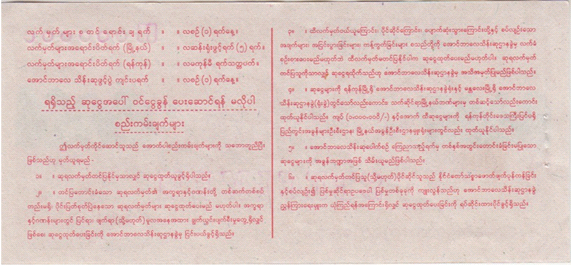 (၁) ကြိမ်မြောက် ကျပ် (၁၀၀၀) တန် အောင်ဘာလေထီလက်မှတ် နမူနာပုံစံကြေညာခြင်း