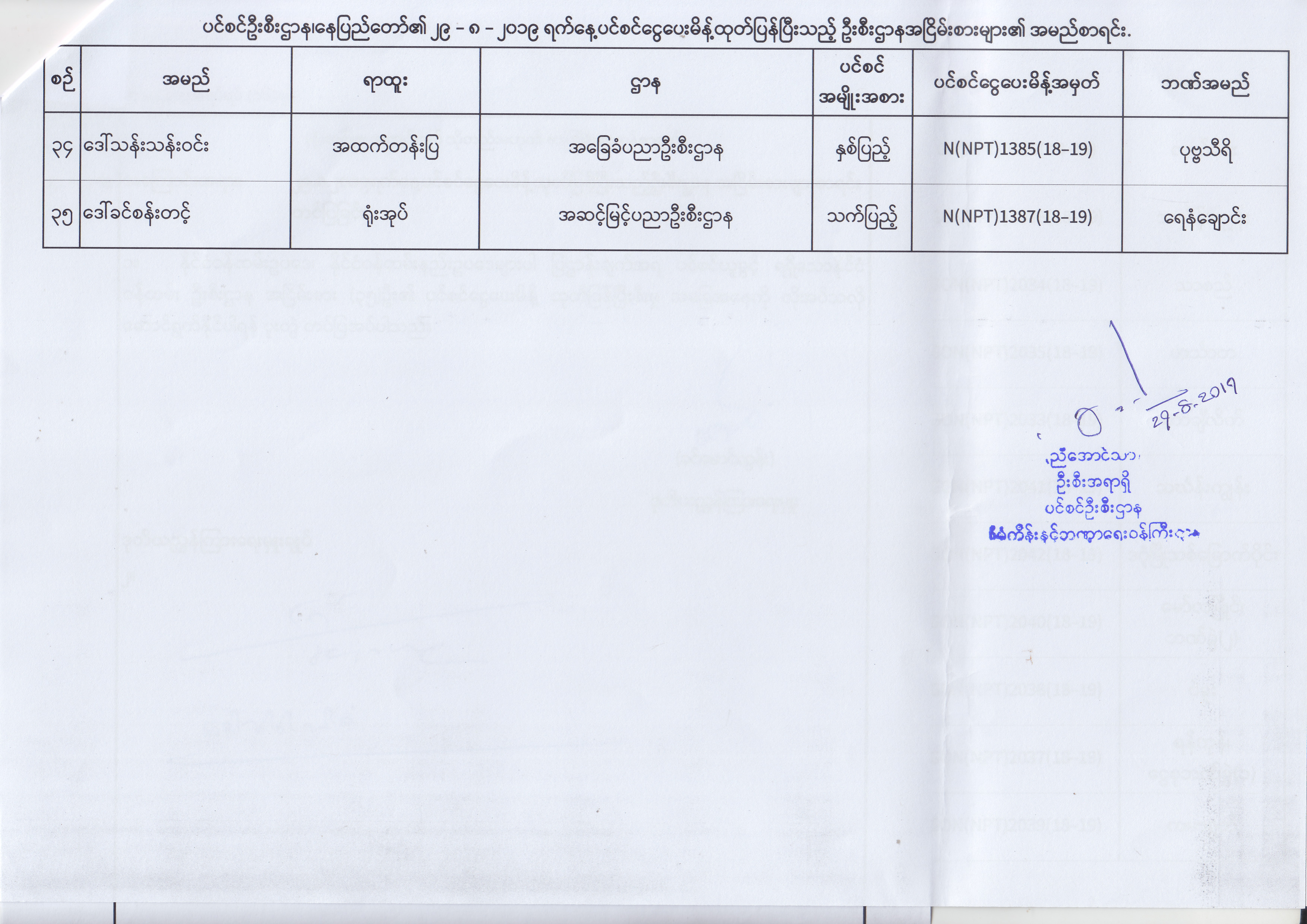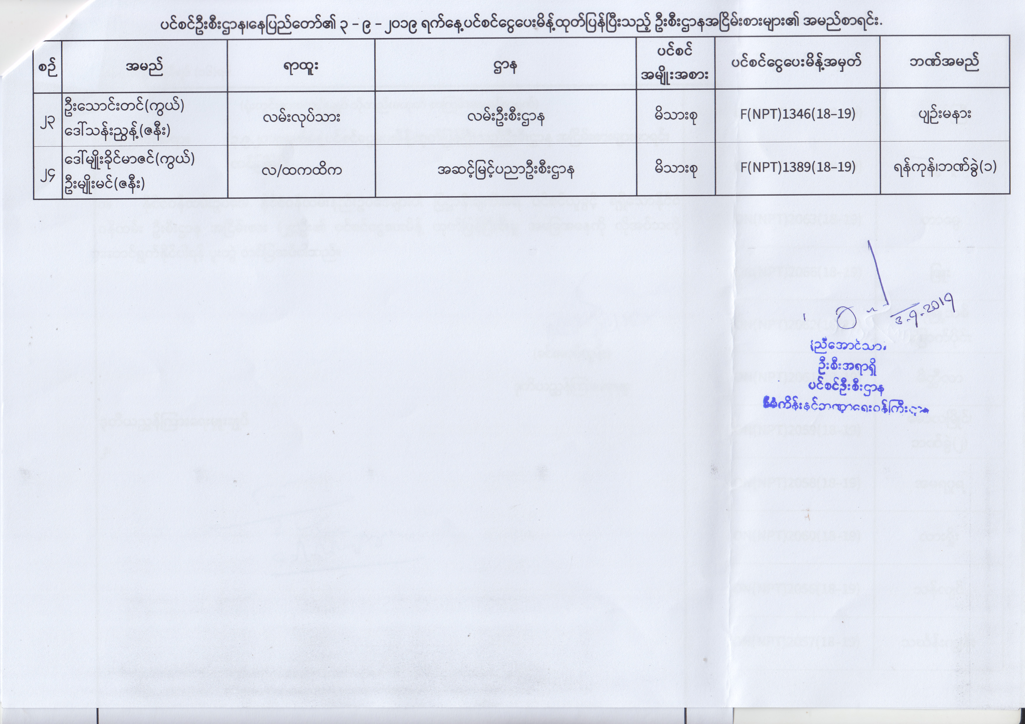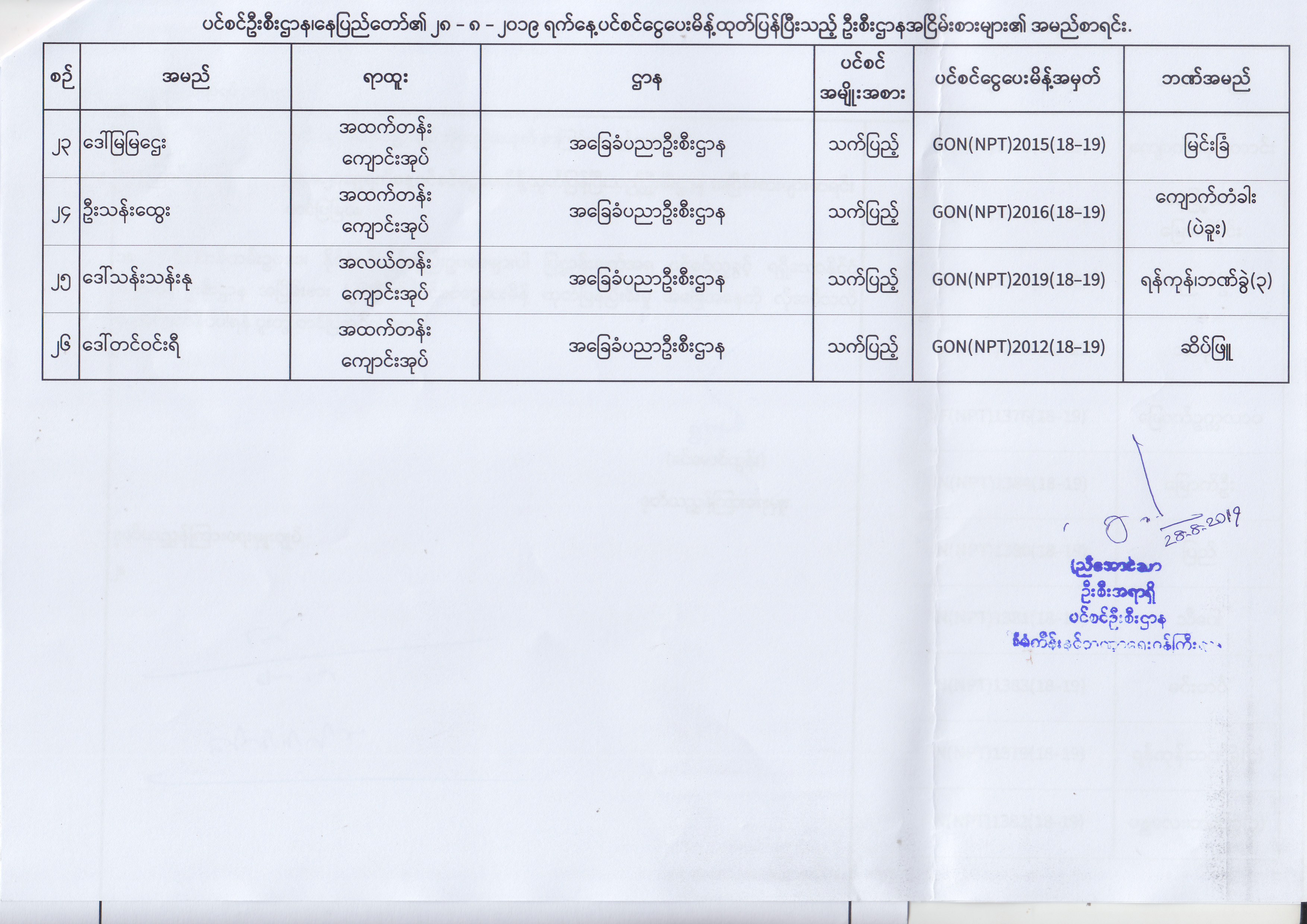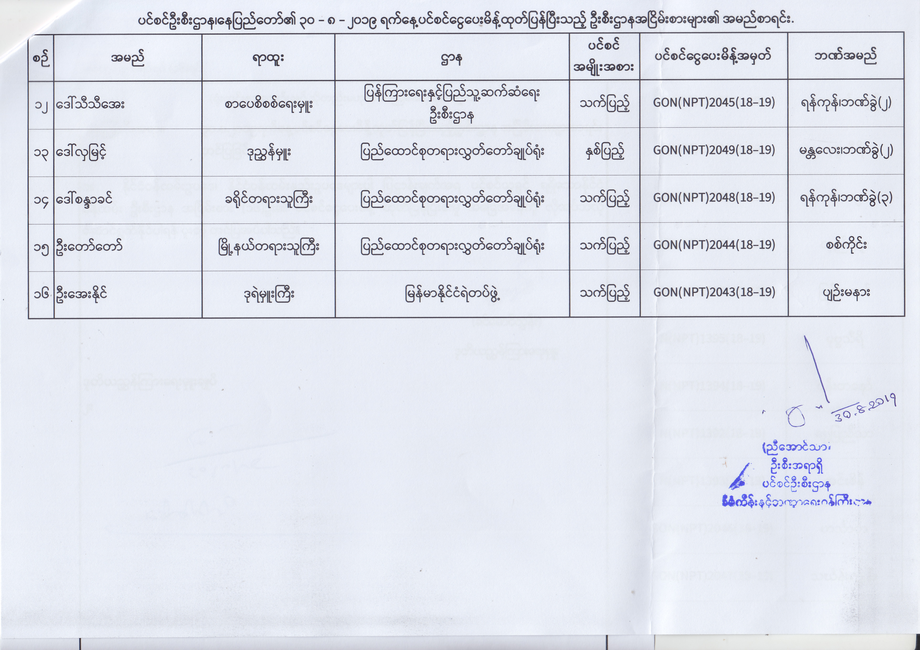 ပင်စင်ဦးစီးဌာန၊ နေပြည်တော်၏ (၂၃.၈.၂၀၁၉) မှ (၅.၉.၂၀၁၉) ရက်နေ့အထိ ပင်စင်ငွေပေးမိန့်ထုတ်ပြန်ပြီးသည့် ဦးစီးဌာနအငြိမ်းစားများ၏ အမည်စာရင်း pdfinance_editor Fri, 09/06/2019 - 14:48