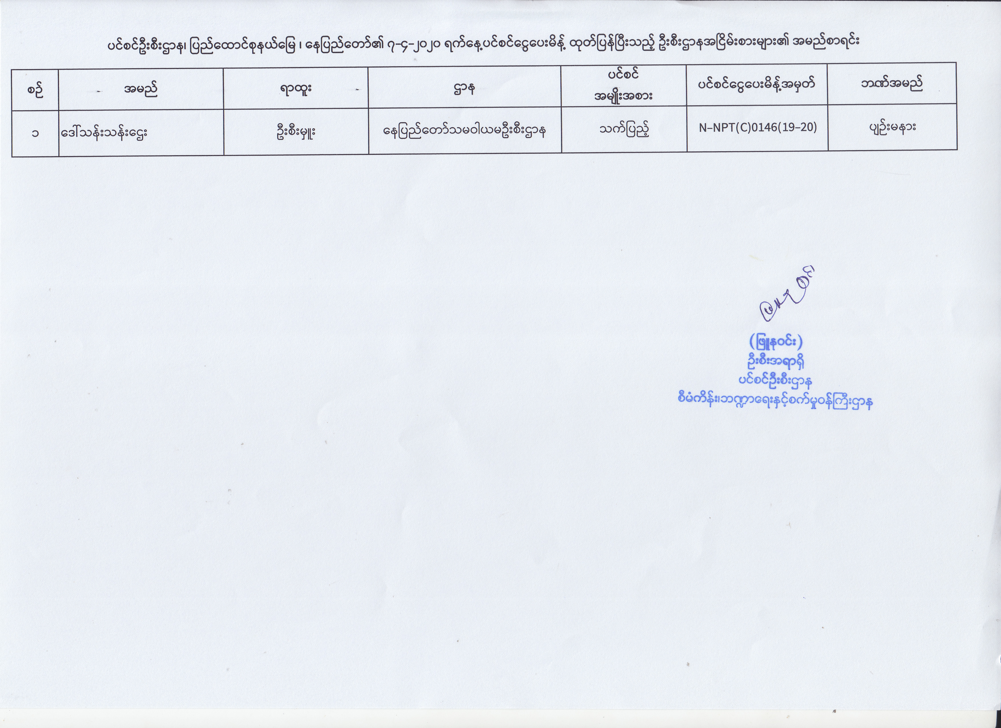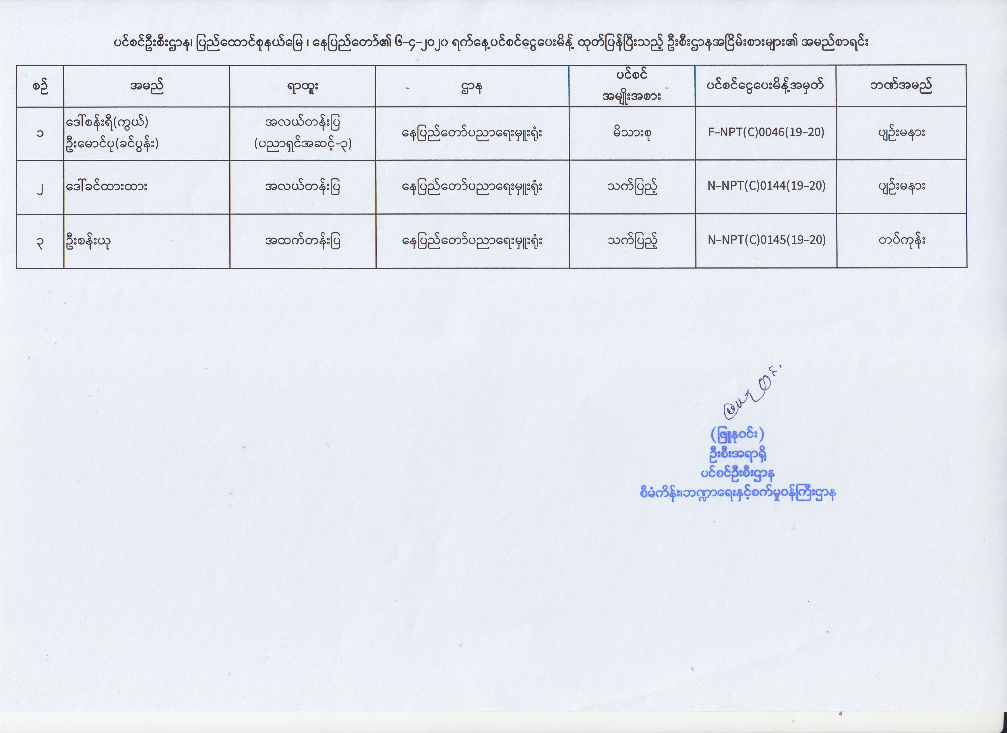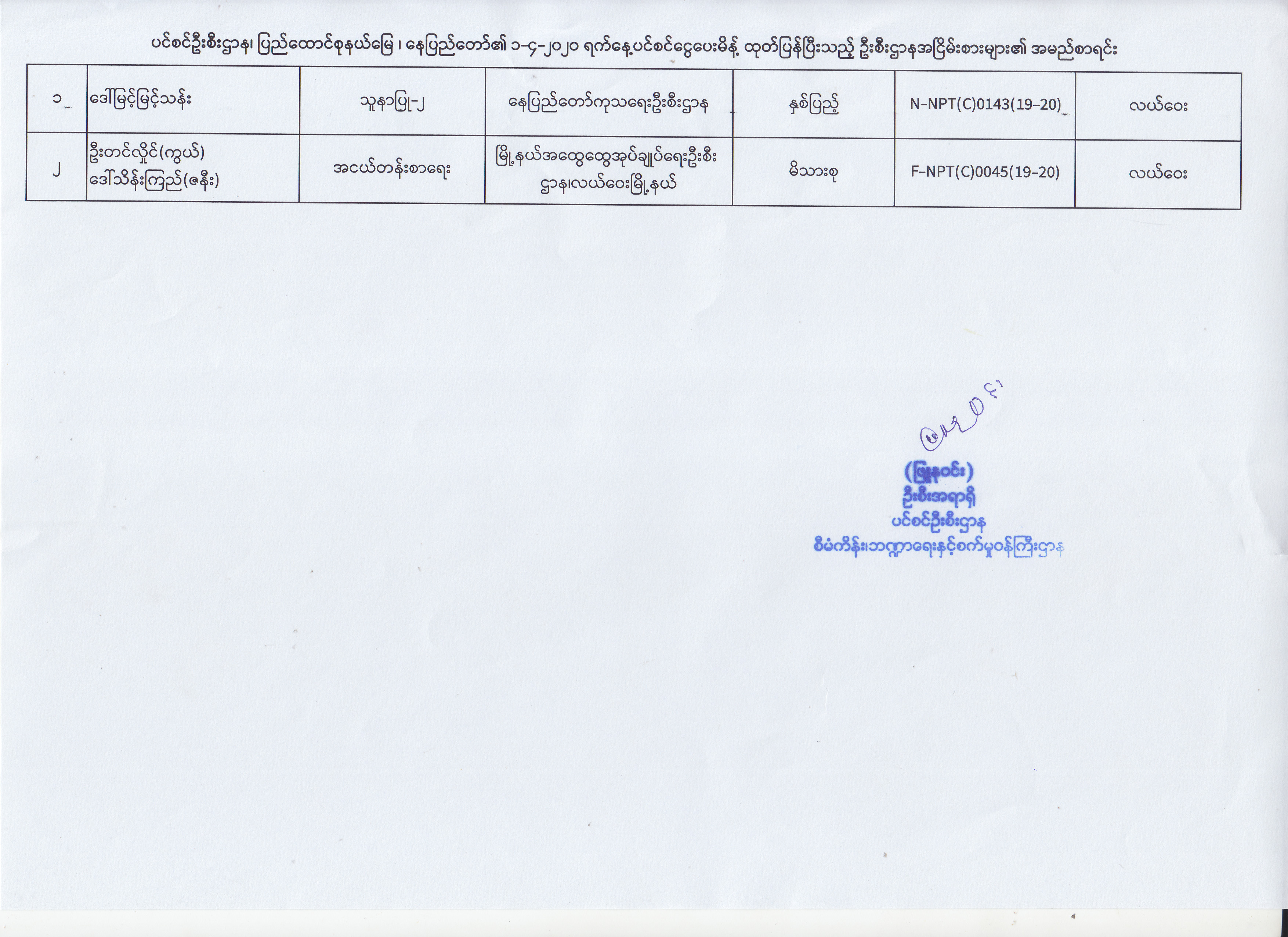 ပင်စင်ဦးစီးဌာန၊ နေပြည်တော်ကောင်စီနယ်မြေ၏ (၁.၄.၂၀၂၀) မှ (၇.၄.၂၀၂၀) ရက်နေ့အထိ ပင်စင်ငွေပေးမိန့်ထုတ်ပြန်ပြီးသည့် ဦးစီးဌာန အငြိမ်းစားများ၏ အမည်စာရင်း pdfinance_editor Wed, 04/22/2020 - 14:35