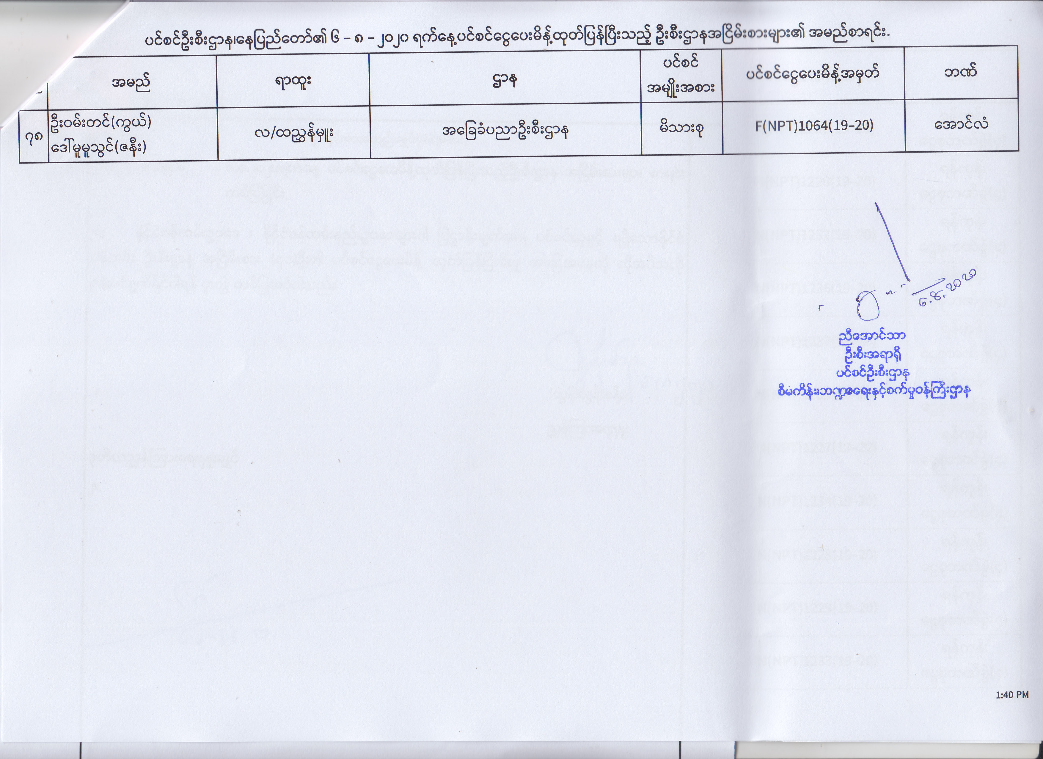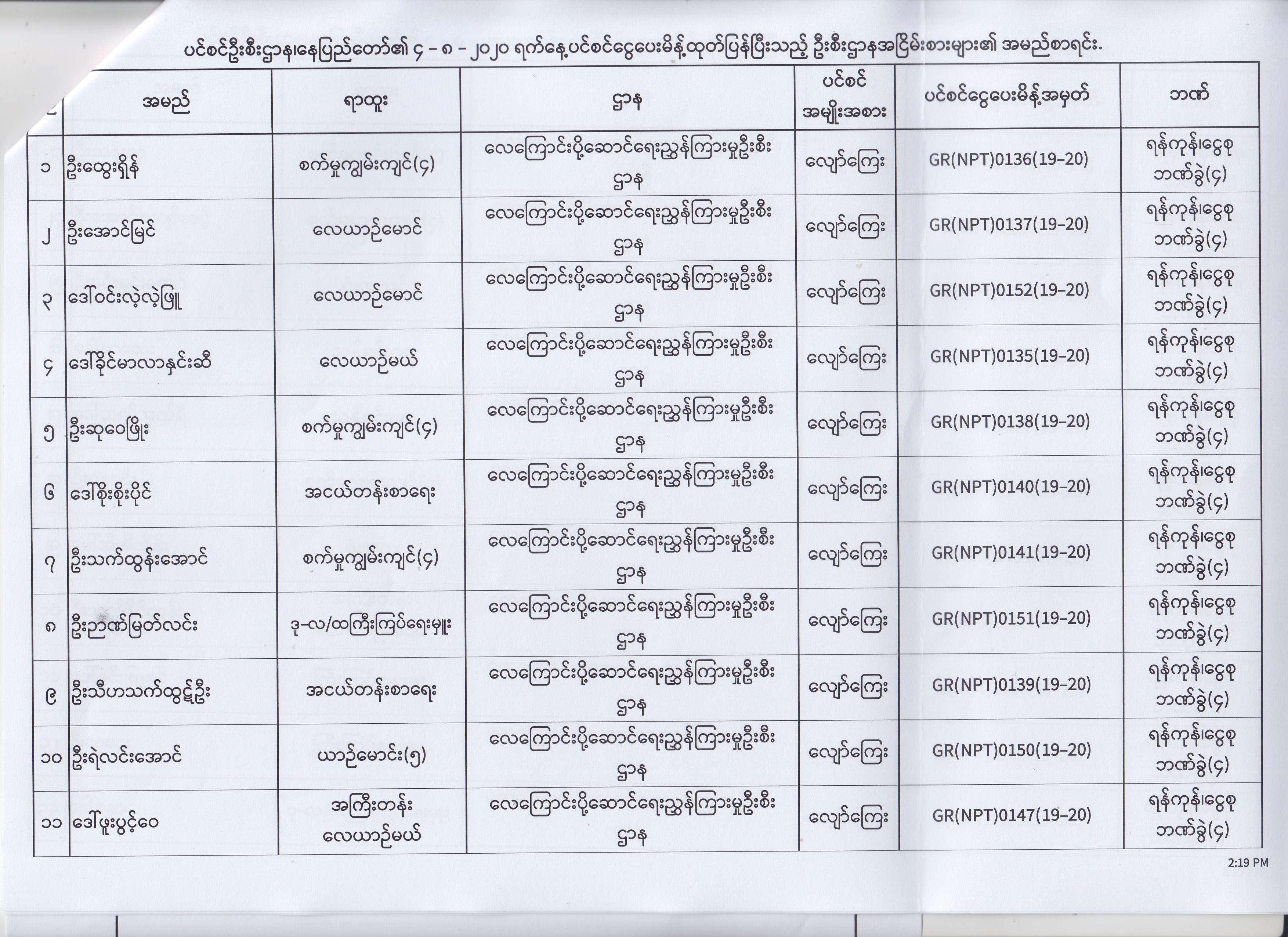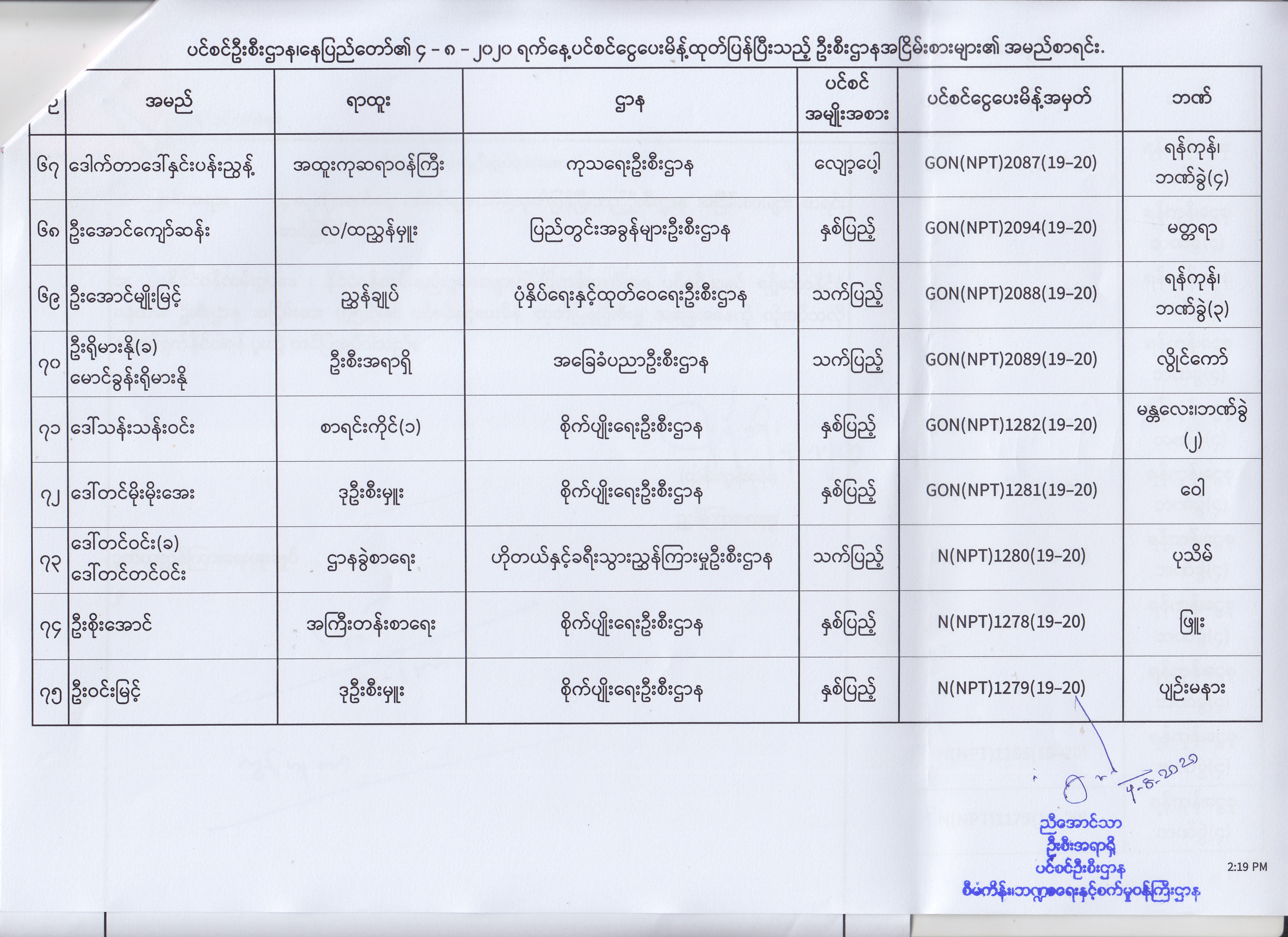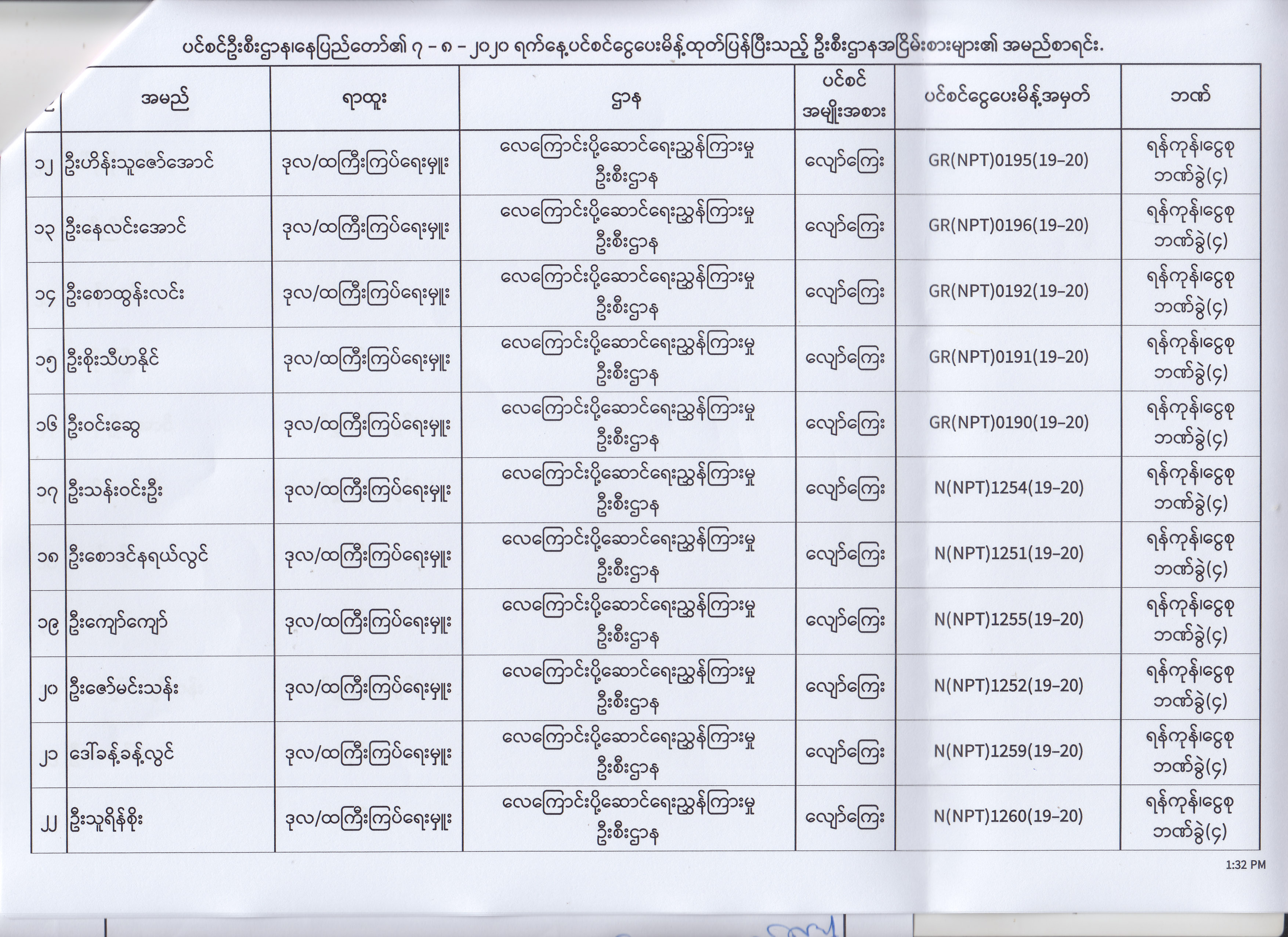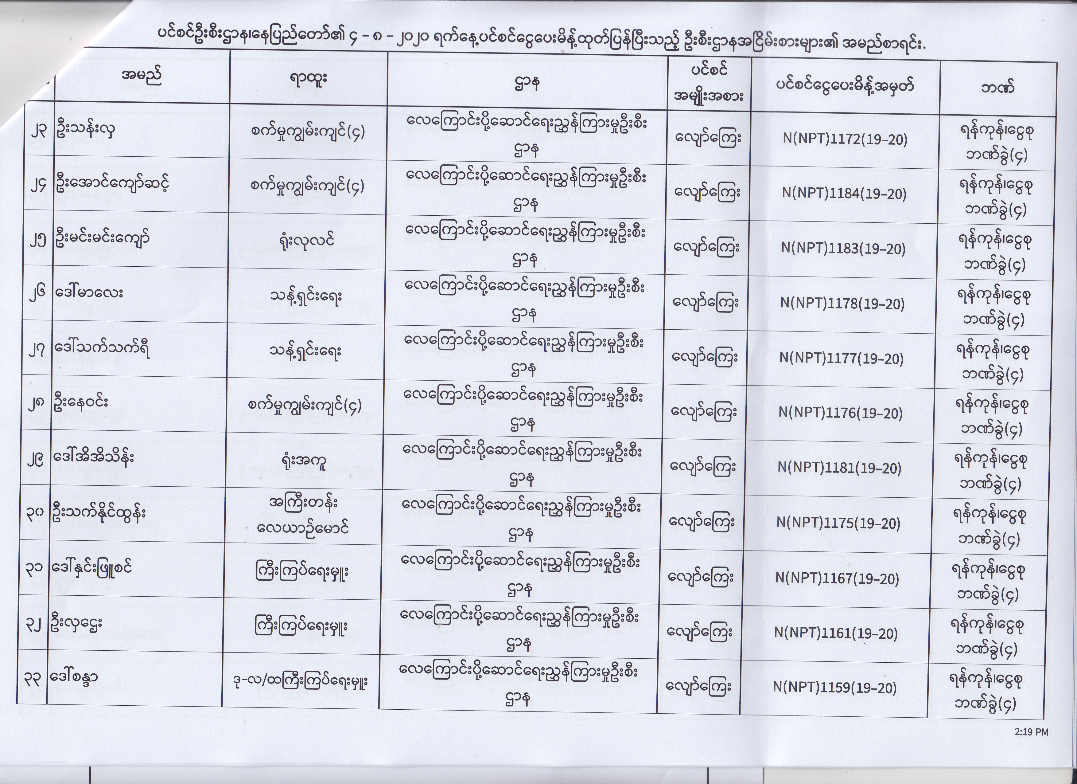 ပင်စင်ဦးစီးဌာန၊ နေပြည်တော်၏ (၄.၈.၂၀၂၀) မှ (၇.၈.၂၀၂၀) ရက်နေ့အထိ ပင်စင်ငွေပေးမိန့်ထုတ်ပြန်ပြီးသည့် ဦးစီးဌာနအငြိမ်းစားများ၏ အမည်စာရင်း pdfinance_editor Mon, 08/24/2020 - 11:34