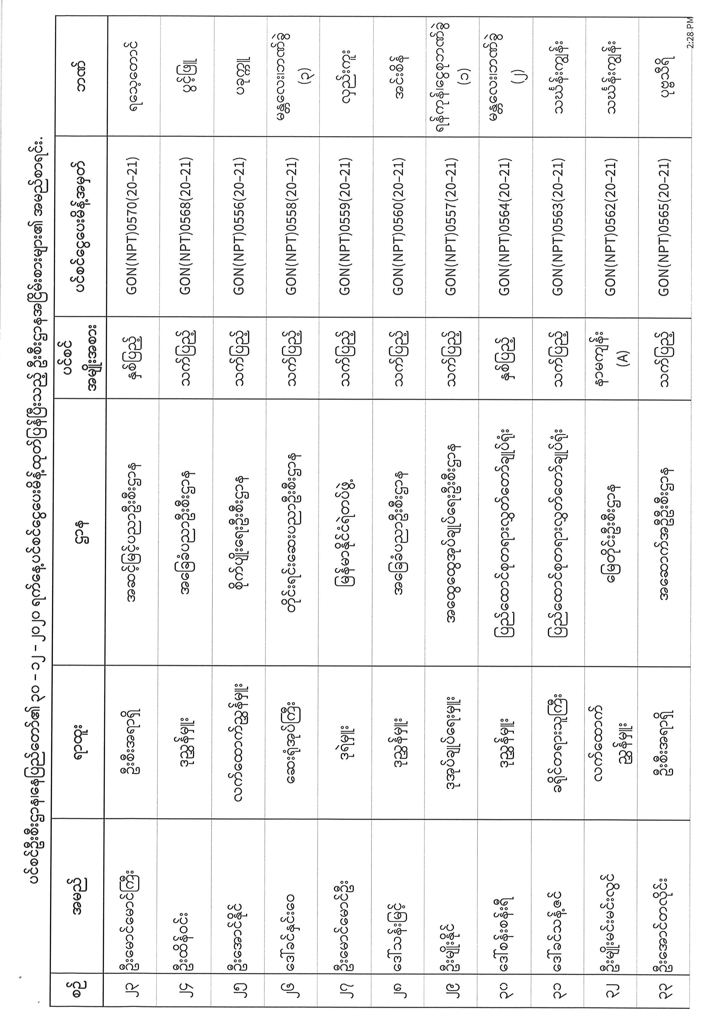 ပင်စင်ဦးစီးဌာန၊နေပြည်တော်၏ ၂၈-၁၂-၂၀၂၀ မှ ၃၀-၁၂-၂၀၂၀ နေ့အထိ ပင်စင်ငွေပေးမိန့်ထုတ်ပြန်ပြီးသည့် ဦးစီးဌာနအငြိမ်းစားများ၏ အမည်စာရင်း