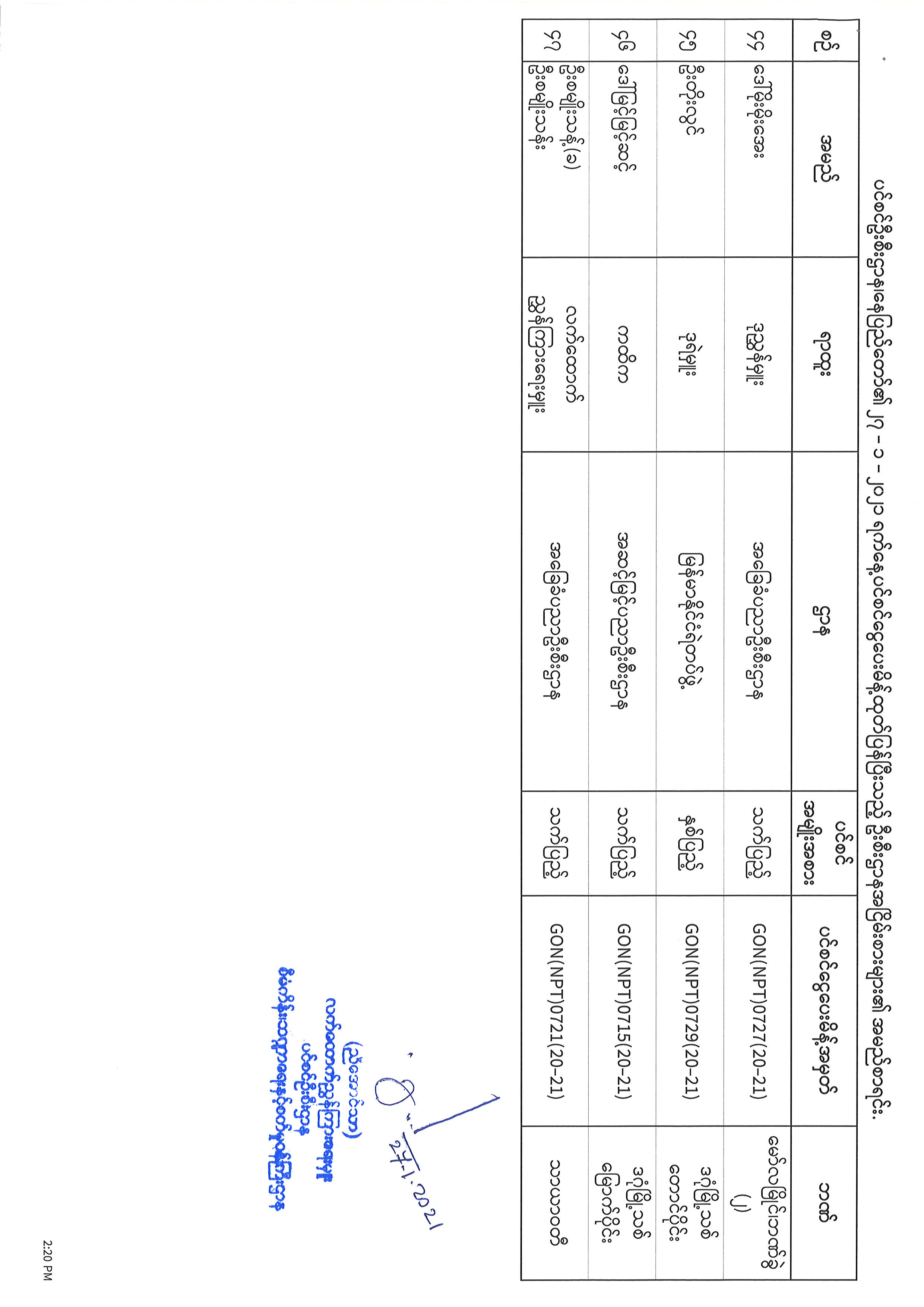 ပင်စင်ဦးစီးဌာန၊နေပြည်တော်၏ ၂၅-၁-၂၀၂၁ မှ ၂၉-၁-၂၀၂၁ နေ့အထိ ပင်စင်ငွေပေးမိန့်ထုတ်ပြန်ပြီးသည့် ဦးစီးဌာနအငြိမ်းစားများ၏ အမည်စာရင်း