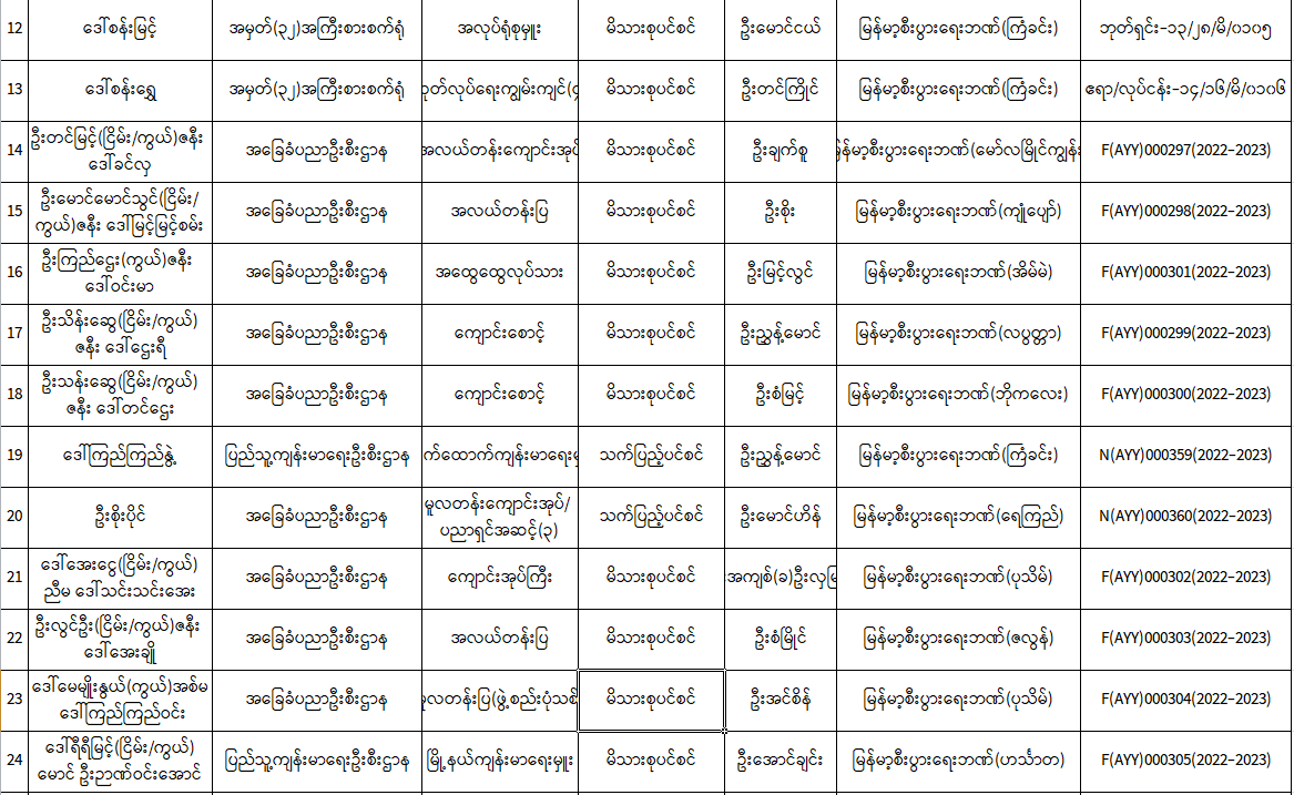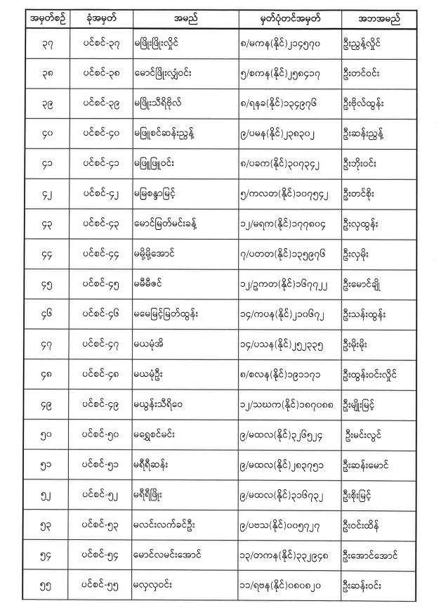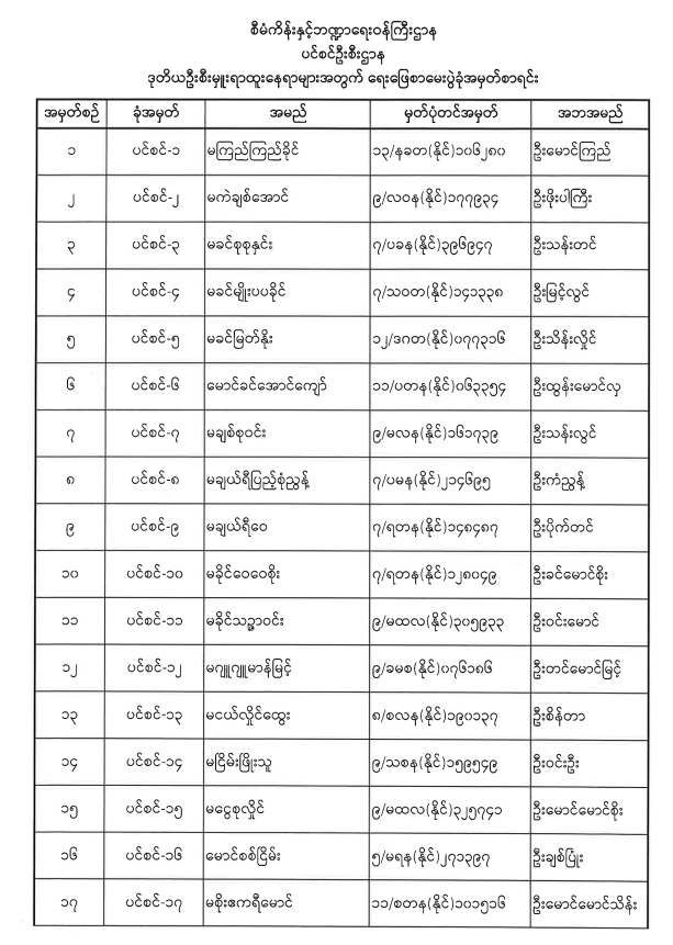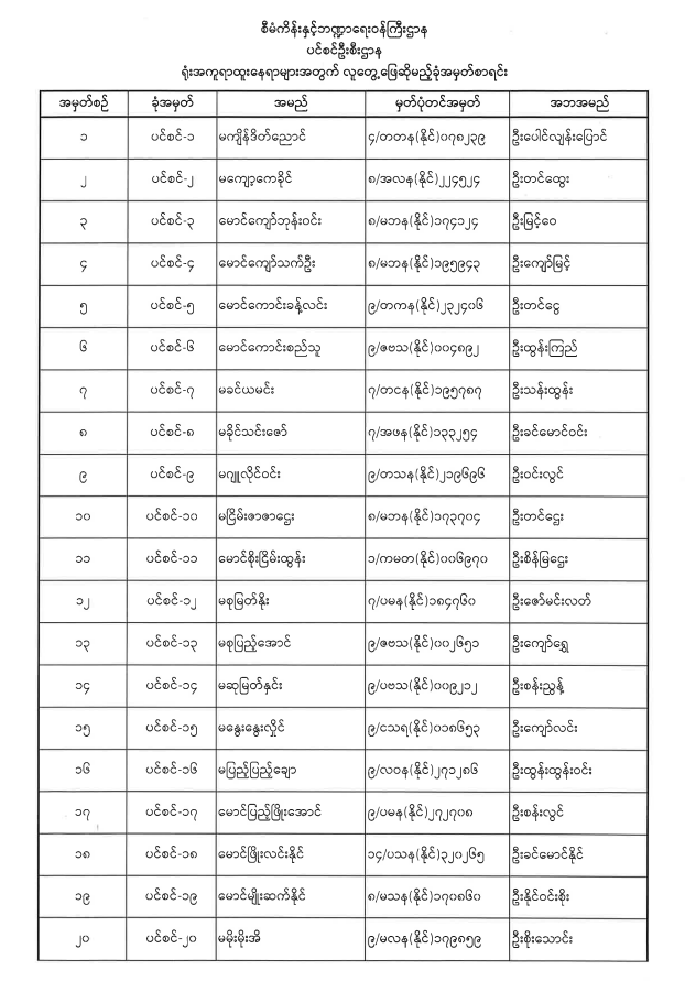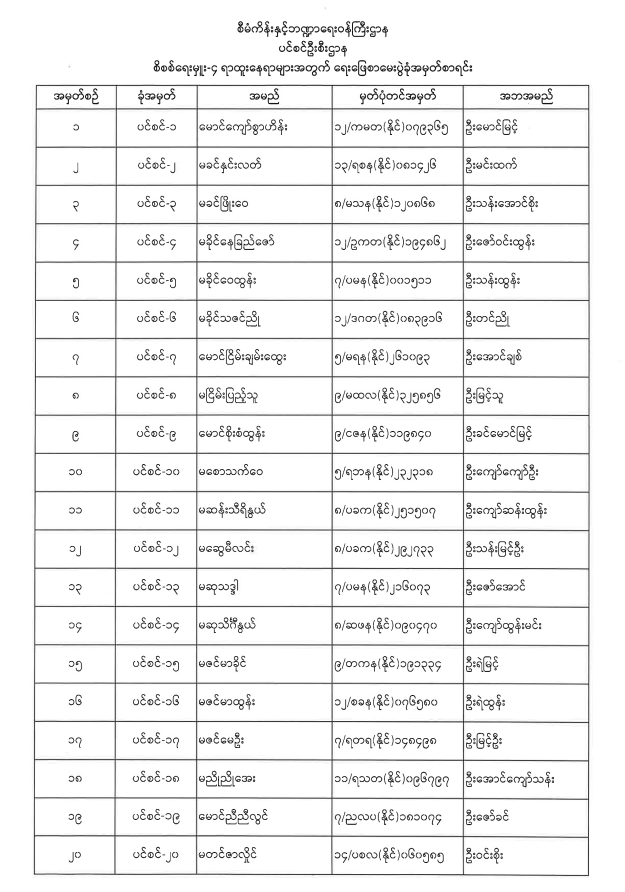 ပင်စင်ဦးစီးဌာနတွင် လစ်လပ်လျက်ရှိသော အမှုထမ်းနေရာများအတွက် ရေးဖြေစာမေးပွဲကျင်းပမည့်နေ့ရက်၊ ဖြေဆိုခွင့်ကတ်ပြားထုတ်ယူရမည့် နေ့ရက်နှင့် ဖြေဆိုခွင့်ရရှိသူစာရင်း အသိပေးကြေညာချက် pdfinance_editor Wed, 12/22/2021 - 09:46