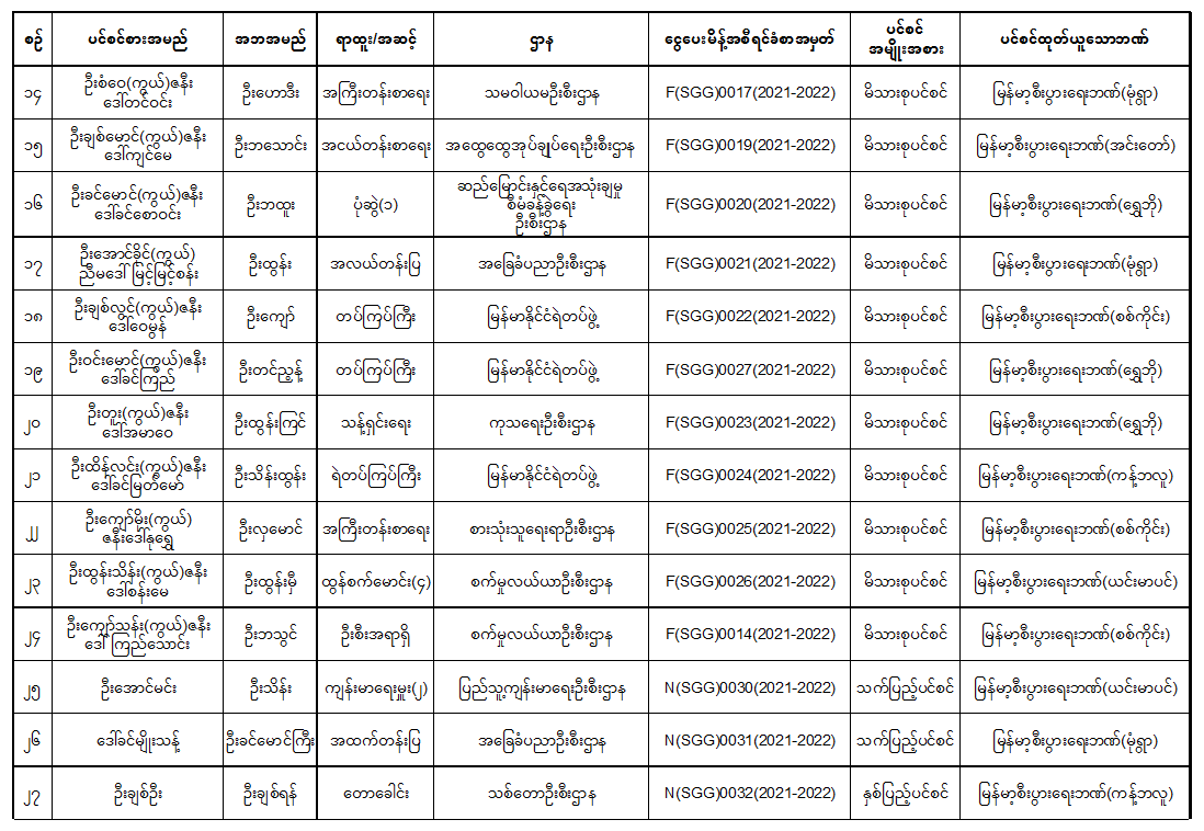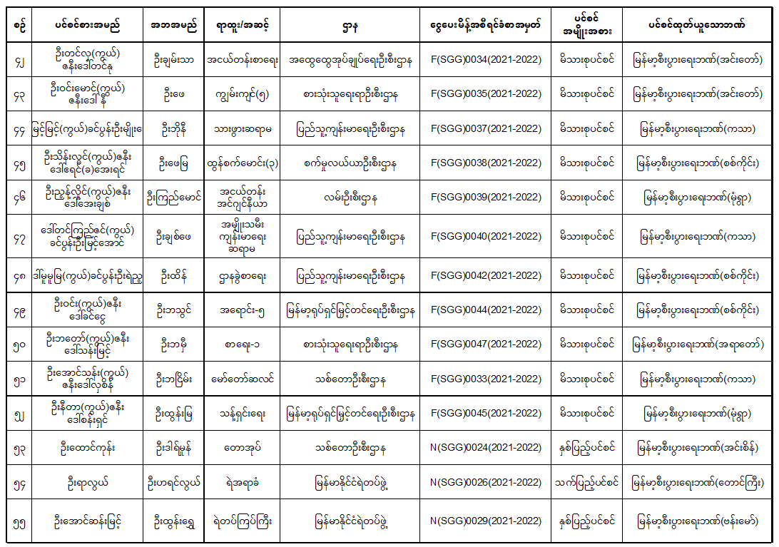 ပင်စင်ဦးစီးဌာန၊ စစ်ကိုင်းတိုင်းဒေသကြီးဦးစီးမှူးရုံး၏ ငွေပေးမိန့်ထုတ်ပြန်မှုစာရင်း (၈-၁-၂၀၂၂ မှ ၂၁-၁-၂၀၂၂) pdfinance_editor Thu, 02/03/2022 - 15:25