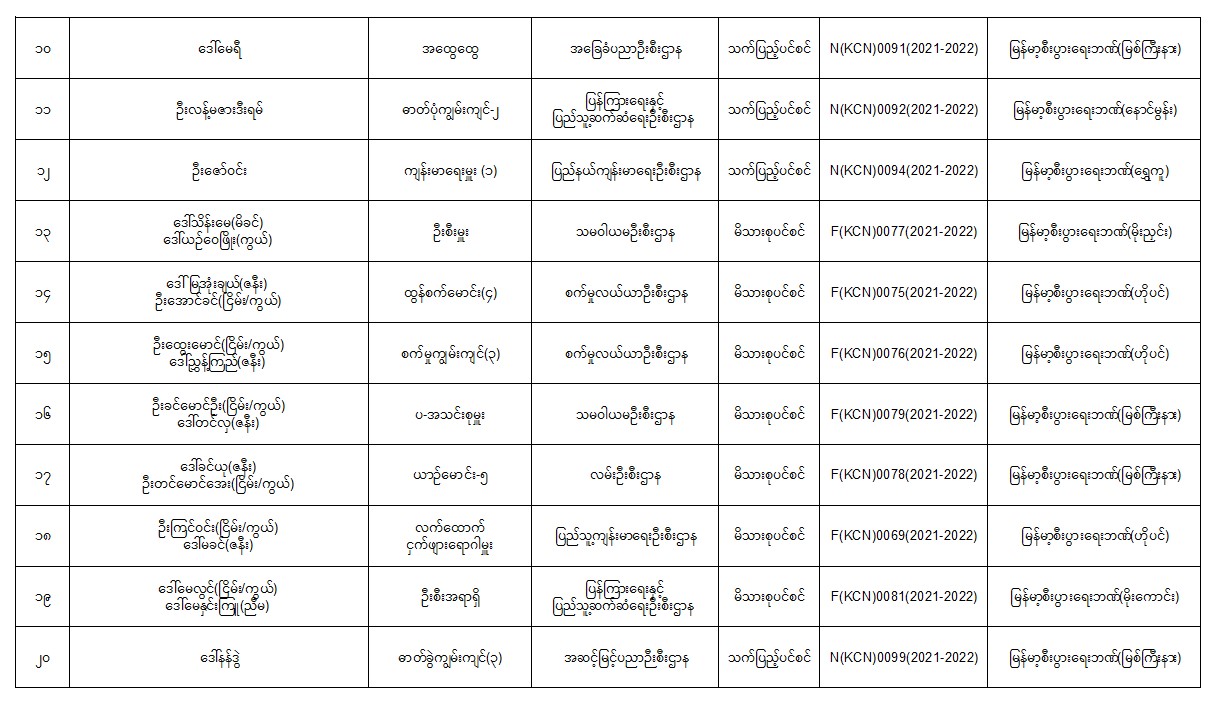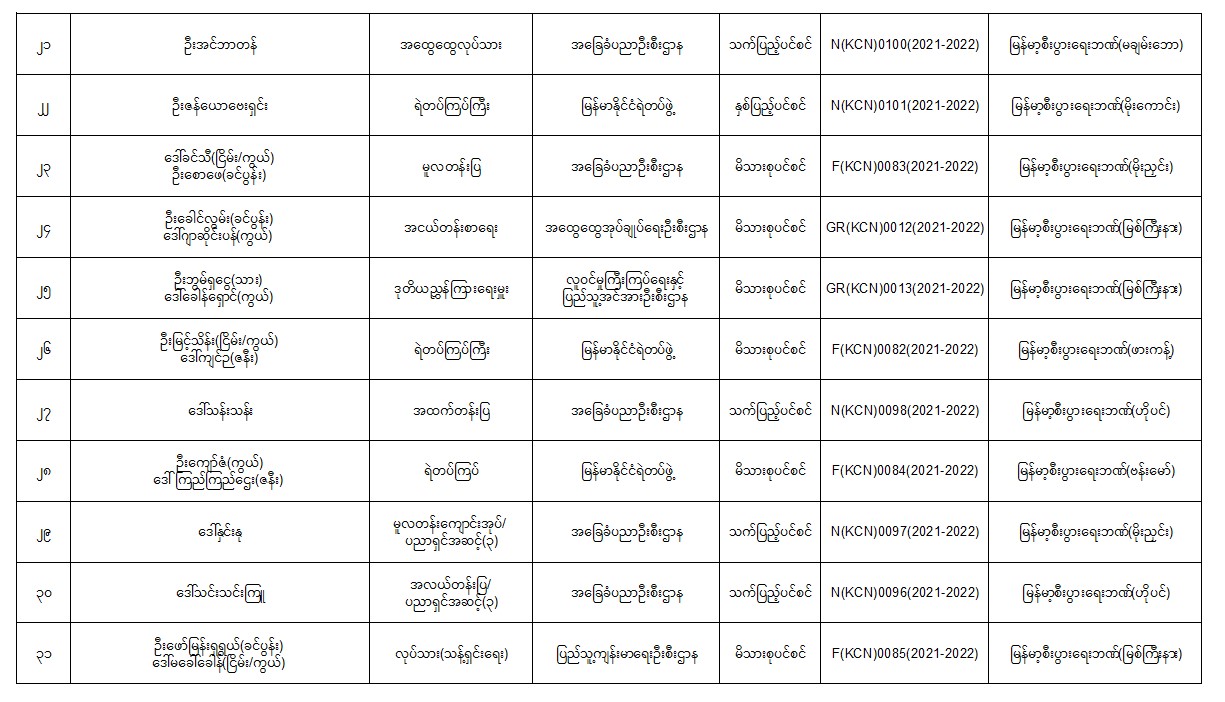 ပင်စင်ဦးစီးဌာန၊ ကချင်ပြည်နယ်ဦးစီးမှူးရုံး၏ ငွေပေးမိန့်ထုတ်ပြန်မှုစာရင်း ဖေဖော်ဝါရီလ(ပထမပတ်၊ ဒုတိယပတ်၊ တတိယပတ်အတွင်း) pdfinance_editor Wed, 02/16/2022 - 15:50