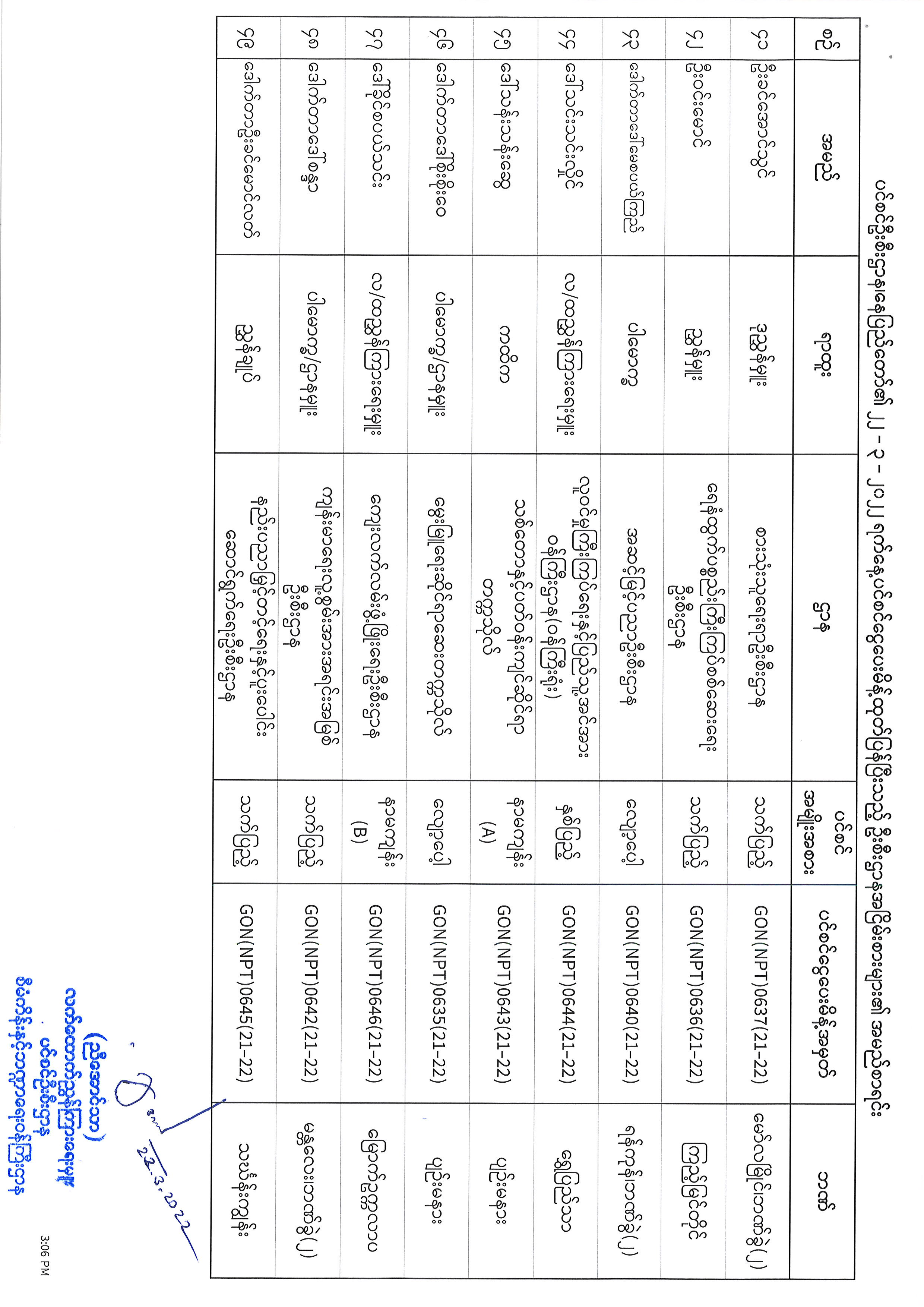 ပင်စင်ဦးစီးဌာန၊ နေပြည်တော်၏ ငွေပေးမိန့်ထုတ်ပြန်မှုစာရင်း (၂၂-၃-၂၀၂၂)