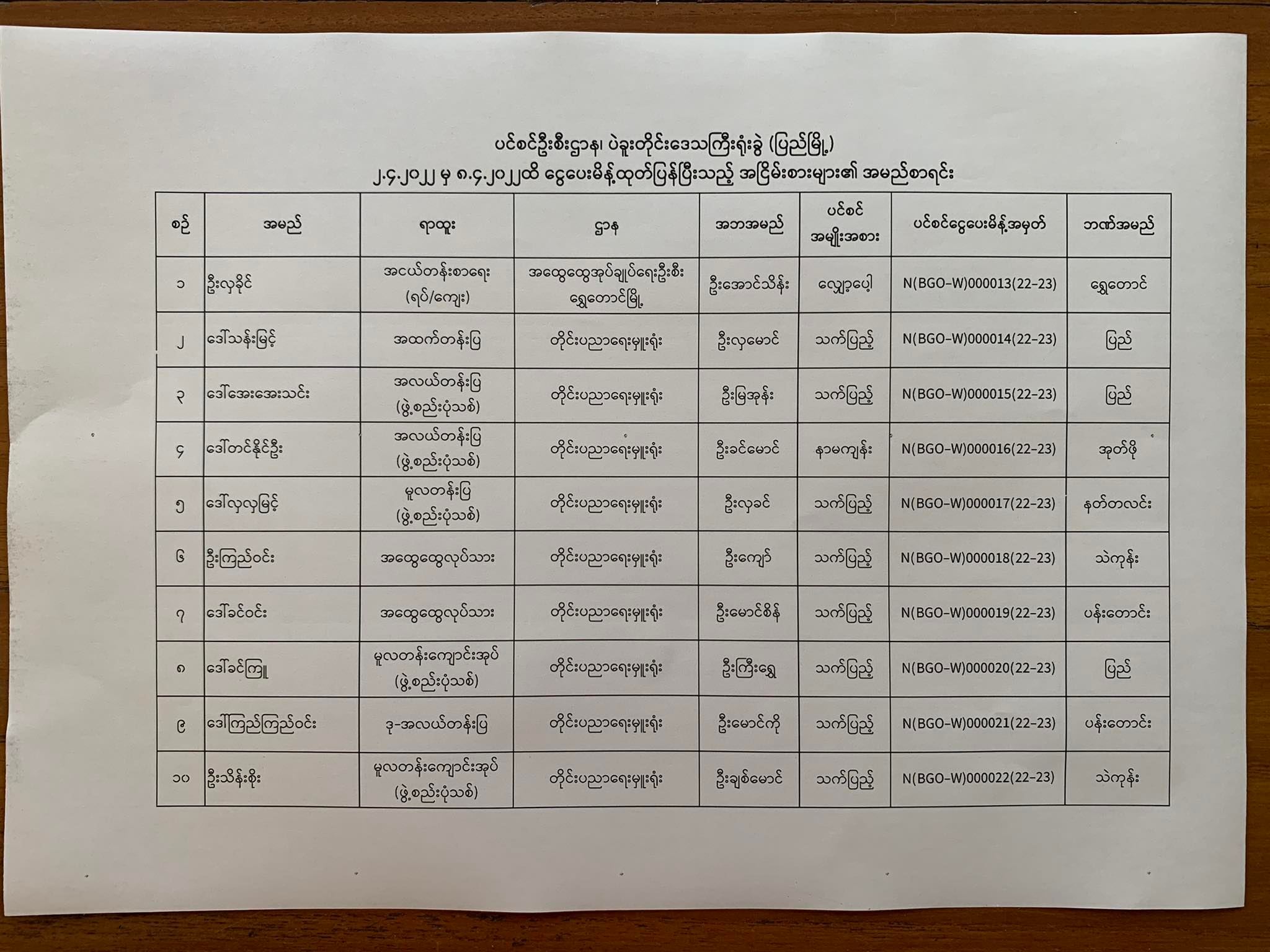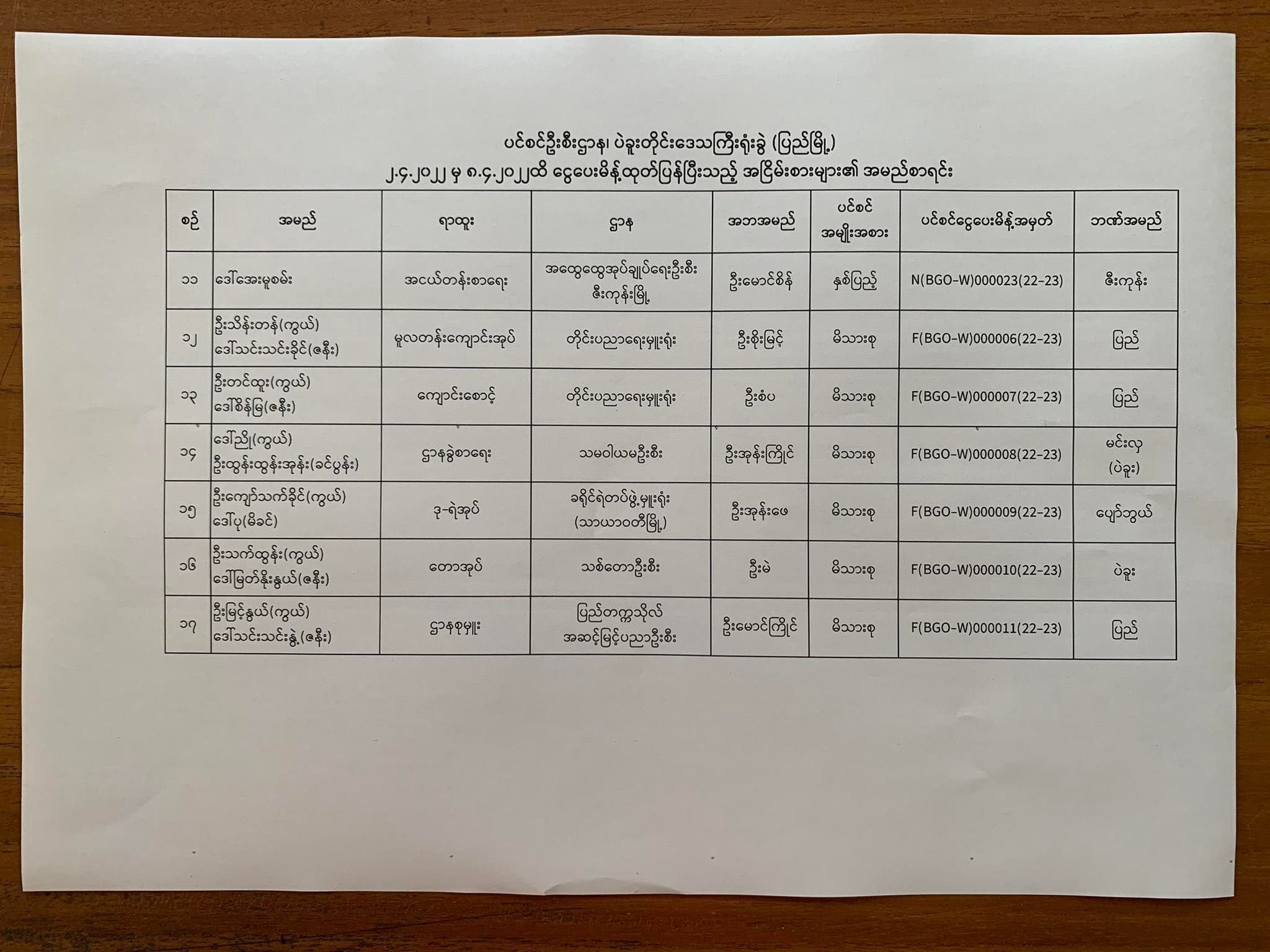 ပင်စင်ဦးစီးဌာန၊ ပဲခူးတိုင်းရုံးခွဲ(ပြည်မြို့)၏ ငွေပေးမိန့်ထုတ်ပြန်မှုစာရင်း (၂-၄-၂၀၂၂ မှ ၈-၄-၂၀၂၂) pdfinance_editor Thu, 04/07/2022 - 16:13