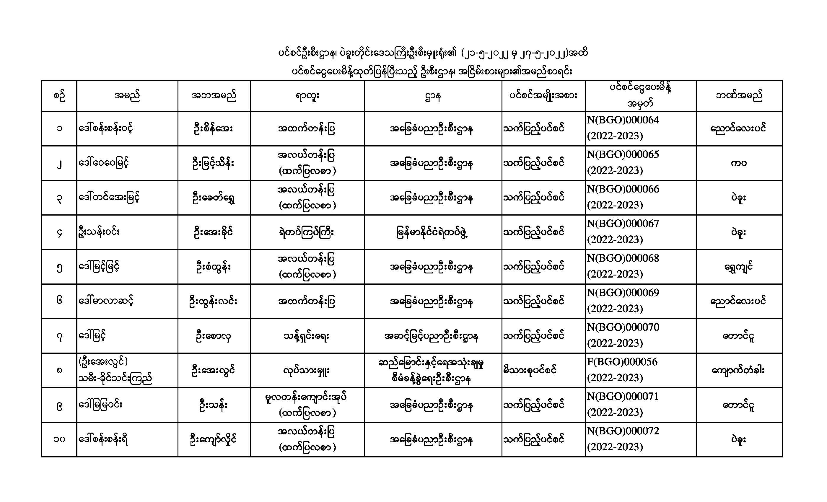 ပင်စင်ဦးစီးဌာန၊ ပဲခူးတိုင်းဒေသကြီးဦးစီးမှူးရုံး၏ ငွေပေးမိန့်ထုတ်ပြန်မှုစာရင်း (၂၁-၅-၂၀၂၂ မှ ၂၇-၅-၂၀၂၂)