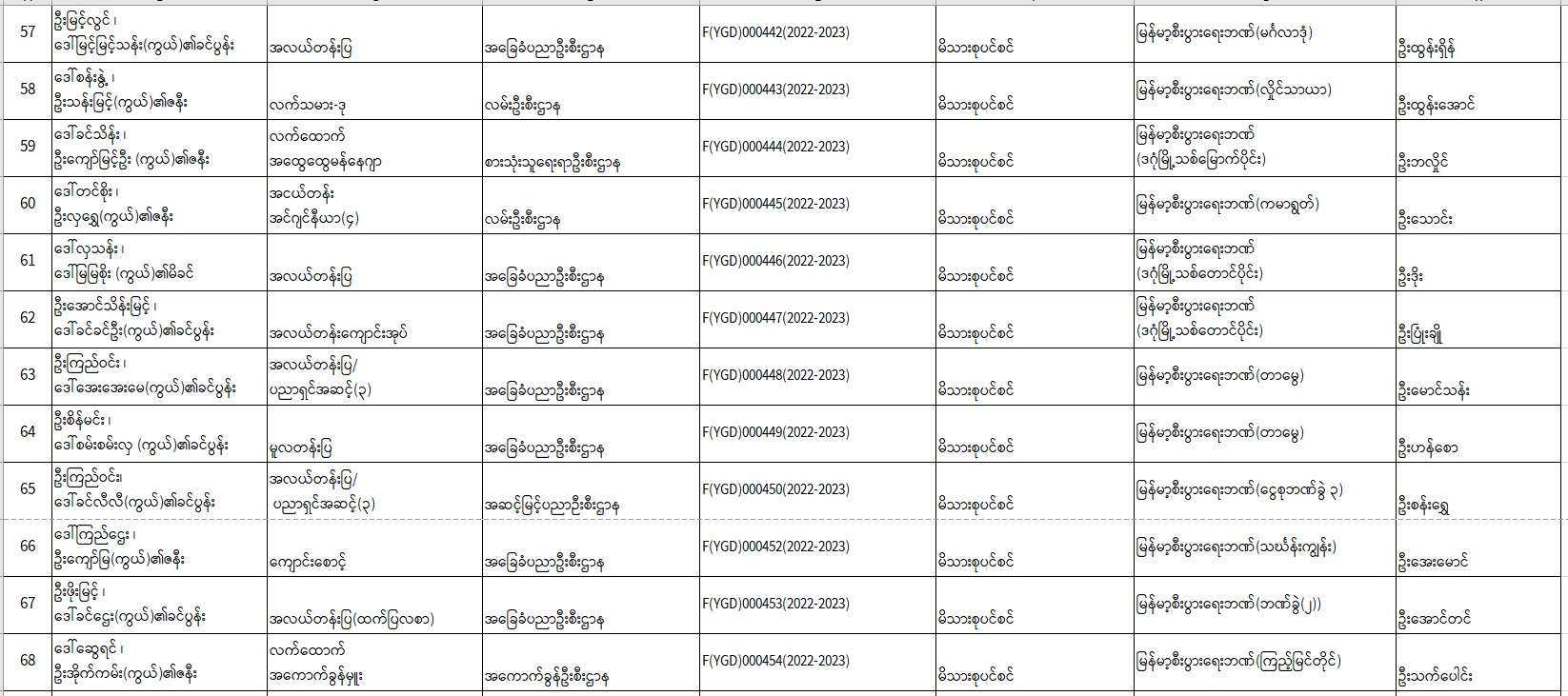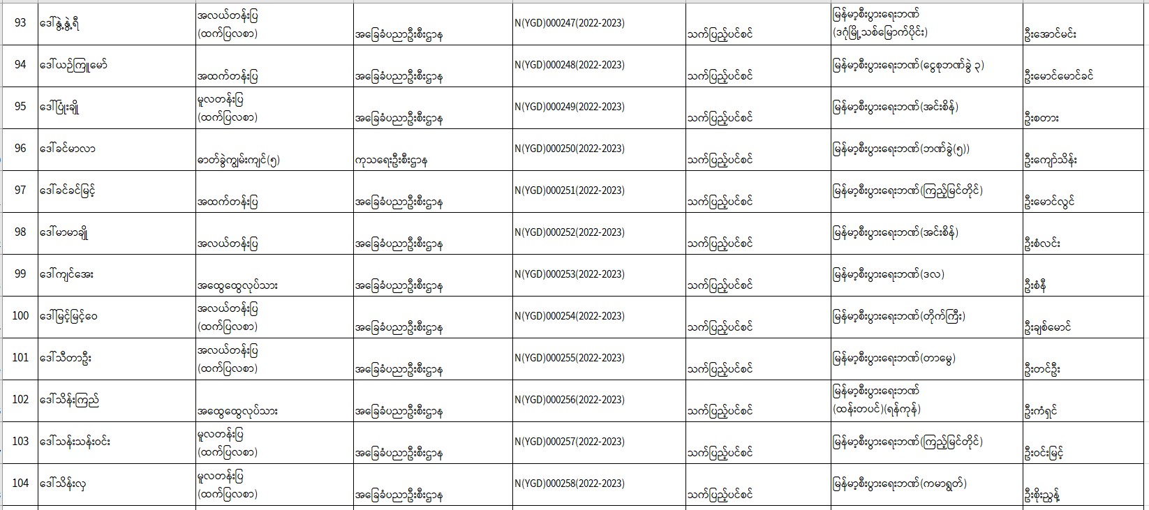 ပင်စင်ဦးစီးဌာန၊ ရန်ကုန်တိုင်းဒေသကြီးဦးစီးမှူးရုံး၏ ငွေပေးမိန့်ထုတ်ပြန်မှုစာရင်း (၁-၆-၂၀၂၂ မှ ၁၅-၆-၂၀၂၂) pdfinance_editor Thu, 06/16/2022 - 12:31