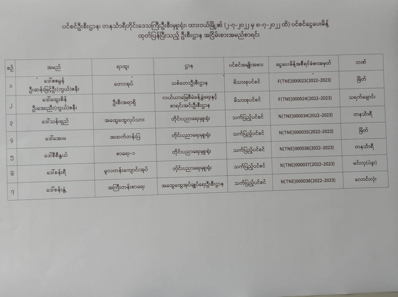 ပင်စင်ဦးစီးဌာန၊ တနင်္သာရီတိုင်းဒေသကြီးဦးစီးမှူးရုံး၏ ငွေပေးမိန့်ထုတ်ပြန်မှုစာရင်း (၂-၇-၂၀၂၂ မှ ၈-၇-၂၀၂၂) pdfinance_editor Thu, 07/07/2022 - 16:13