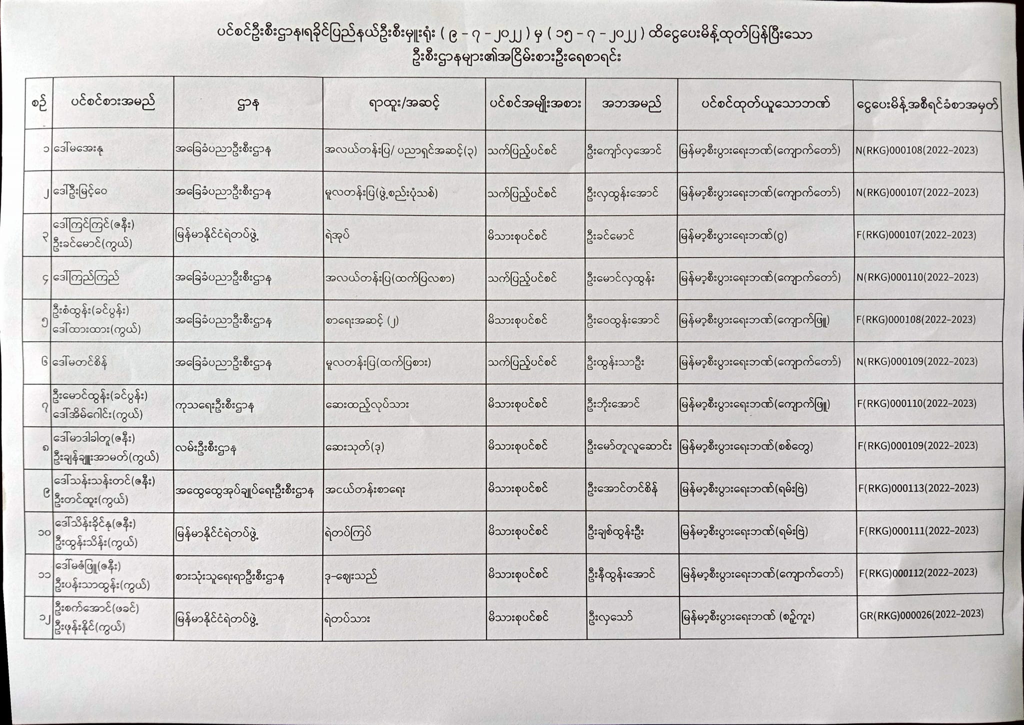 ပင်စင်ဦးစီးဌာန၊ရခိုင်ပြည်နယ်၏ငွေပေးမိန့်ထုတ်ပြန်မှုစာရင်း(၉-၇-၂၀၂၂ မှ ၁၅-၇-၂၀၂၂)