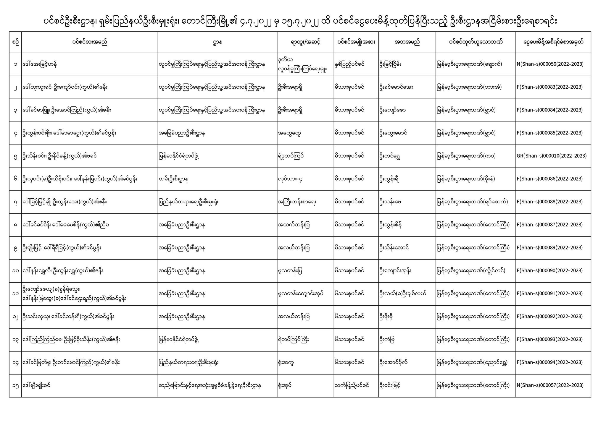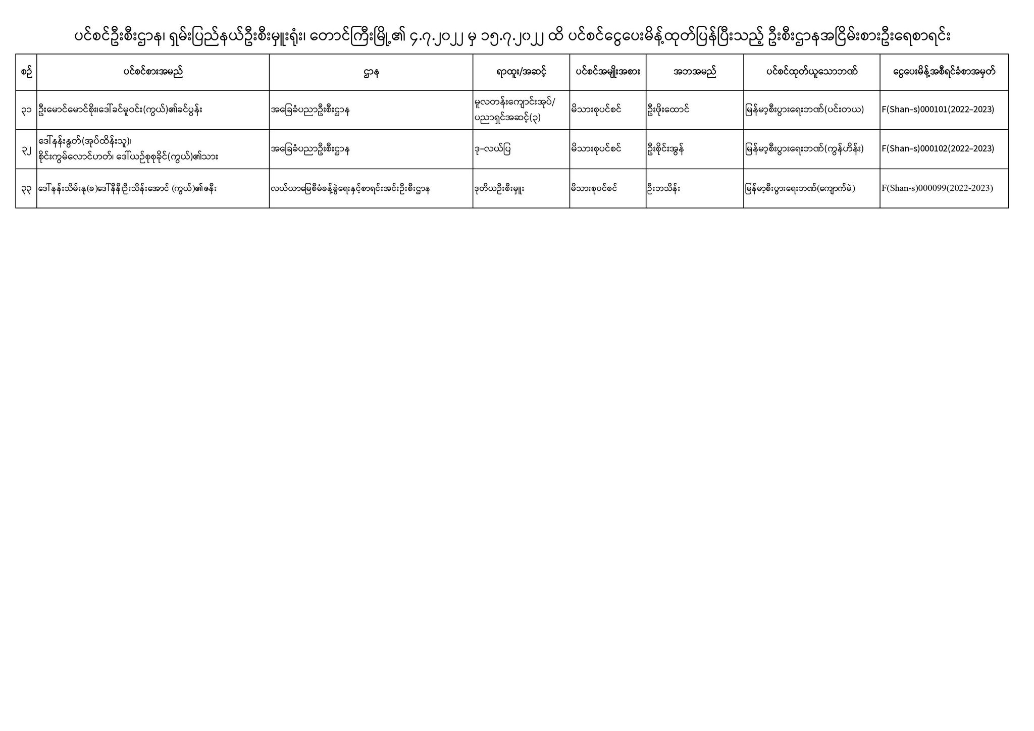 ပင်စင်ဦးစီးဌာန၊ရှမ်းပြည်နယ်(လားရှိုးမြို့)၏ငွေပေးမိန့်ထုတ်ပြန်မှုစာရင်း(၄-၇-၂၀၂၂မှ၁၅-၇-၂၀၂၂) pdfinance_editor Fri, 07/15/2022 - 15:49