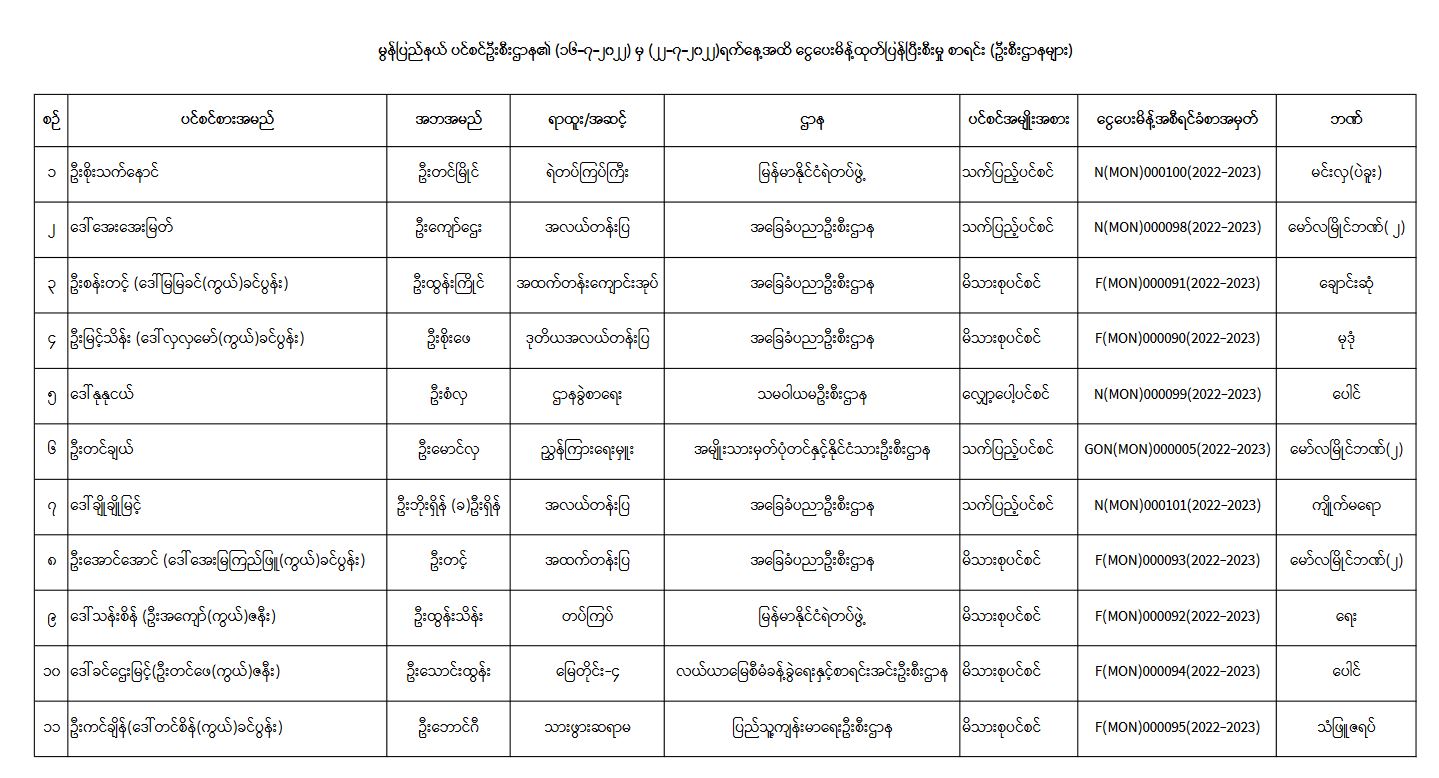 ပင်စင်ဦးစီးဌာန၊ မွန်ပြည်နယ်ဦးစီးမှူးရုံး၏ ငွေပေးမိန့်ထုတ်ပြန်မှုစာရင်း (၁၆-၇-၂၀၂၂ မှ ၂၂-၇-၂၀၂၂) pdfinance_editor Wed, 07/27/2022 - 16:24