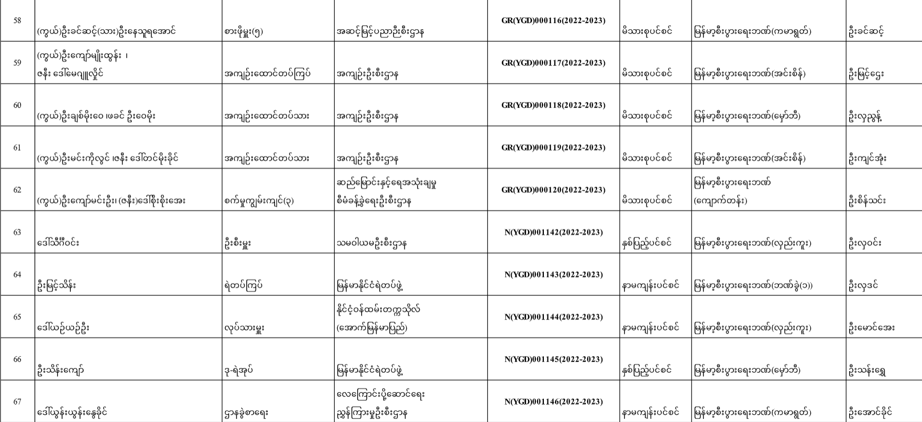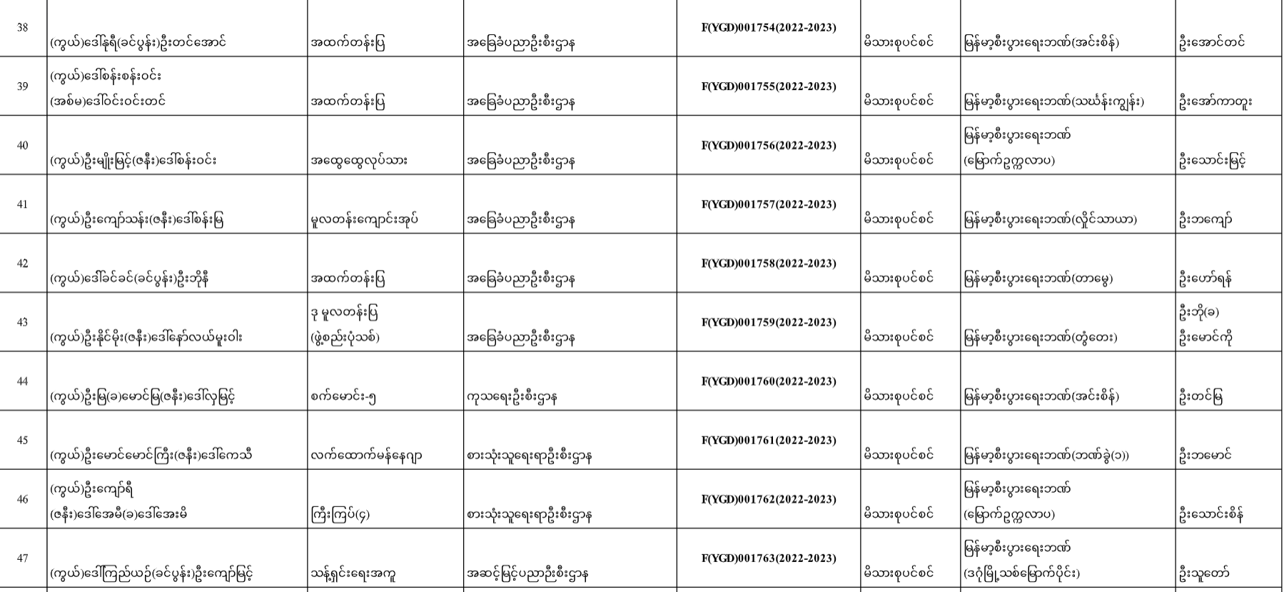ပင်စင်ဦးစီးဌာန၊ရန်ကုန်တိုင်းဒေသကြီး၏ငွေပေးမိန့်ထုတ်ပြန်မှုစာရင်း(၁၇-၁၂-၂၀၂၂ မှ ၃၀-၁၂-၂၀၂၂)