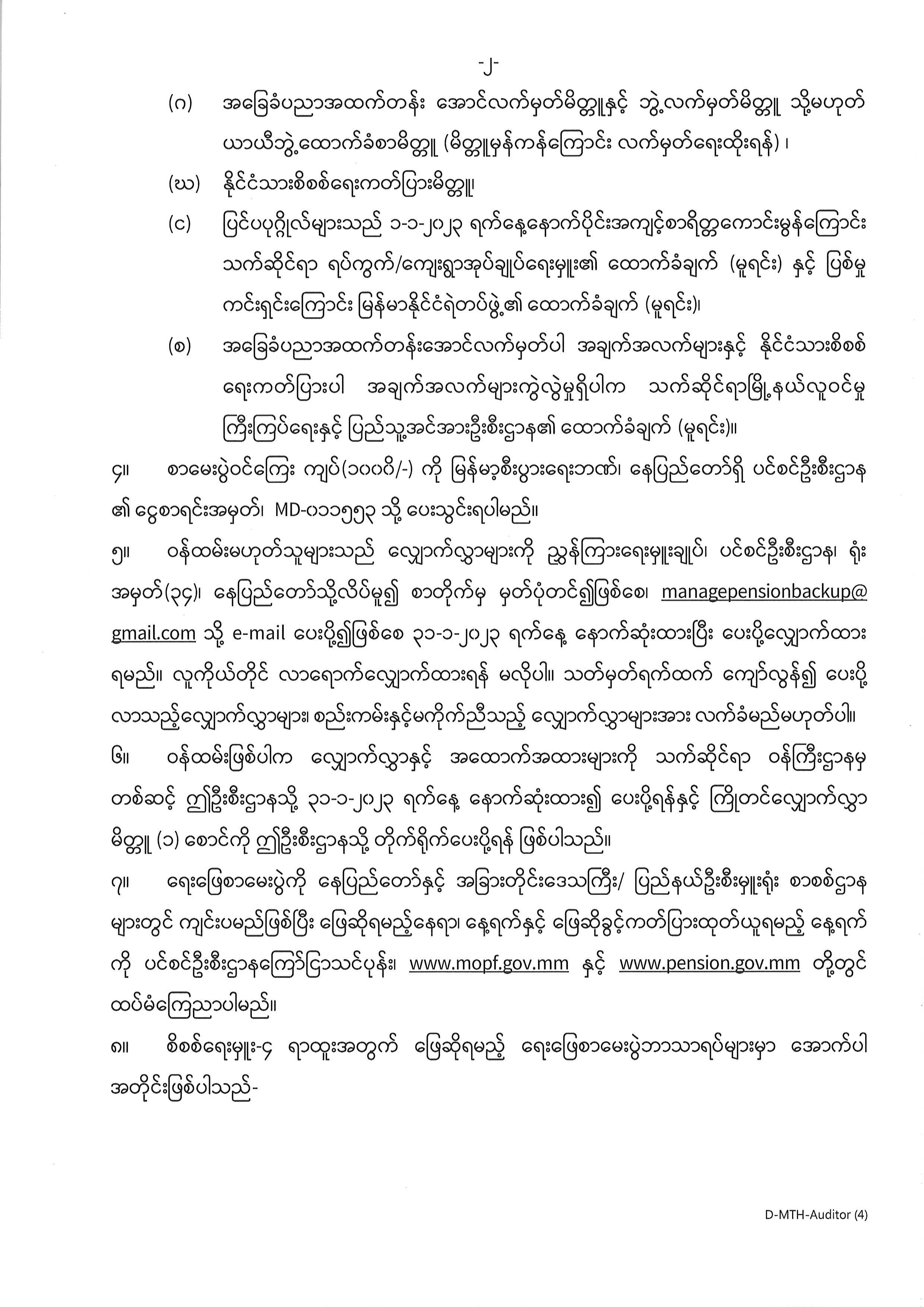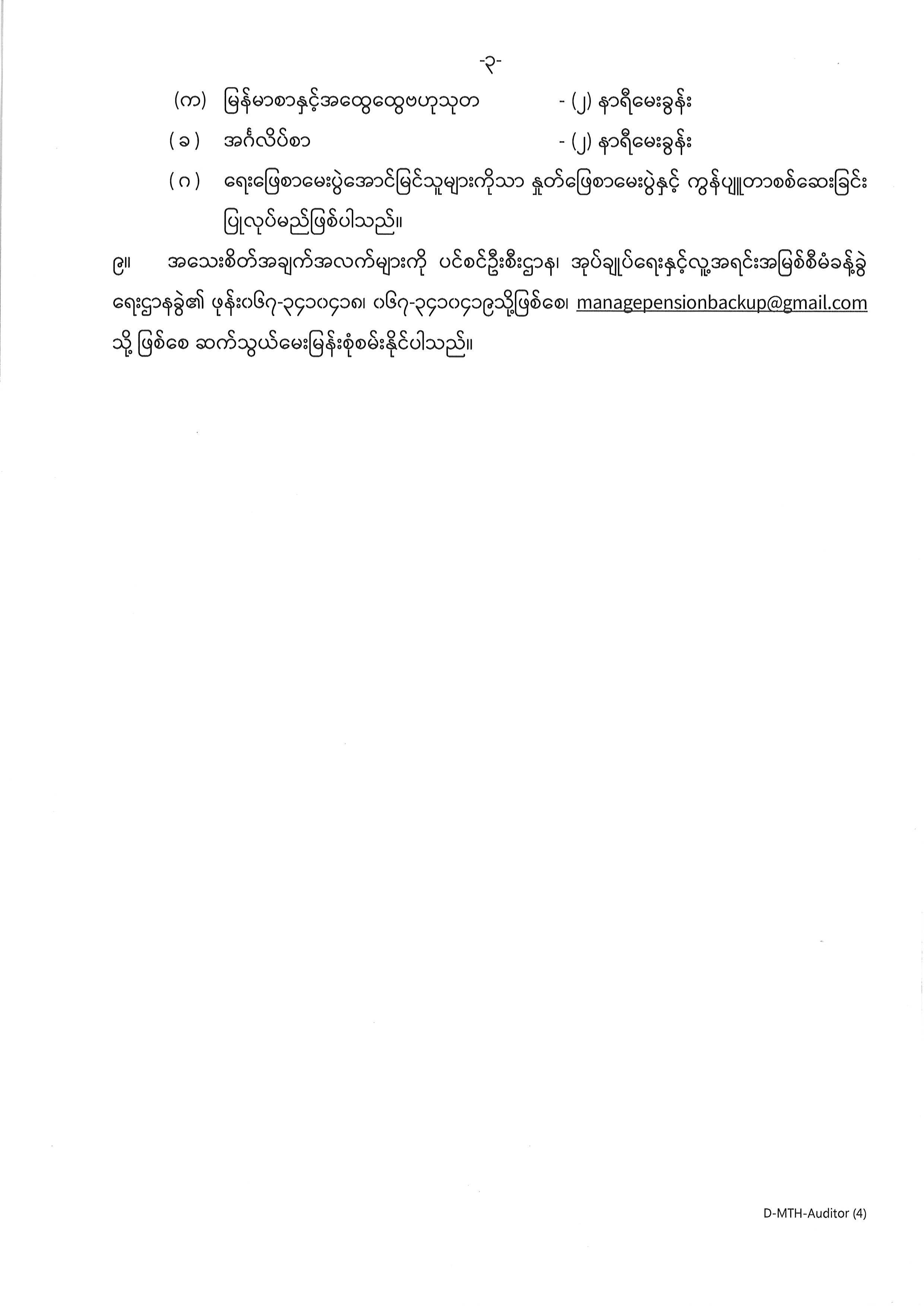 စိစစ်ရေးမှူး - ၄ ရာထူး (၄) နေရာအတွက် လျှောက်လွှာခေါ်ယူခြင်း