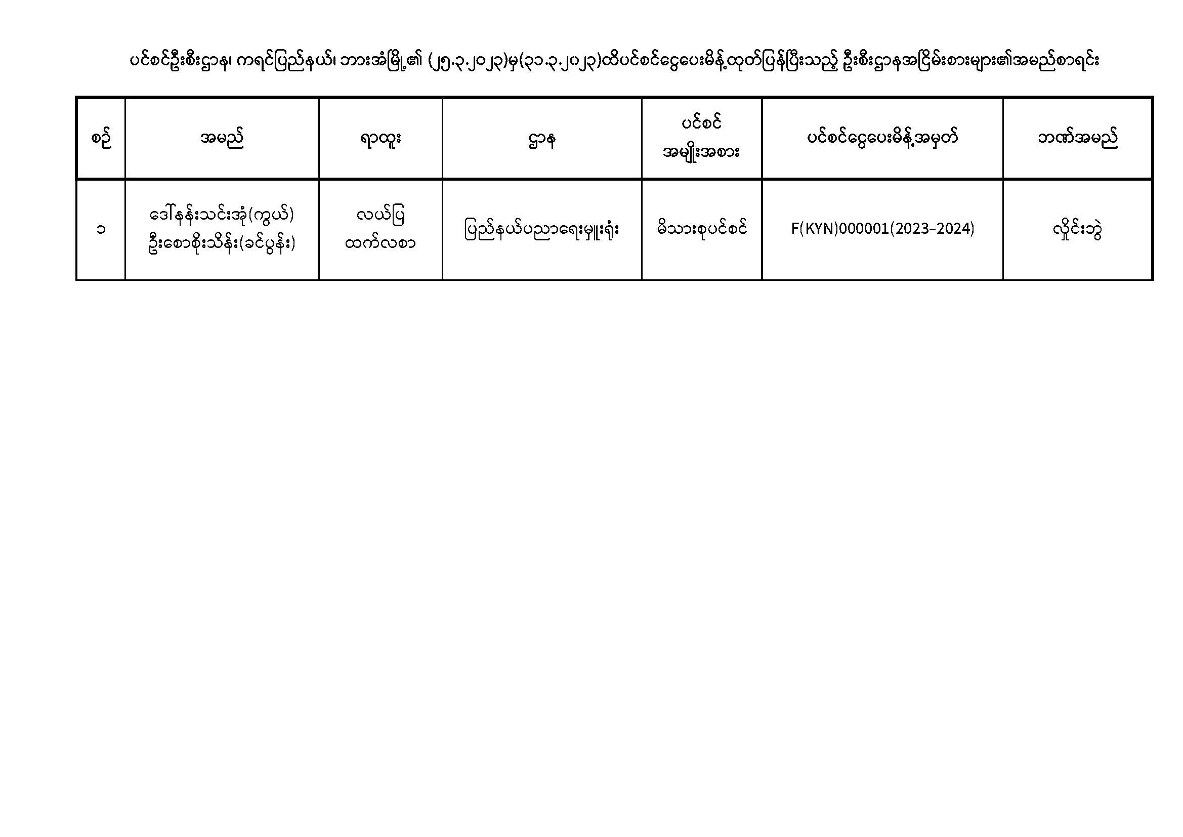ပင်စင်ဦးစီးဌာန၊ ကရင်ပြည်နယ်ဦးစီးမှူးရုံး၏ ငွေပေးမိန့်ထုတ်ပြန်မှုစာရင်း (၂၅-၃-၂၀၂၃ မှ ၃၁-၃-၂၀၂၃)