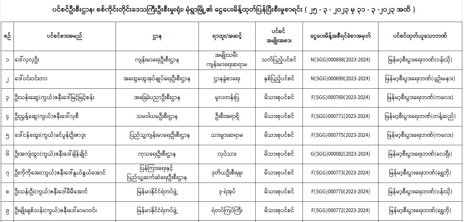 ပင်စင်ဦးစီးဌာန၊ စစ်ကိုင်းတိုင်းဒေသကြီးဦးစီးမှူးရုံး၏ ငွေပေးမိန့်ထုတ်ပြန်မှုစာရင်း (၂၅-၃-၂၀၂၃ မှ ၃၁-၃-၂၀၂၃)