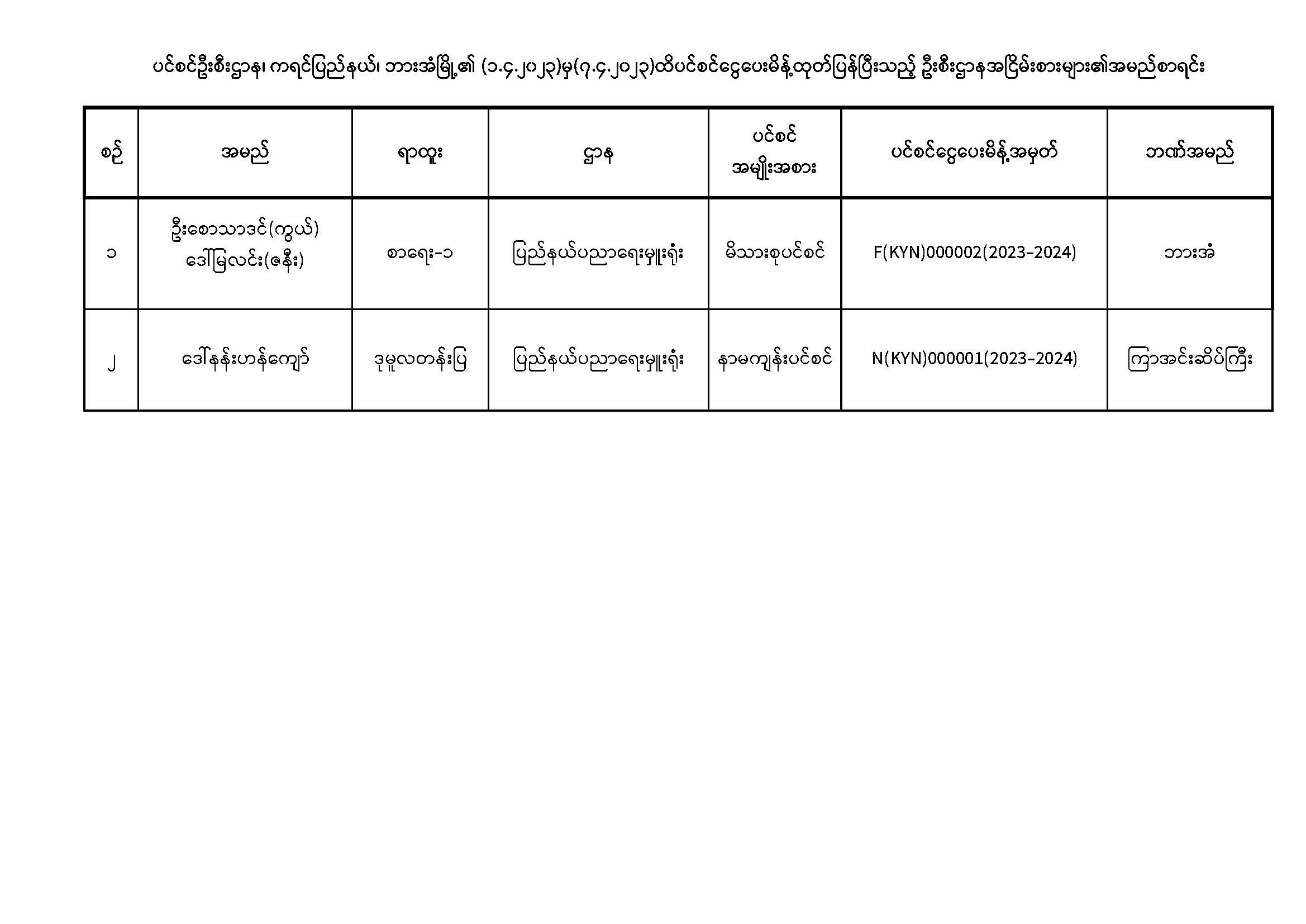 ပင်စင်ဦးစီးဌာန၊ ကရင်ပြည်နယ်ဦးစီးမှူးရုံး၏ ငွေပေးမိန့်ထုတ်ပြန်မှုစာရင်း (၁.၄.၂၀၂၃ မှ ၇.၄.၂၀၂၃) pdfinance_editor Fri, 04/07/2023 - 12:30